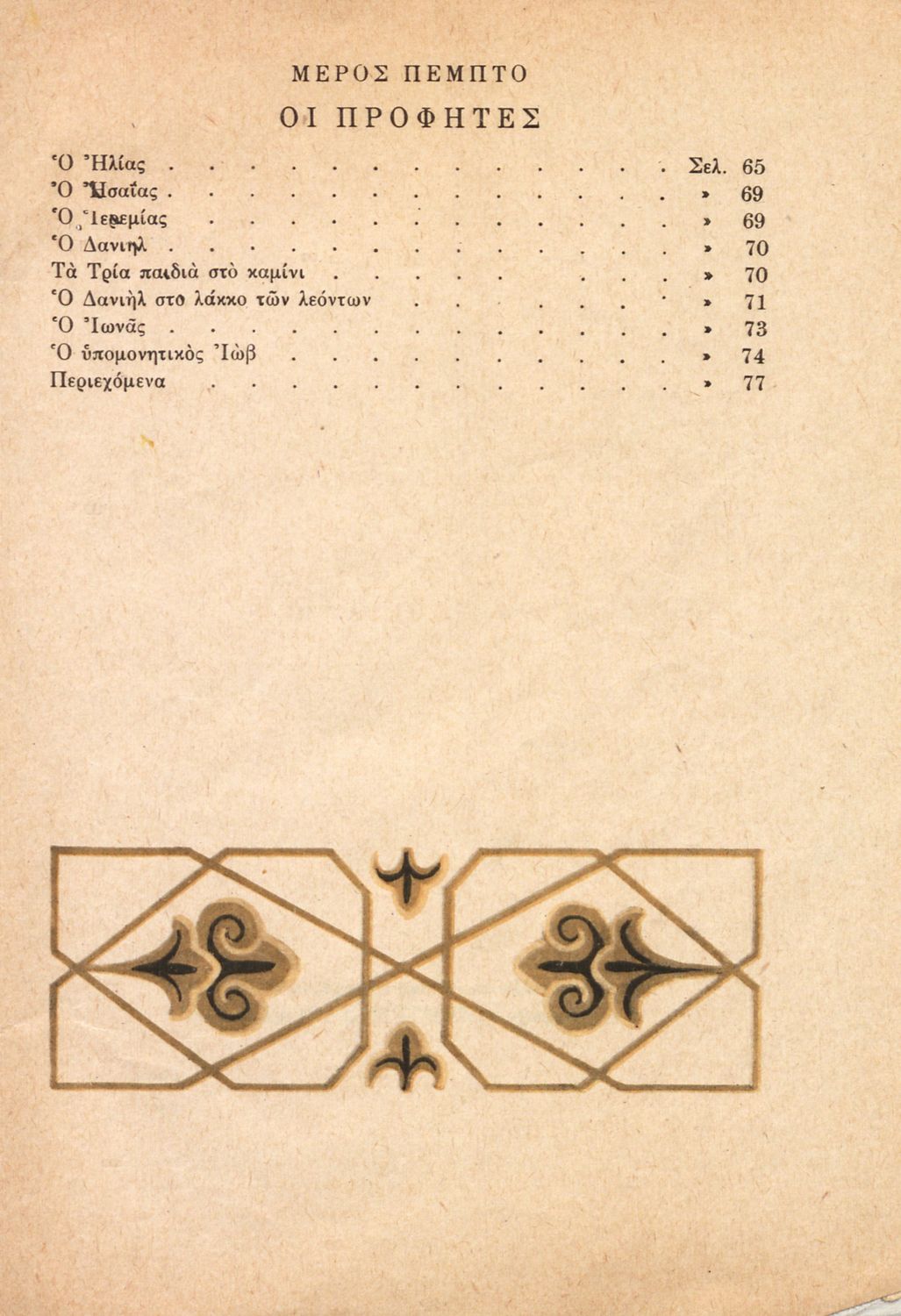 Μαθητικό βοήθημα Θρησκευτικών Γ΄ Δημοτικού που αποτελεί μια εξιστόρηση της Παλαιάς διαθήκης από τη δημιουργία του κόσμου ως τους Προφήτες. Περιέχει και προσευχές.