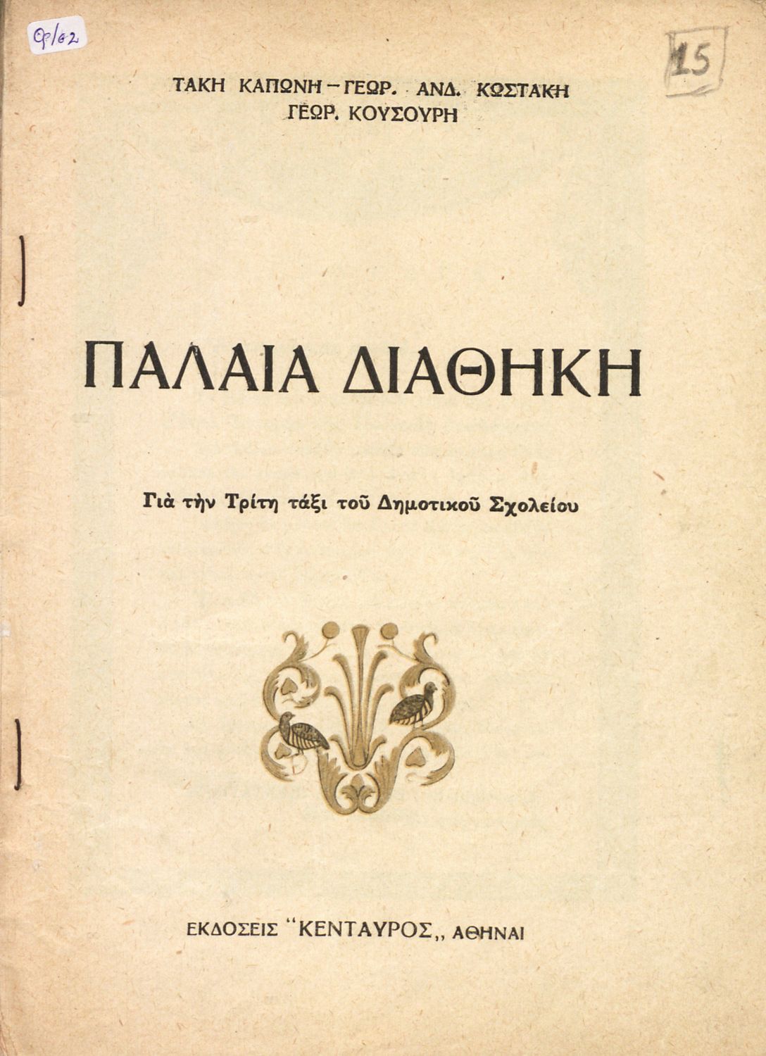 Εντοπισμός πρωτοτύπου: Εθνικό Κέντρο Έρευνας και Διάσωσης Σχολικού Υλικού Κωδικός βιβλιοθήκης: 15 |