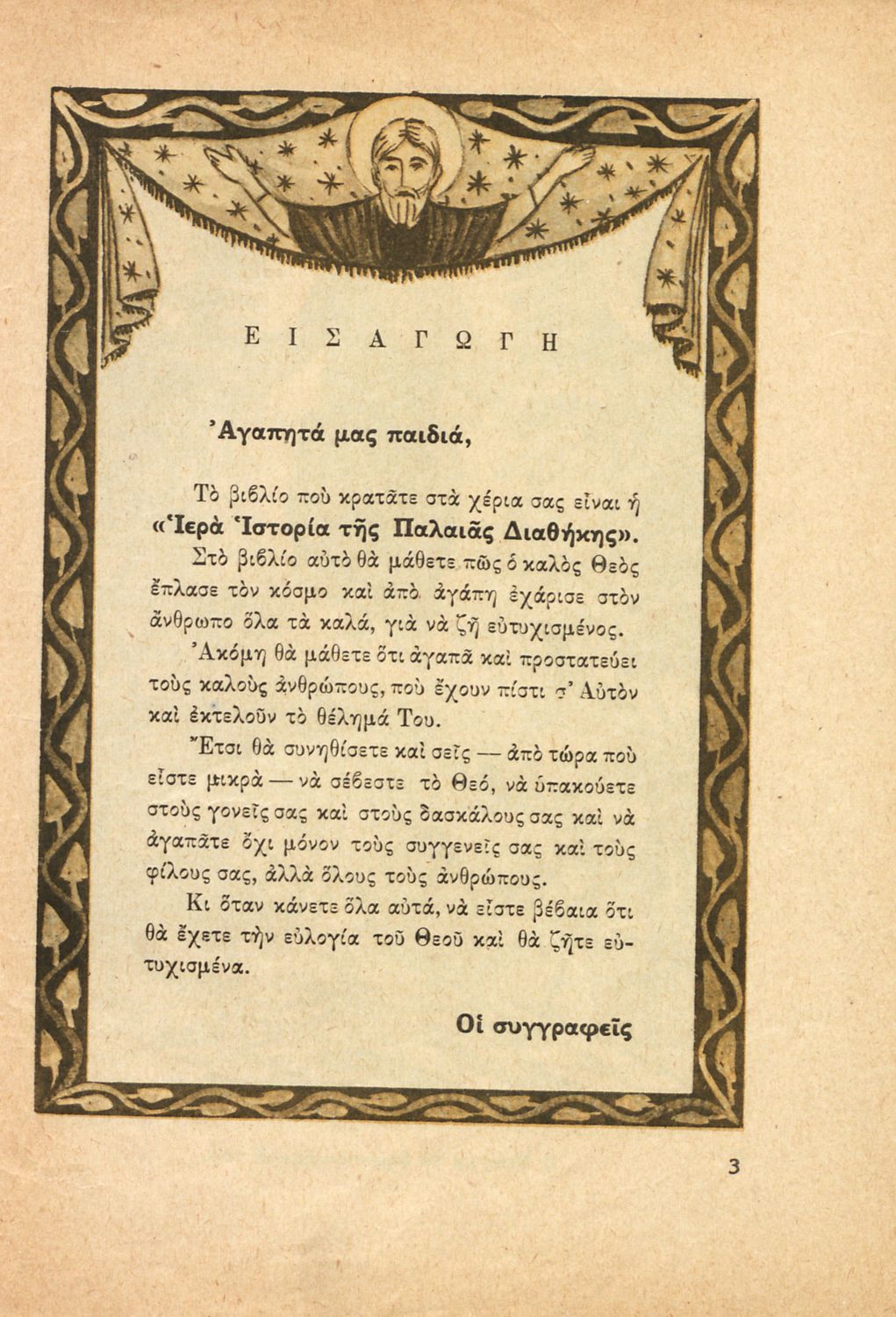 Μαθητικό βοήθημα Θρησκευτικών Γ΄ Δημοτικού που αποτελεί μια εξιστόρηση της Παλαιάς διαθήκης από τη δημιουργία του κόσμου ως τους Προφήτες.