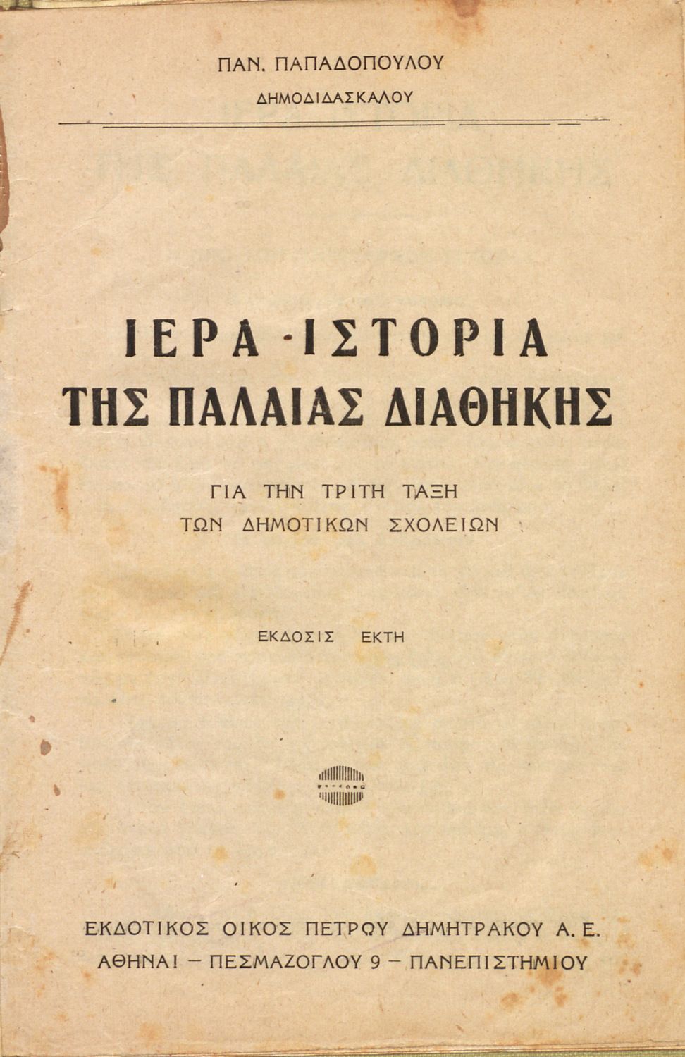 Τίτλος: Ιερά Ιστορία της Παλαιάς Διαθήκης για την τρίτη τάξη των Δημοτικών Σχολείων