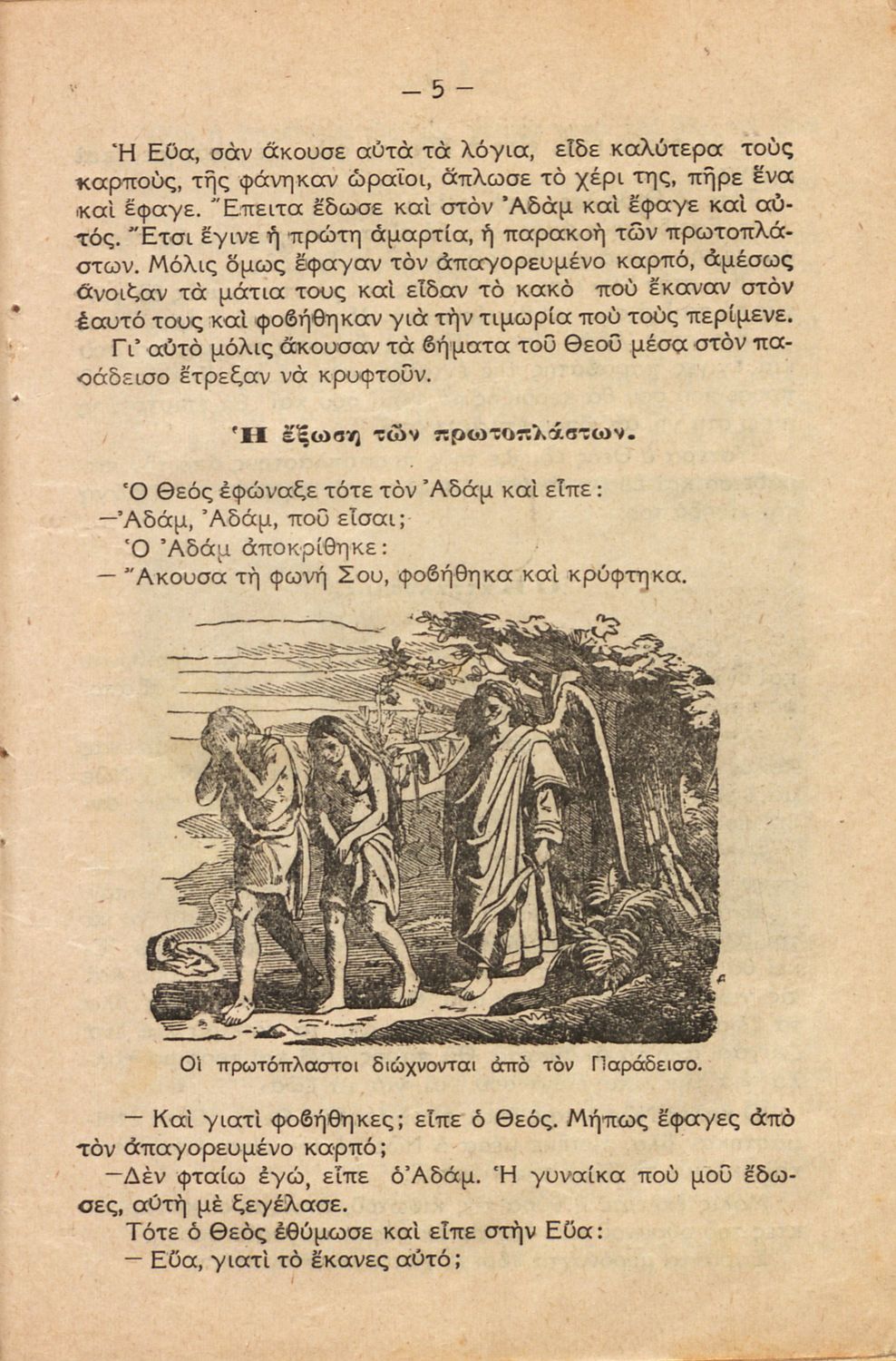 Σχολικό εγχειρίδιο Θρησκευτικών Δημοτικού που συνιστά μία εξιστόρηση της Παλαιάς Διαθήκης από τη δημιουργία του κόσμου ως την υποταγή των Εβραίων στους Ρωμαίους.