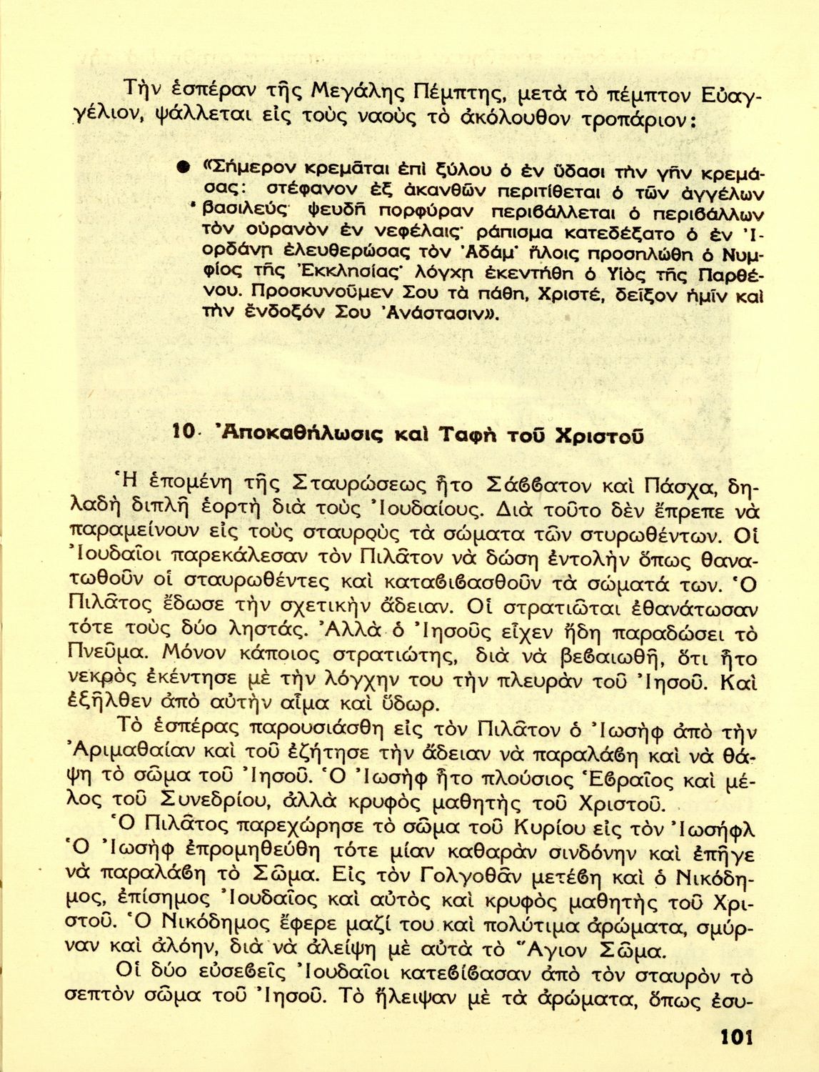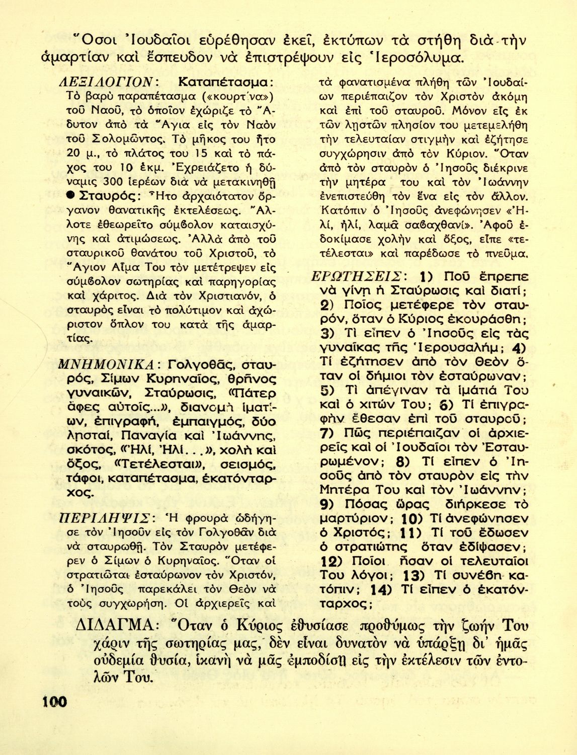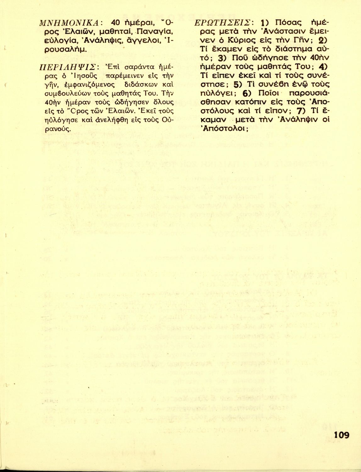 Βαθμίδα εκπαίδευσης: Πρωτοβάθμια Τάξη: Δ' Δημοτικού Μάθημα: Θρησκευτικά Γλώσσα: Καθαρεύουσα Παρουσίαση περιεχομένου: Μαθητικό βοήθημα Θρησκευτικών Δ΄ Δημοτικού που αποτελεί μια εξιστόρηση της Καινής Διαθήκης από τη γέννηση της Θεοτόκου μέχρι την ανάληψη του Χριστού. |