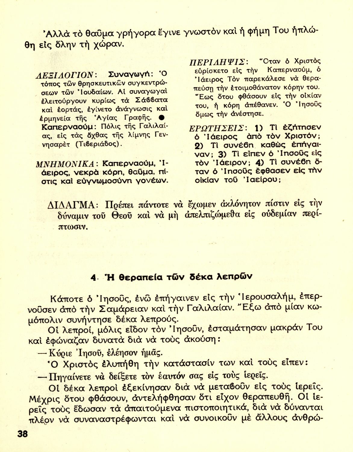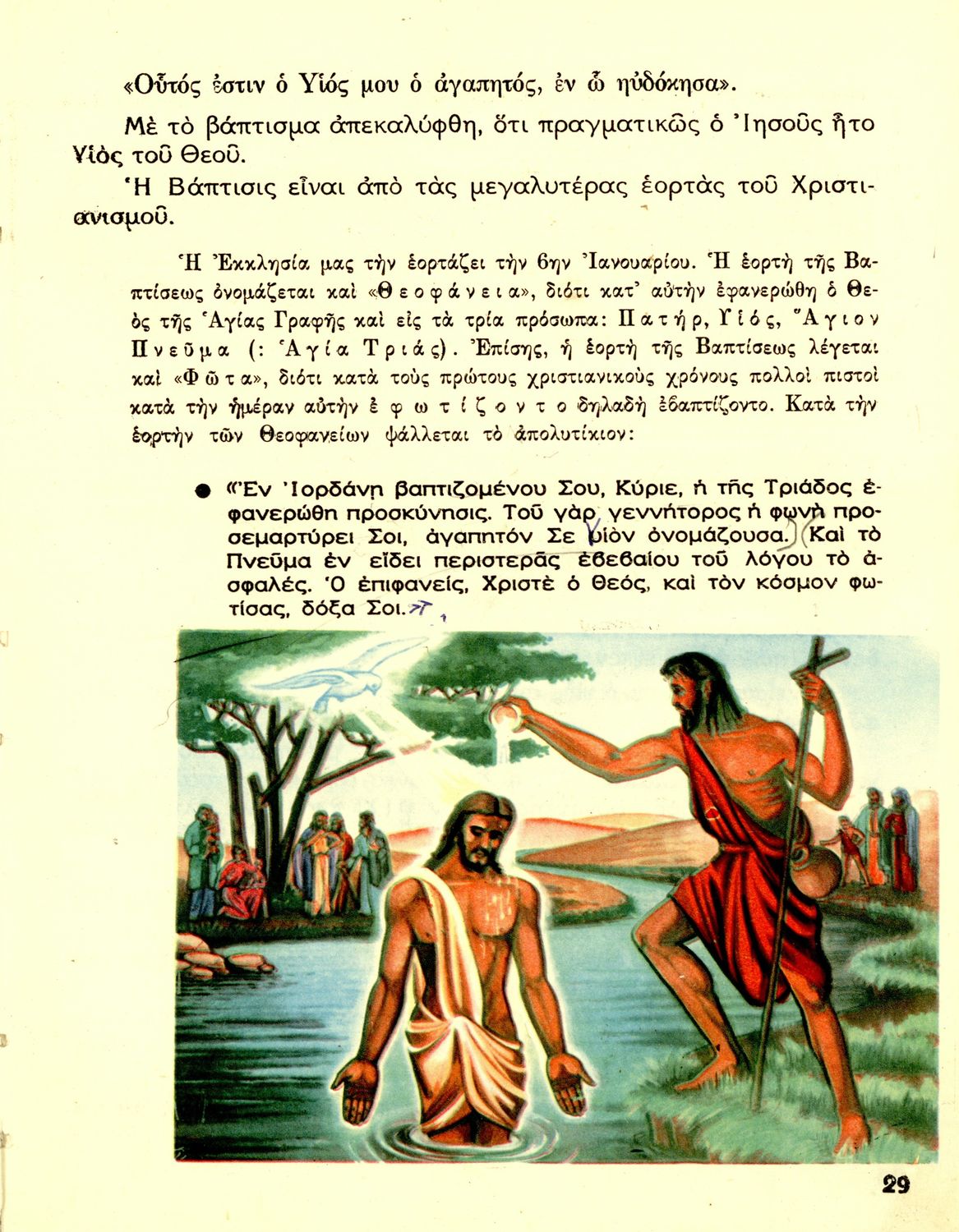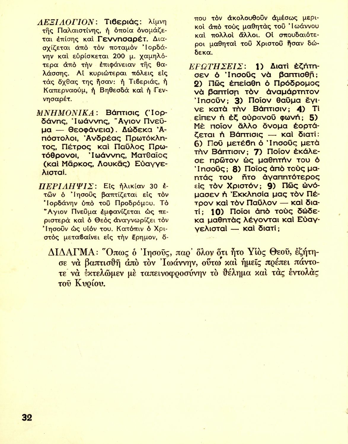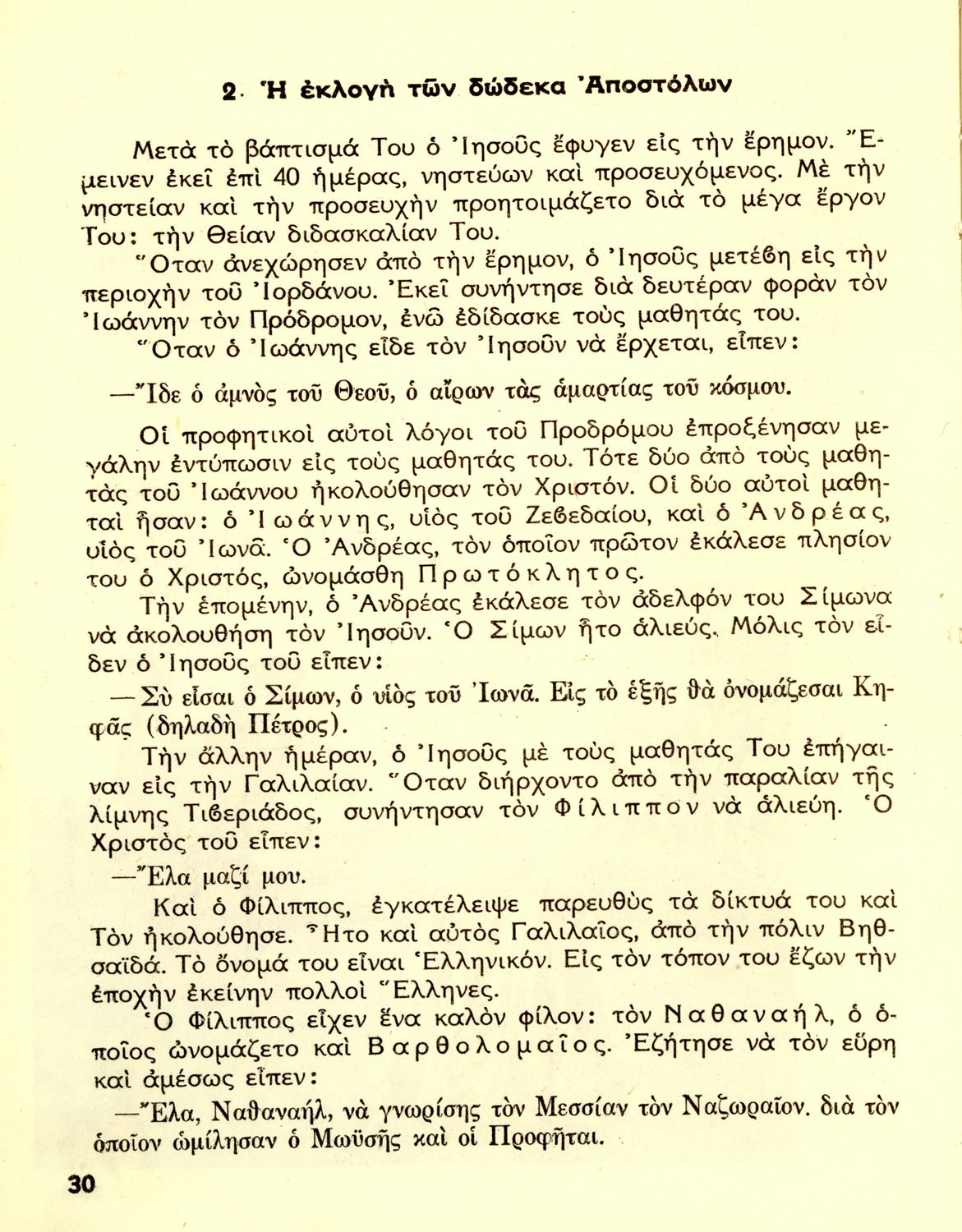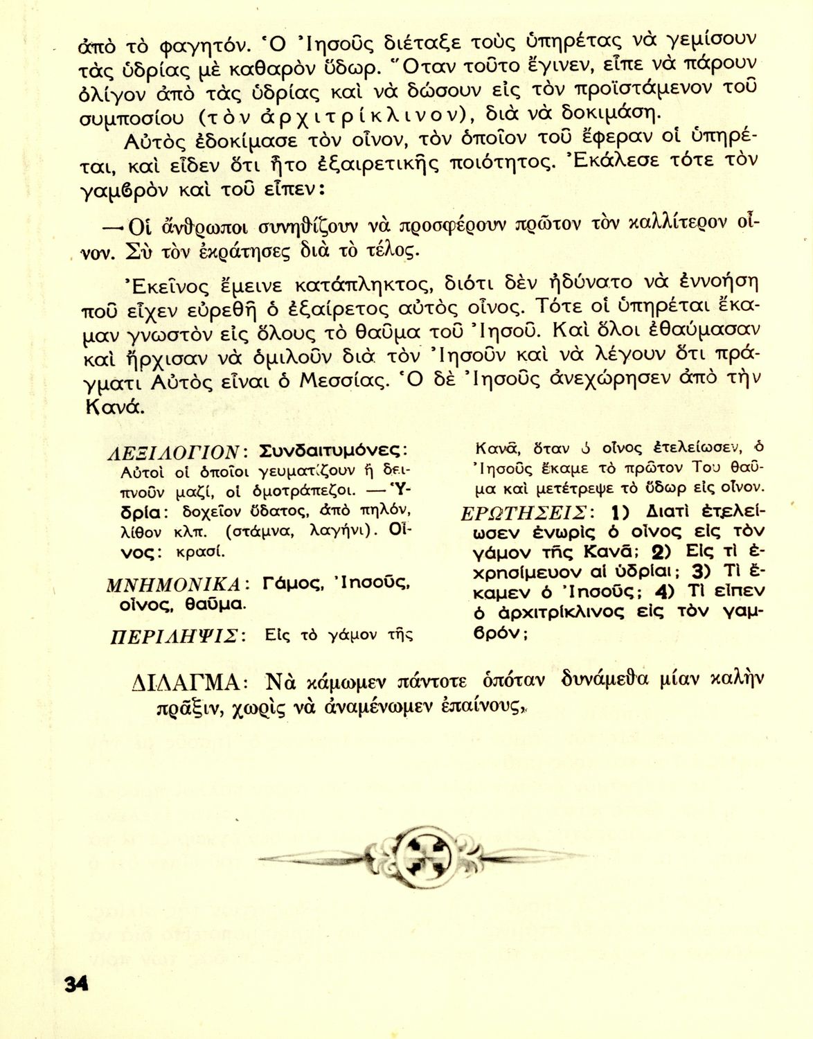 Βαθμίδα εκπαίδευσης: Πρωτοβάθμια Τάξη: Δ' Δημοτικού Μάθημα: Θρησκευτικά Γλώσσα: Καθαρεύουσα Παρουσίαση περιεχομένου: Μαθητικό βοήθημα Θρησκευτικών Δ΄ Δημοτικού που αποτελεί μια εξιστόρηση της Καινής Διαθήκης από τη γέννηση της Θεοτόκου μέχρι την ανάληψη του Χριστού. |