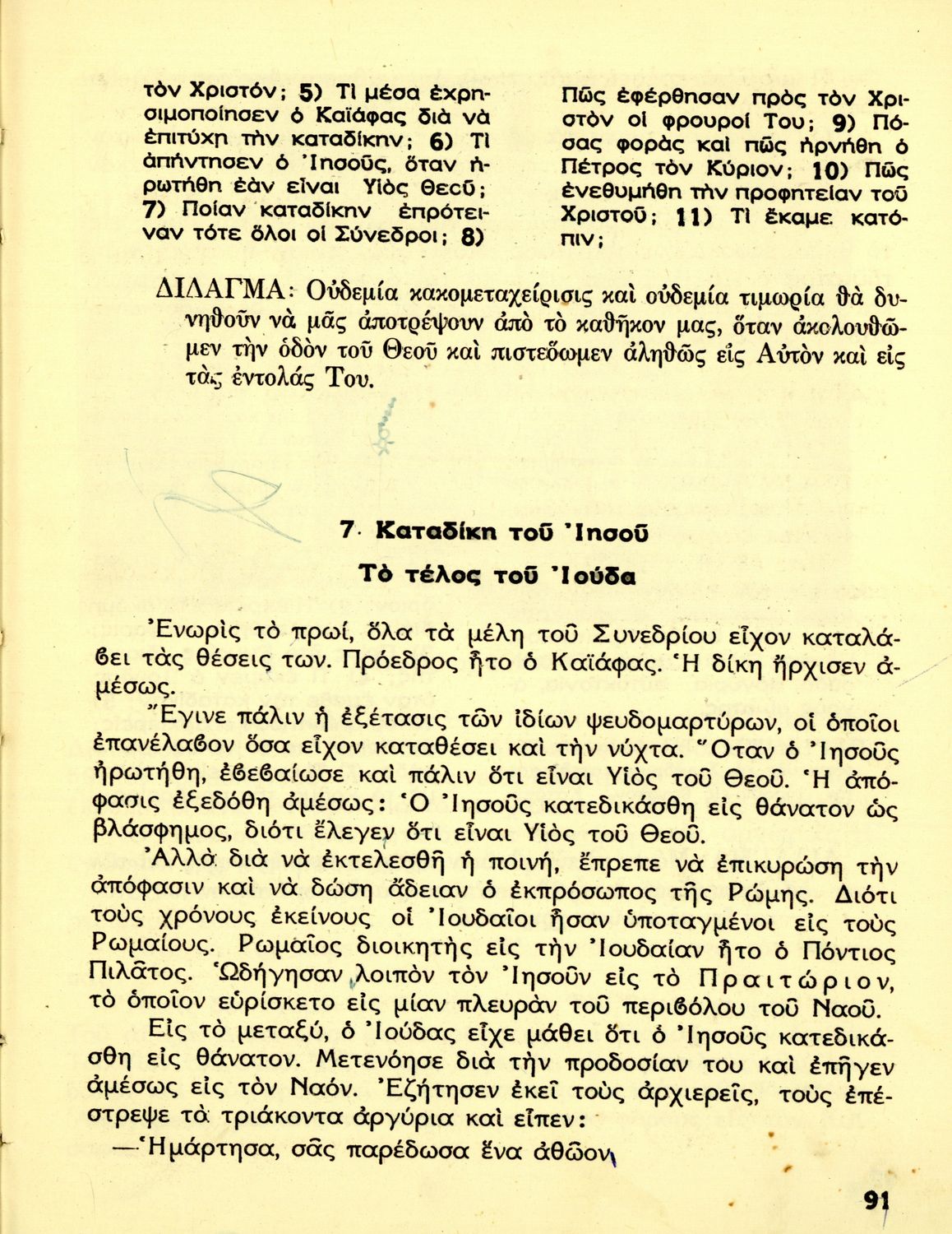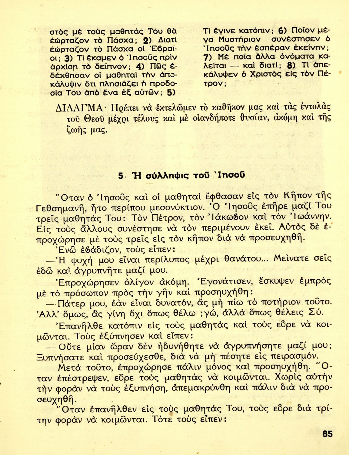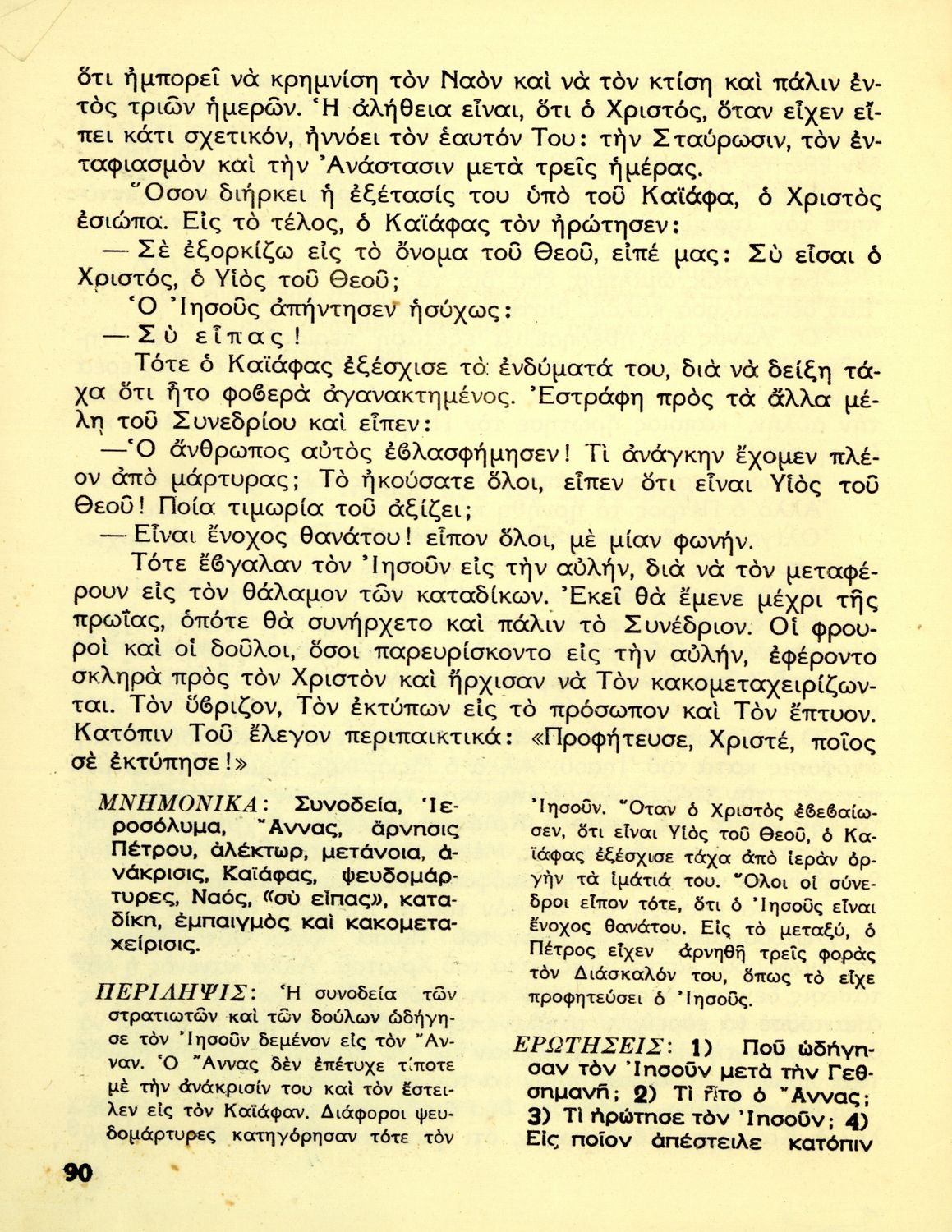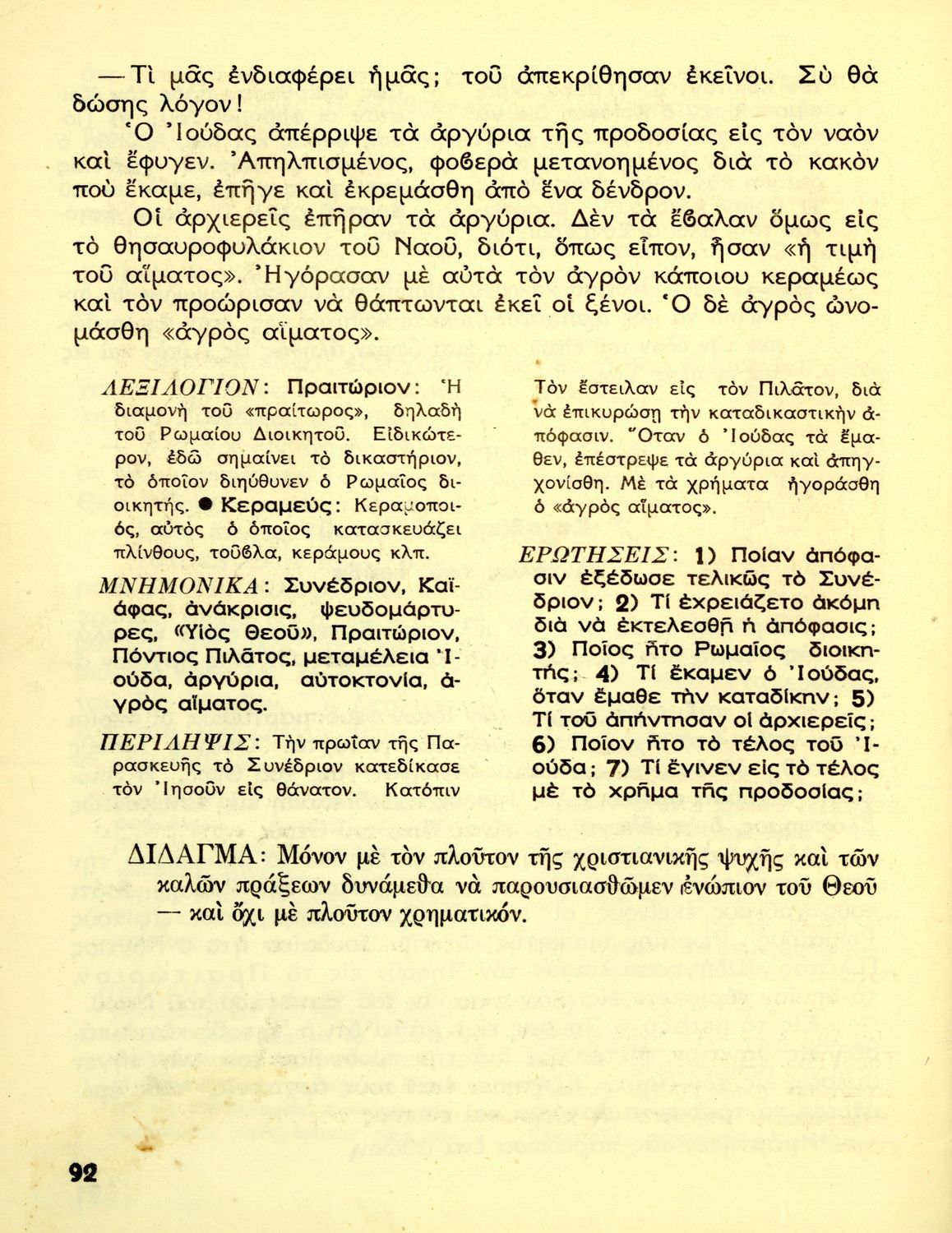 Βαθμίδα εκπαίδευσης: Πρωτοβάθμια Τάξη: Δ' Δημοτικού Μάθημα: Θρησκευτικά Γλώσσα: Καθαρεύουσα Παρουσίαση περιεχομένου: Μαθητικό βοήθημα Θρησκευτικών Δ΄ Δημοτικού που αποτελεί μια εξιστόρηση της Καινής Διαθήκης από τη γέννηση της Θεοτόκου μέχρι την ανάληψη του Χριστού. |