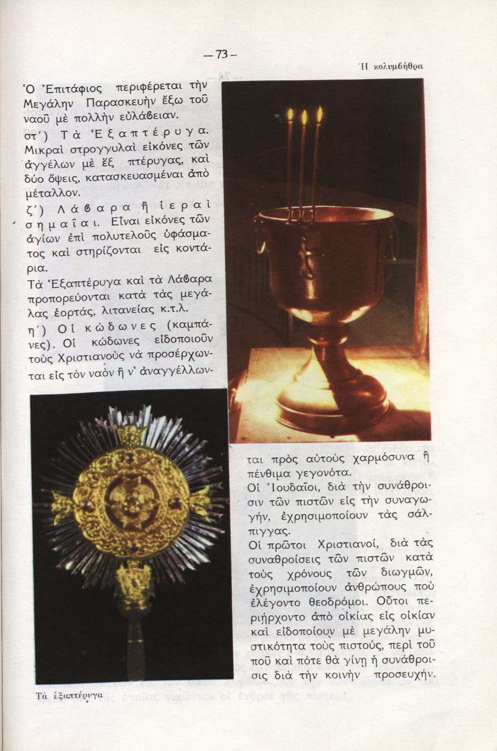 Σχολικό εγχειρίδιο Θρησκευτικών για τη ΣΤ΄ Δημοτικού. Το βιβλίο εγκρίθηκε από το Υπουργείο Παιδείας για μία τριετία. Διευθυντής Διδακτικών βιβλίων ήταν ο Χ. Μούστρης. Στο βιβλίο υπάρχουν και στοιχεία ...