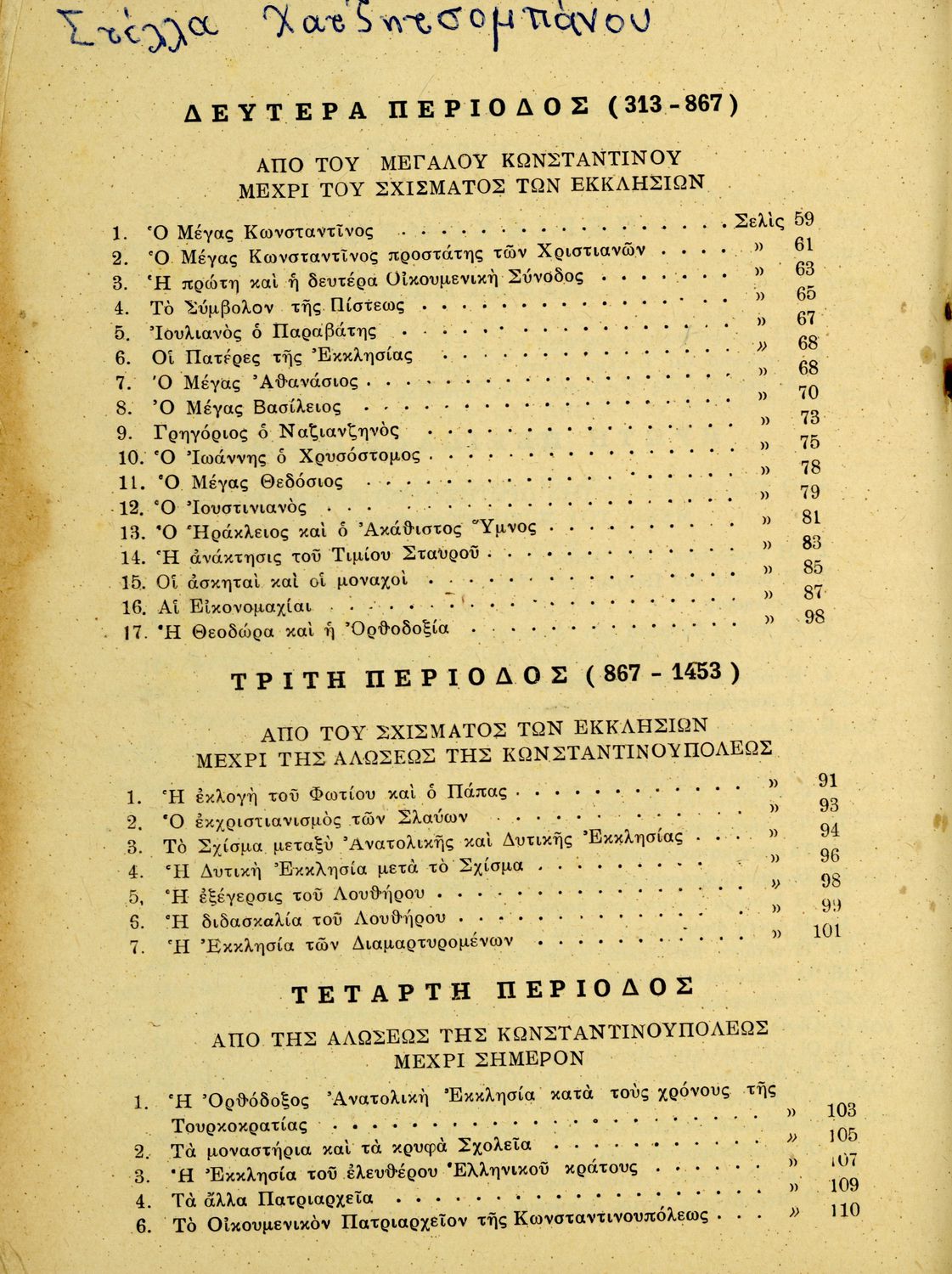 Βαθμίδα εκπαίδευσης: Πρωτοβάθμια Τάξη: Ε' Δημοτικού Μάθημα: Θρησκευτικά Γλώσσα: Απλή καθαρεύουσα Παρουσίαση περιεχομένου: Μαθητικό βοήθημα Θρησκευτικών Ε΄ Δημοτικού που αποτελεί μια ιστορική επισκόπηση της Ορθόδοξης Εκκλησίας από την ιδρυσή της μέχρι την ίδρυση της Εκκλησίας της Ελλάδας. |