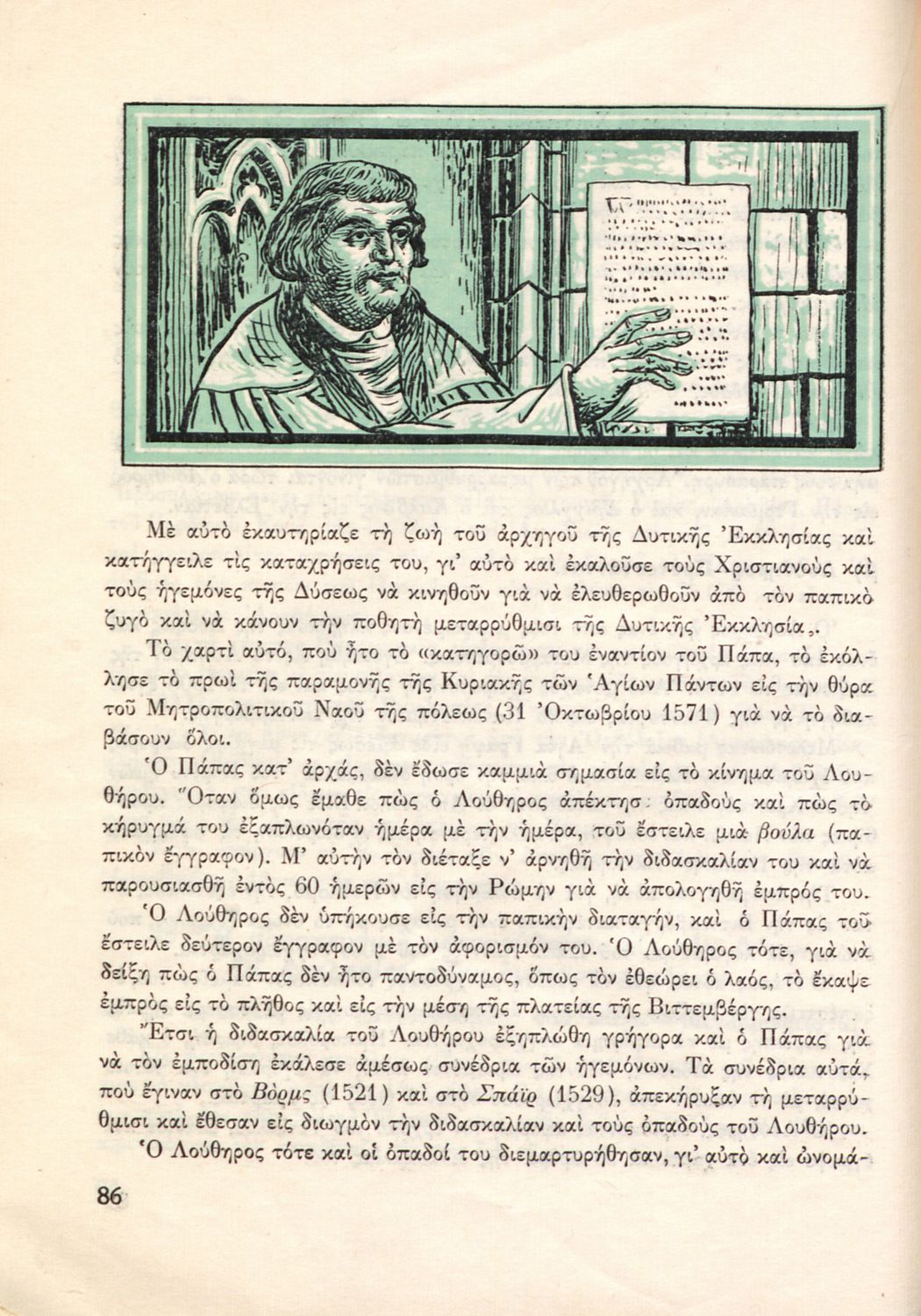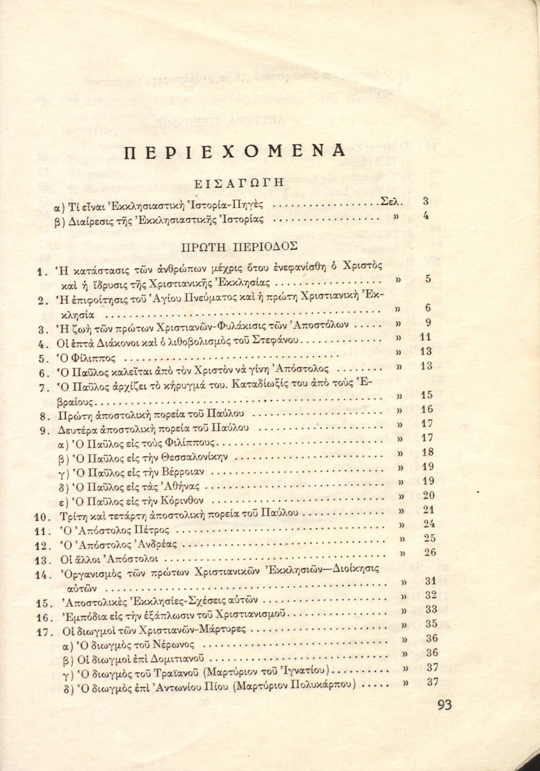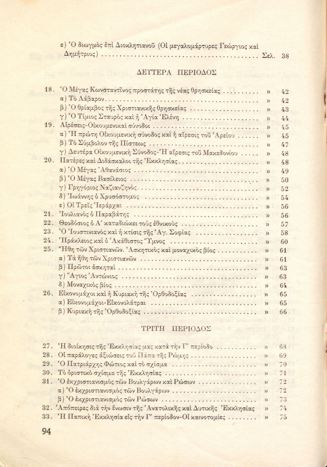 Κωδικός αναγνώρισης: 04-00026 Τίτλος: Εκκλησιαστική Ιστορία διά την Ε΄ τάξιν των Δημοτικών Σχολείων Συγγραφέας: Γ. Σακκάς, Θ. Κάρναβος Εικονογράφος: Αγ. Αστεριάδης Μέγεθος και υπόστρωμα: Μαθητικό βοήθημα, 20εκ., μαλακό εξώφυλλο, 95 σελίδες. Εξώφυλλο (έγχρωμο), σκίτσα (ασπρόμαυρα). |