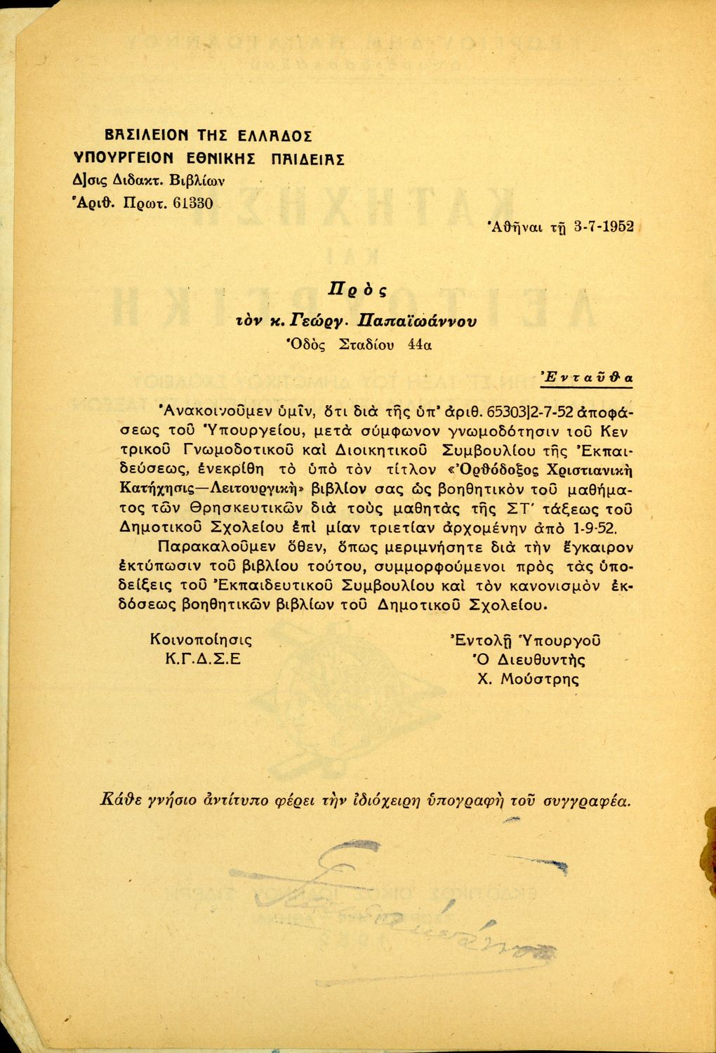 Υπουργική απόφαση / Σύμβαση: 65303/3-7-1952
