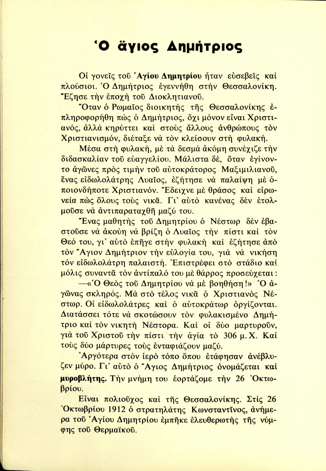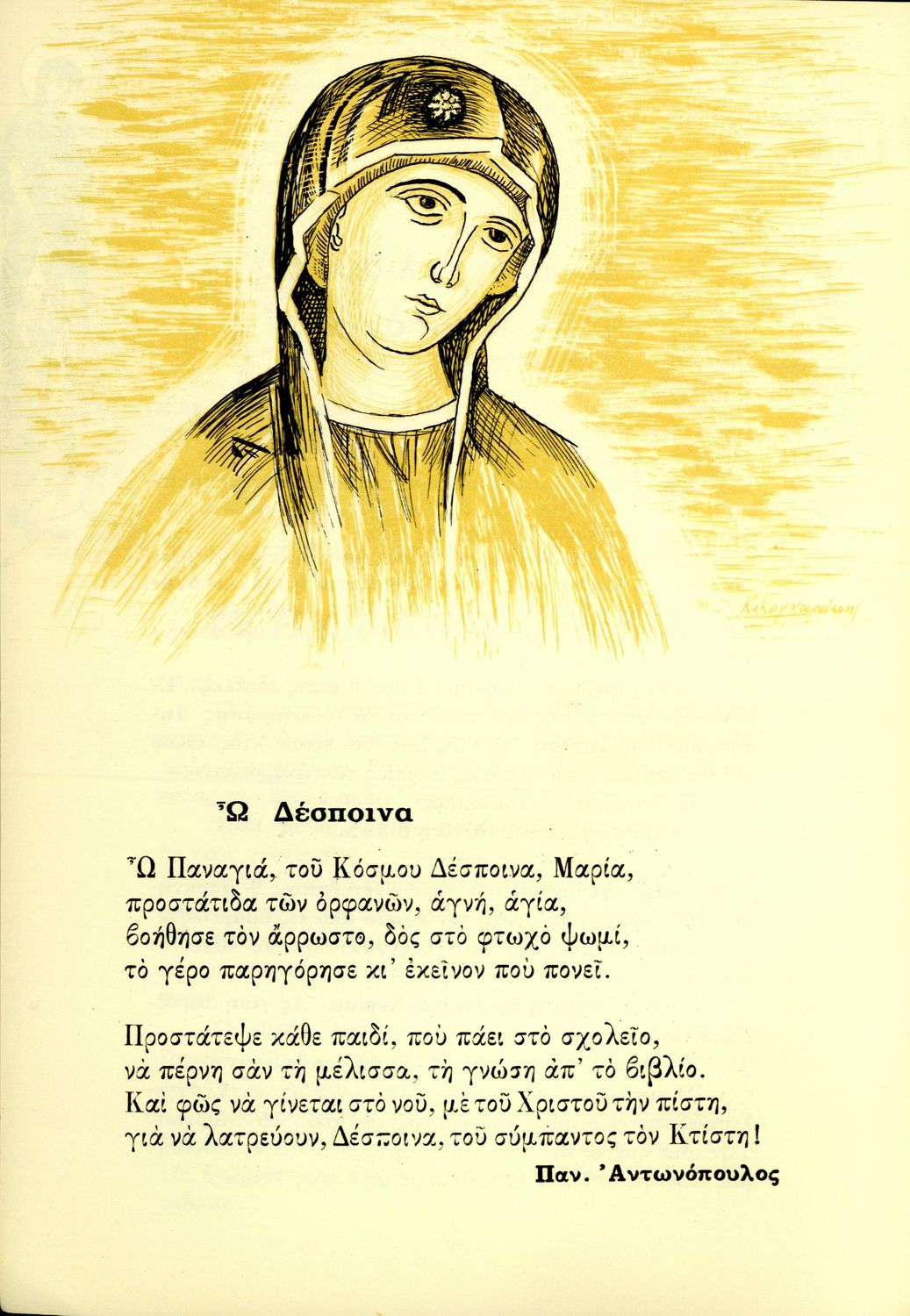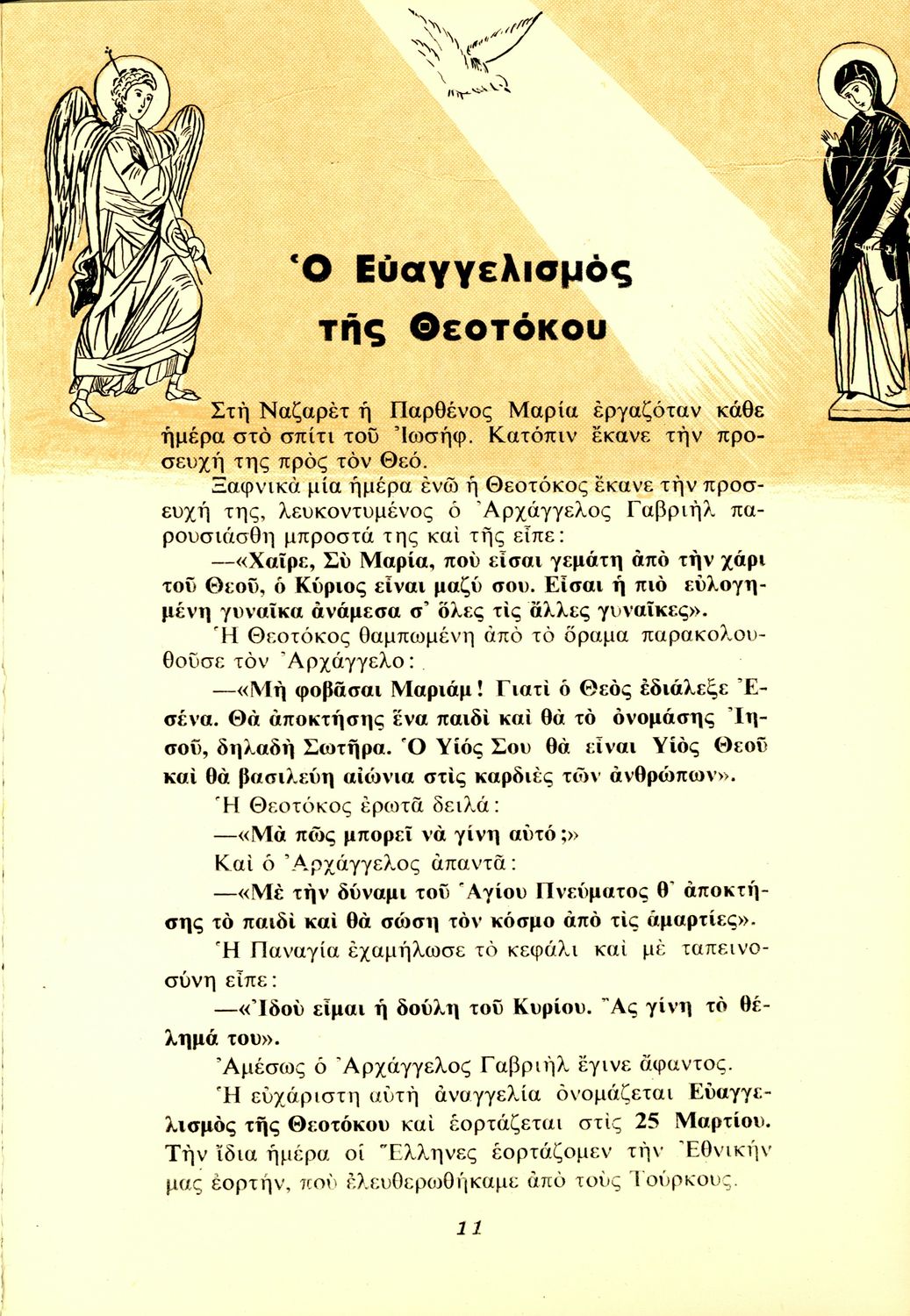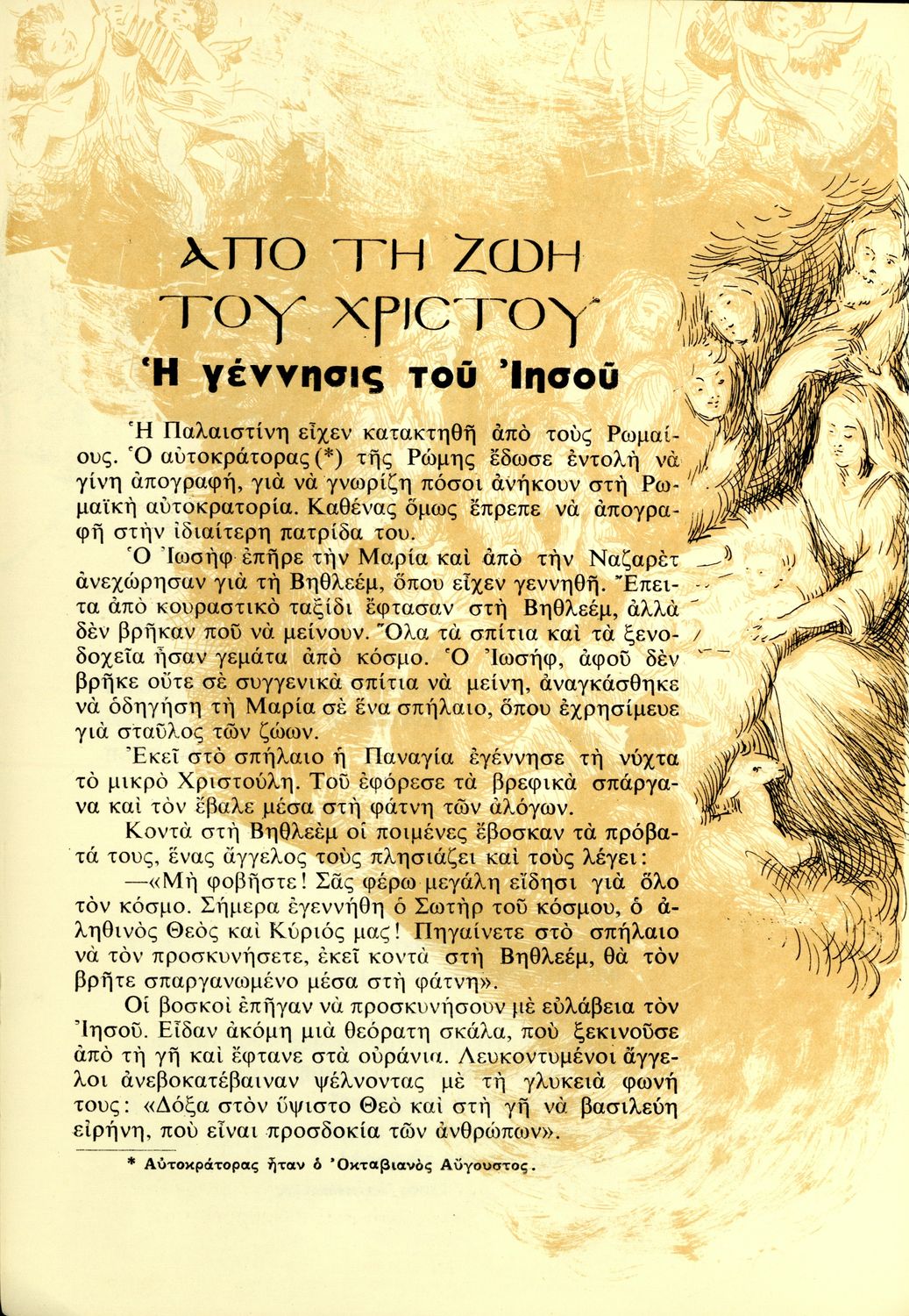 Μαθητικό βοήθημα Θρησκευτικών Α΄ και Β΄ Δημοτικού που περιλαμβάνει ποιήματα και πεζά χριστιανικού περιεχομένου. Φέρει την έγκριση της Ιεράς Συνόδου.