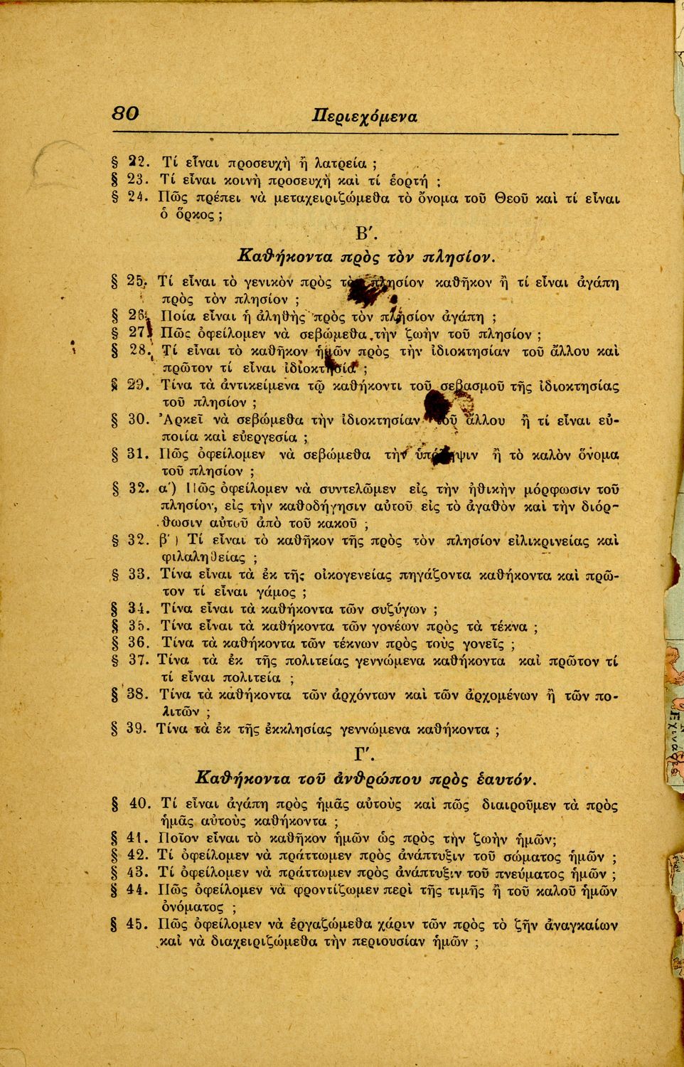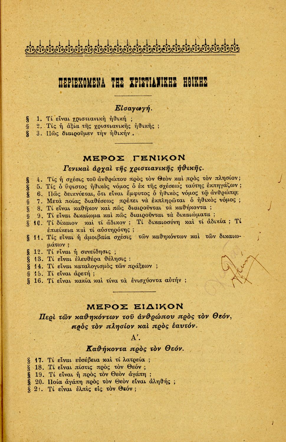 Σχολικό εγχειρίδιο Θρησκευτικών για τα Γυμνάσια και τα Διδασκαλεία που εστιάζει στη χριστιανική ηθική και αναλύει τα καθήκοντα του ανθρώπου προς τον Θεό, τους άλλους ανθρώπους και τον εαυτό του.