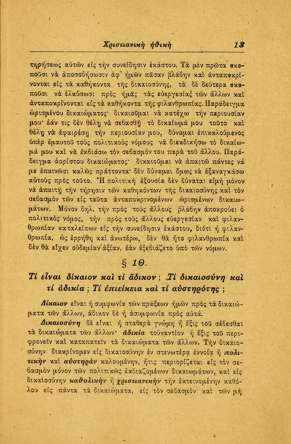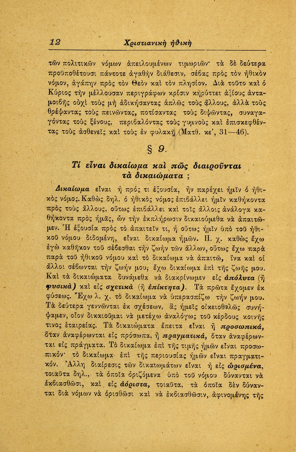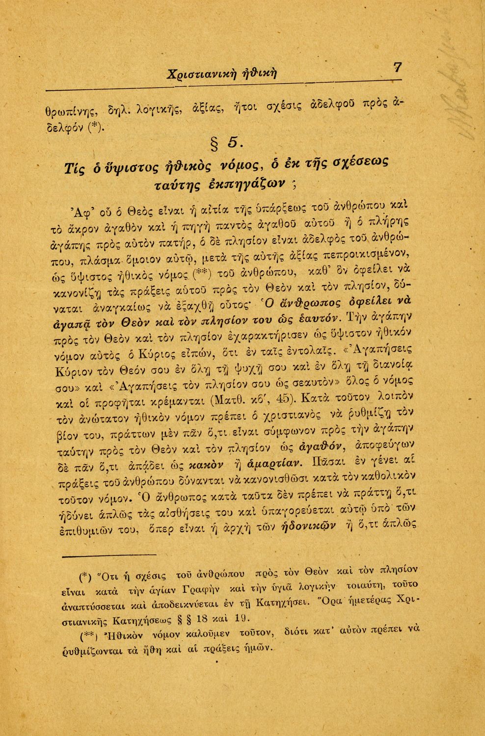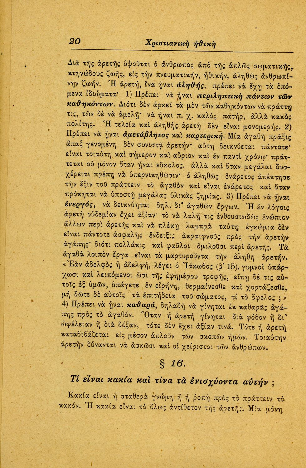 Βαθμίδα εκπαίδευσης: Δευτεροβάθμια Τάξη: Γυμνάσιο Μάθημα: Θρησκευτικά Γλώσσα: Καθαρεύουσα Παρουσίαση περιεχομένου: Σχολικό εγχειρίδιο Θρησκευτικών για τα Γυμνάσια που εστιάζει στη χριστιανική ηθική και αναλύει τα καθήκοντα του ανθρώπου προς τον Θεό, τους άλλους ανθρώπους και τον εαυτό του. |