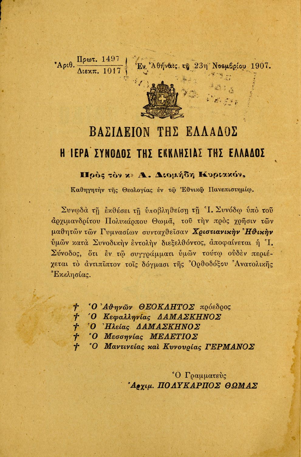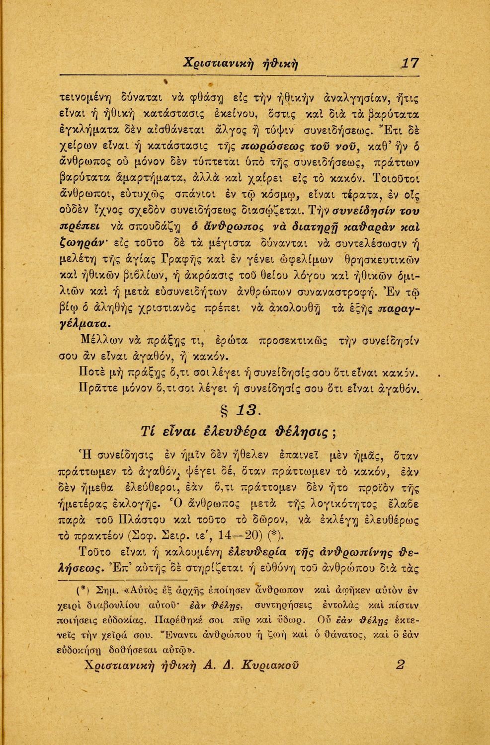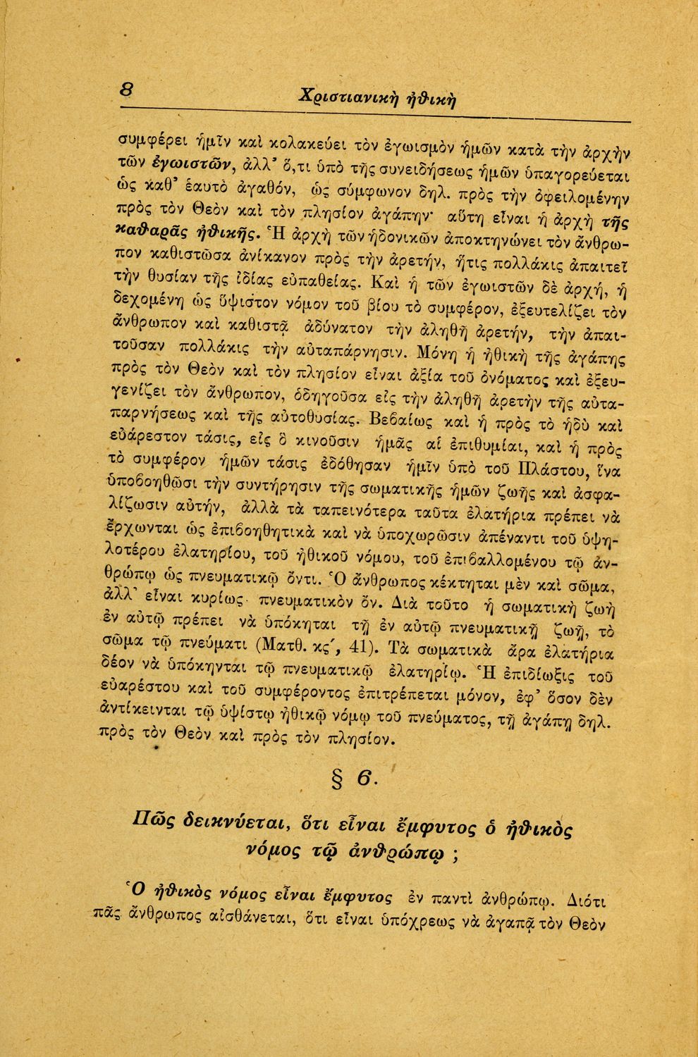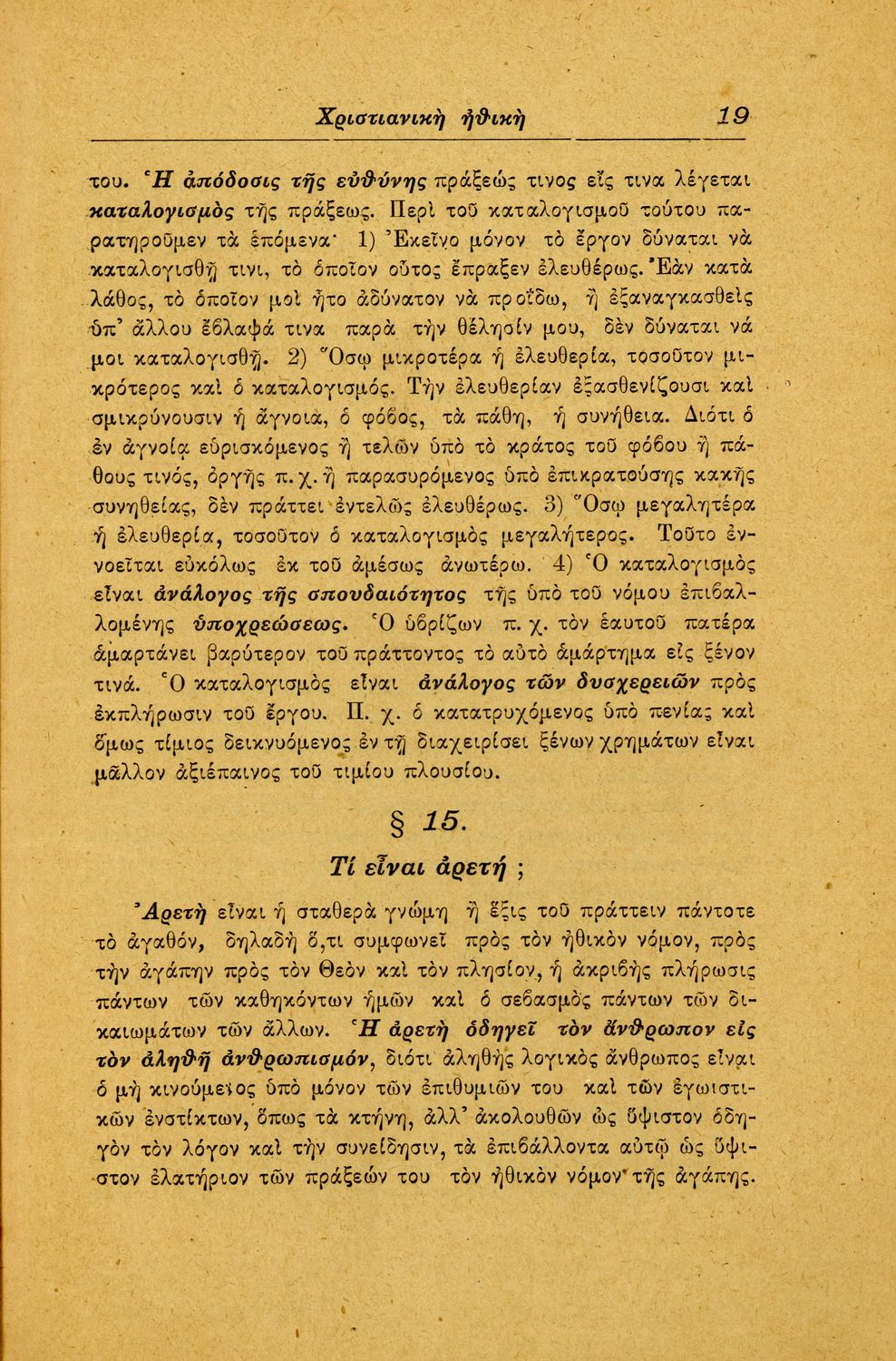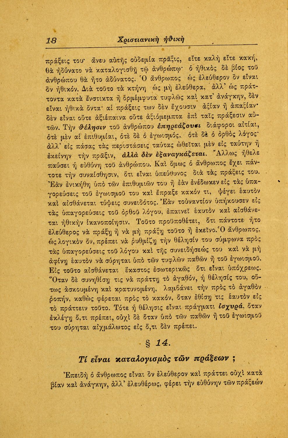 Βαθμίδα εκπαίδευσης: Δευτεροβάθμια Τάξη: Γυμνάσιο Μάθημα: Θρησκευτικά Γλώσσα: Καθαρεύουσα Παρουσίαση περιεχομένου: Σχολικό εγχειρίδιο Θρησκευτικών για τα Γυμνάσια που εστιάζει στη χριστιανική ηθική και αναλύει τα καθήκοντα του ανθρώπου προς τον Θεό, τους άλλους ανθρώπους και τον εαυτό του. |