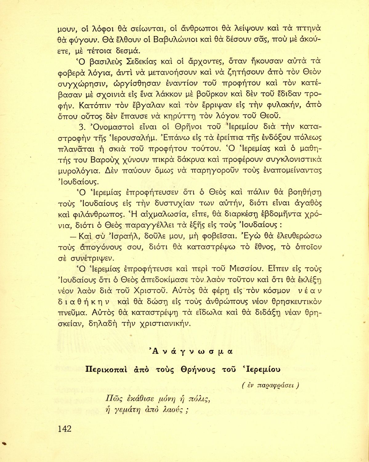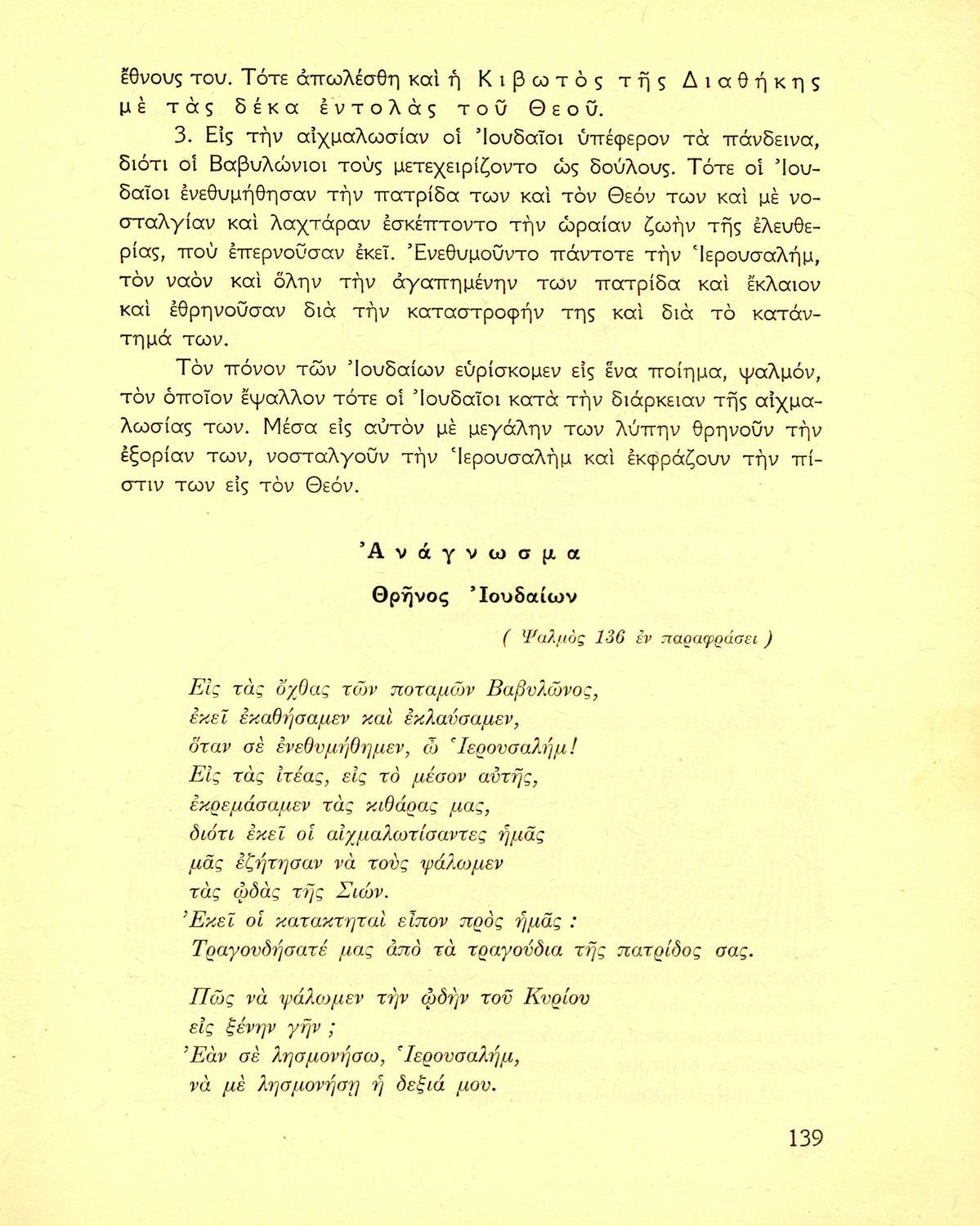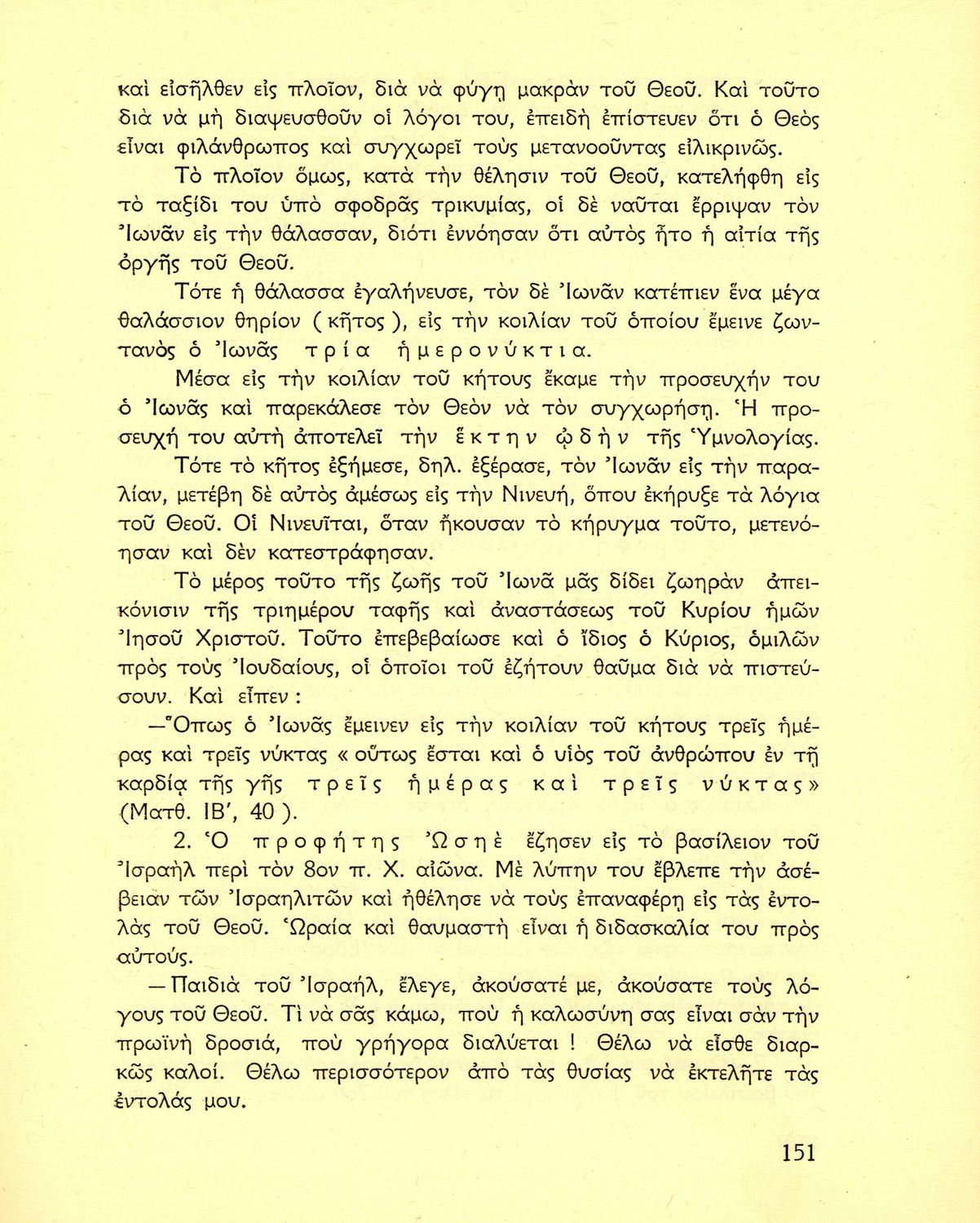 Σχολικό εγχειρίδιο Θρησκευτικών που συνιστά μία εξιστόρηση της Παλαιάς Διαθήκης από τη δημιουργία του κόσμου ως την υποταγή των Εβραίων στους Ρωμαίους. Περιέχει και στοιχεία γεωγραφίας της Παλαιστίνης.