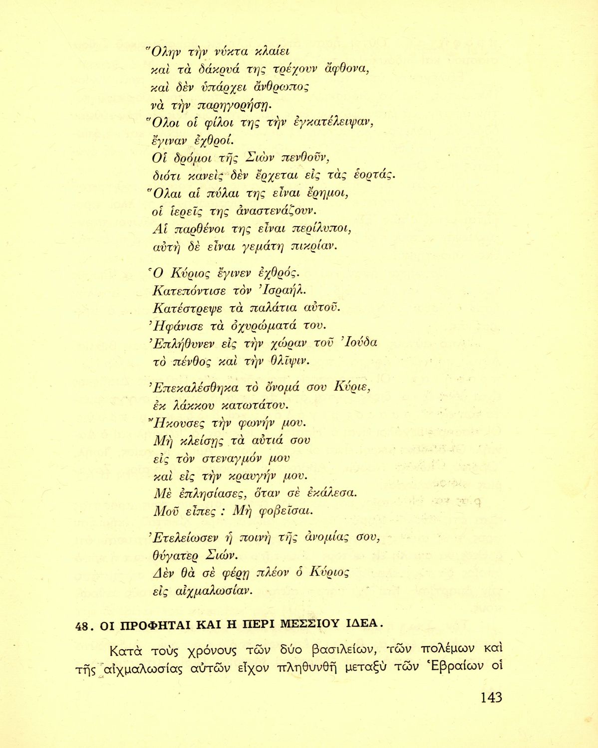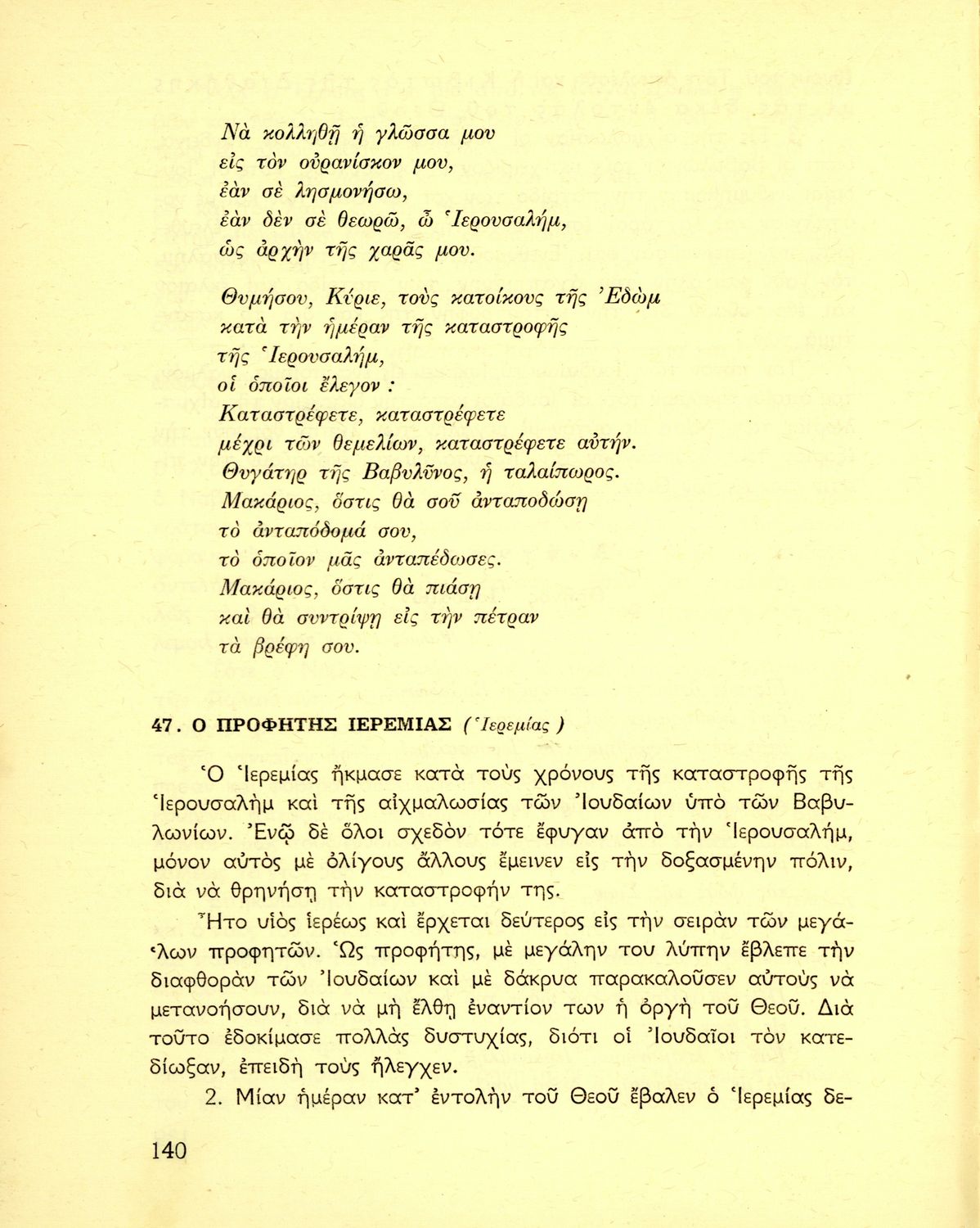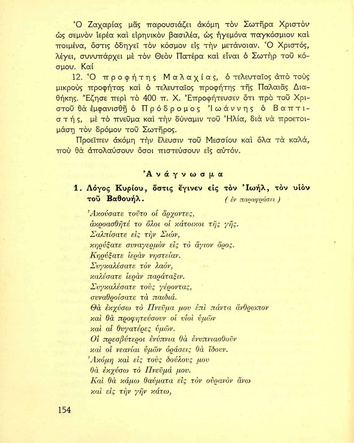 Σχολικό εγχειρίδιο Θρησκευτικών που συνιστά μία εξιστόρηση της Παλαιάς Διαθήκης από τη δημιουργία του κόσμου ως την υποταγή των Εβραίων στους Ρωμαίους. Περιέχει και στοιχεία γεωγραφίας της Παλαιστίνης.