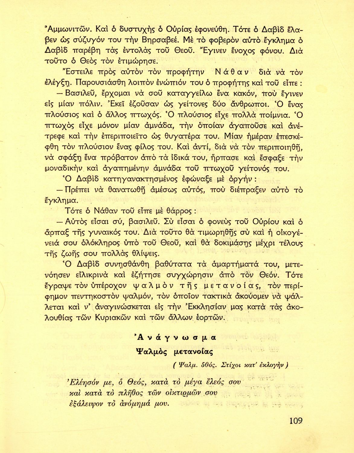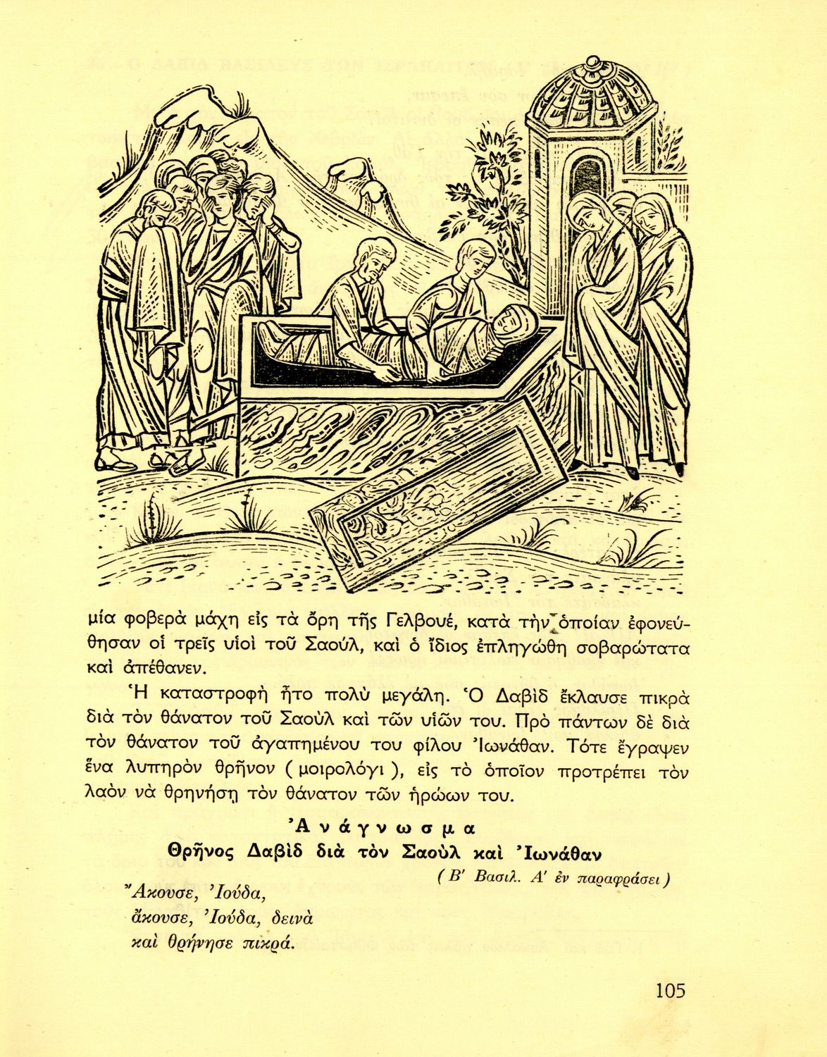 Σχολικό εγχειρίδιο Θρησκευτικών Δημοτικού που συνιστά μία εξιστόρηση της Παλαιάς Διαθήκης από τη δημιουργία του κόσμου ως τους Μακκαβαίους. Περιέχει και ποιήματα θρησκευτικού περιεχομένου.