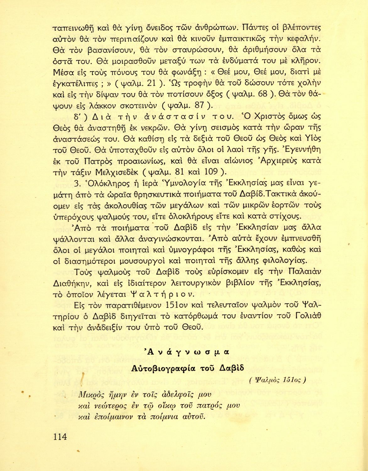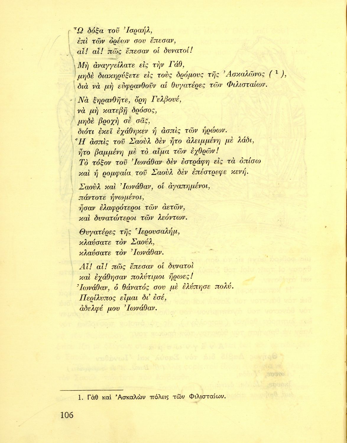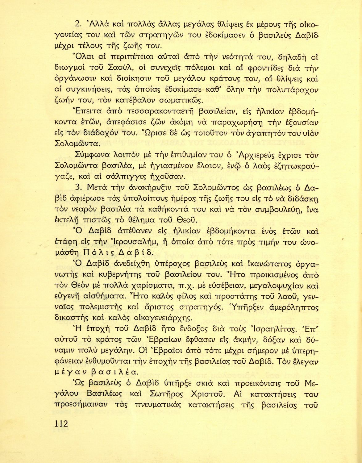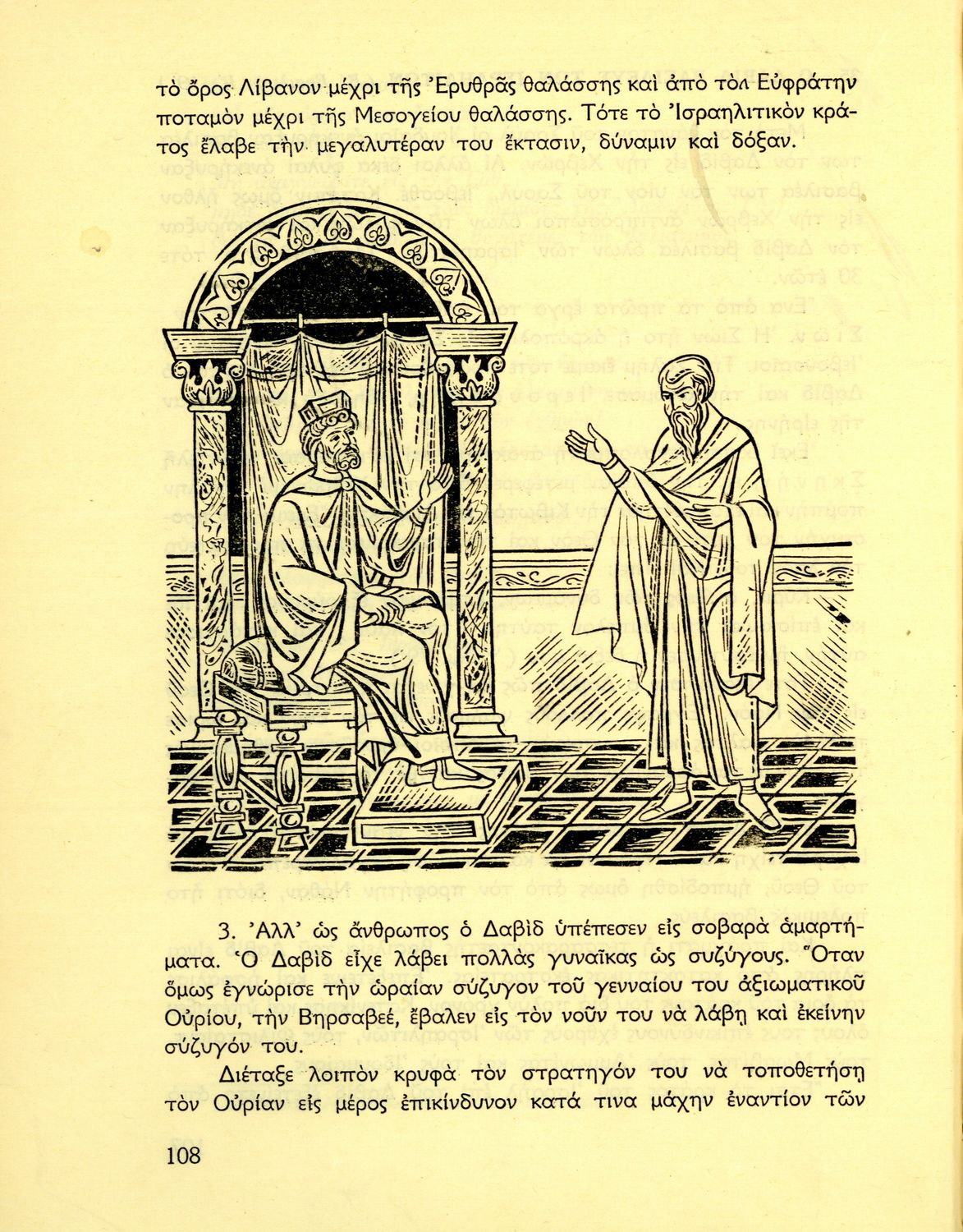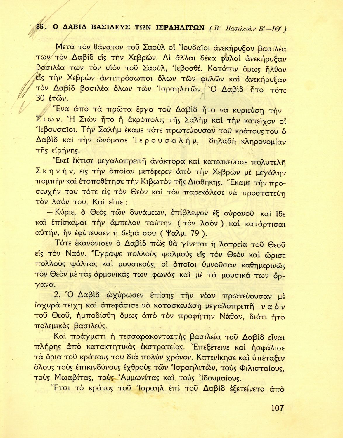 Σχολικό εγχειρίδιο Θρησκευτικών που συνιστά μία εξιστόρηση της Παλαιάς Διαθήκης από τη δημιουργία του κόσμου ως την υποταγή των Εβραίων στους Ρωμαίους. Περιέχει και στοιχεία γεωγραφίας της Παλαιστίνης.