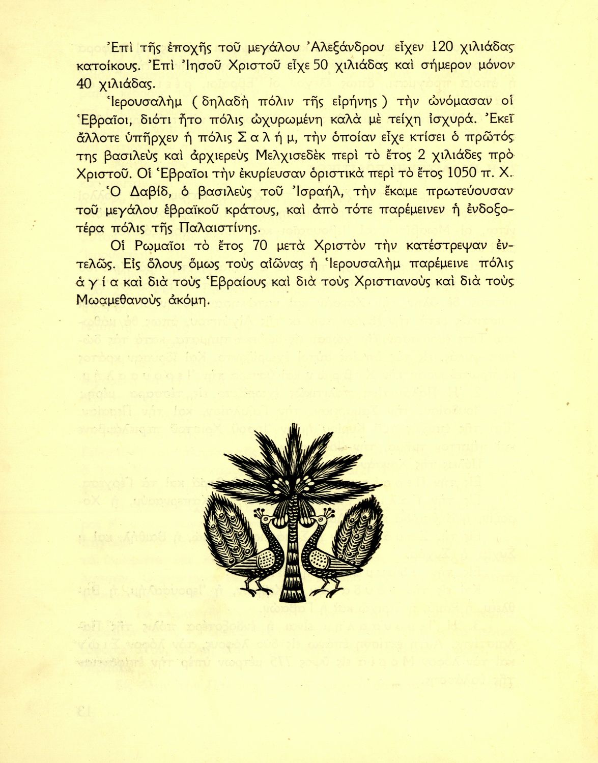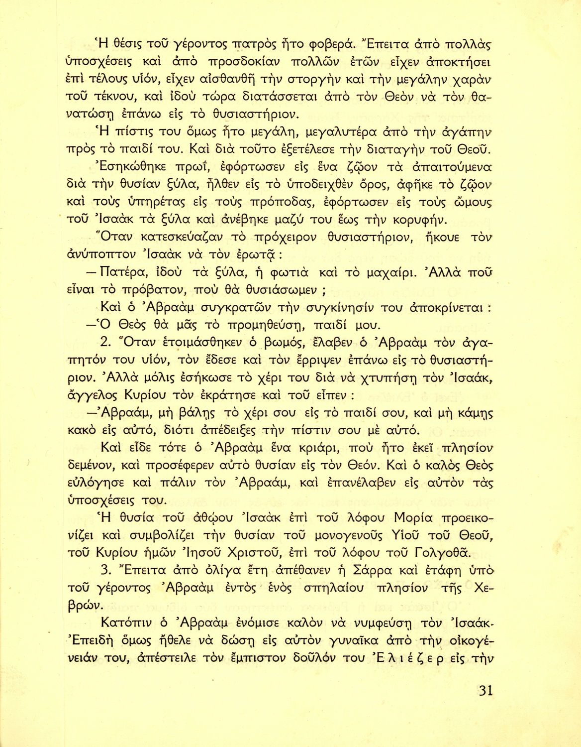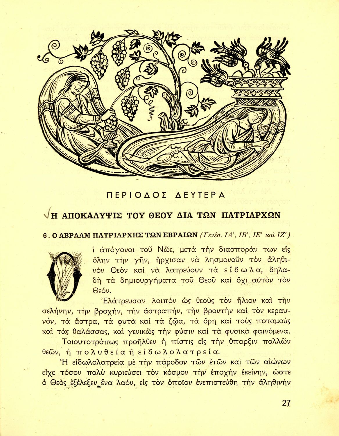 Σχολικό εγχειρίδιο Θρησκευτικών που συνιστά μία εξιστόρηση της Παλαιάς Διαθήκης από τη δημιουργία του κόσμου ως την υποταγή των Εβραίων στους Ρωμαίους. Περιέχει και στοιχεία γεωγραφίας της Παλαιστίνης.