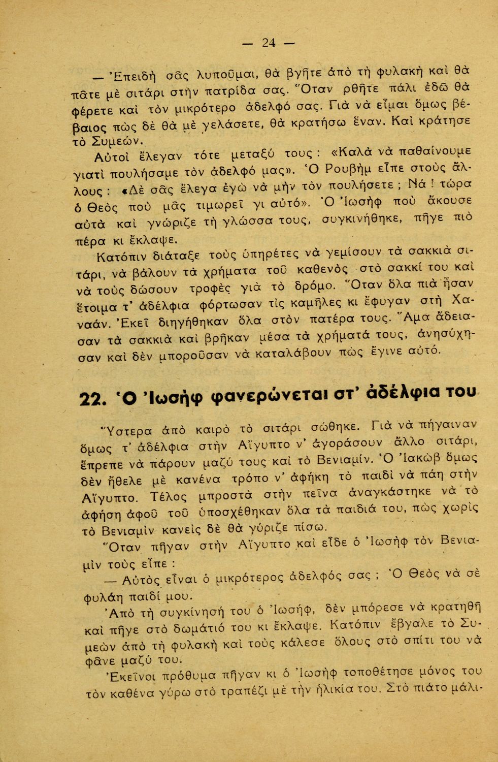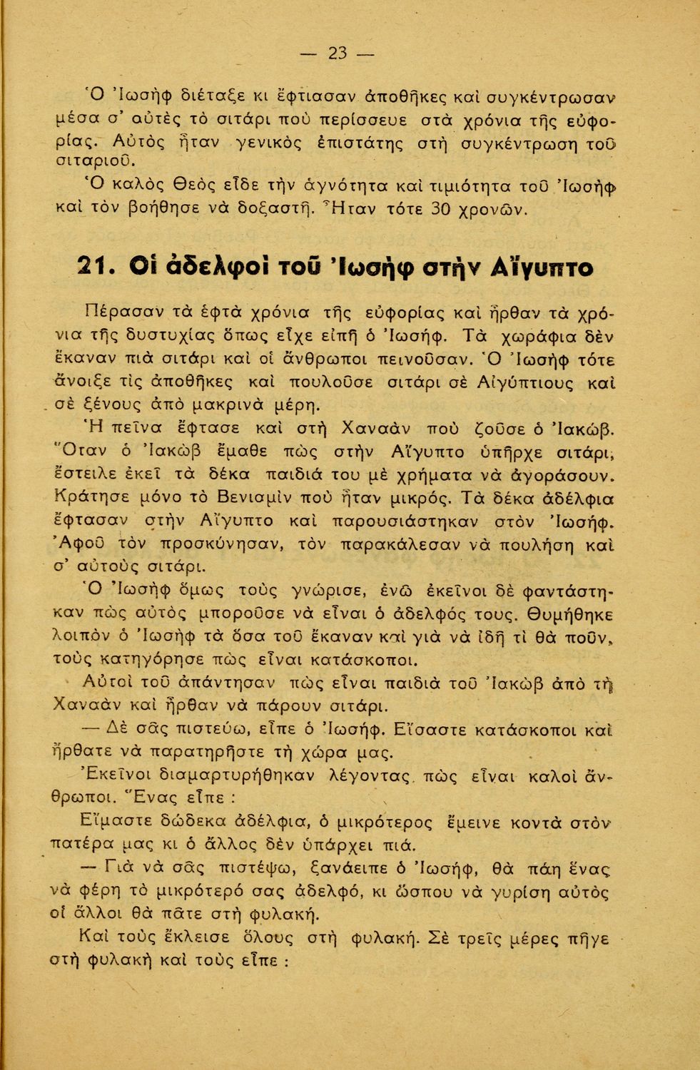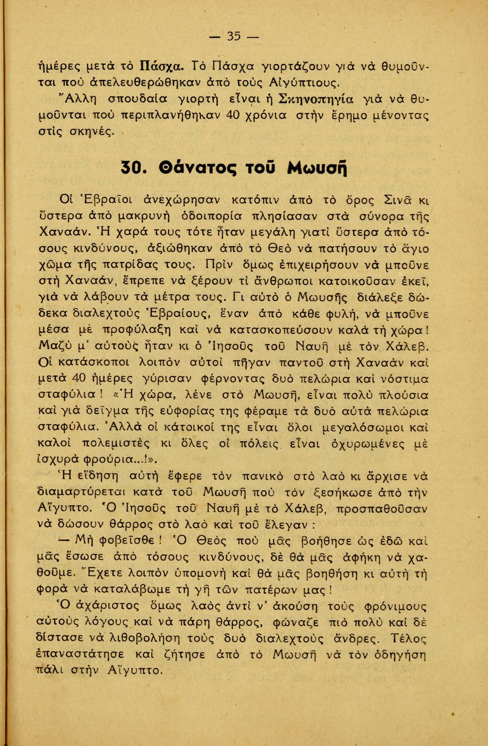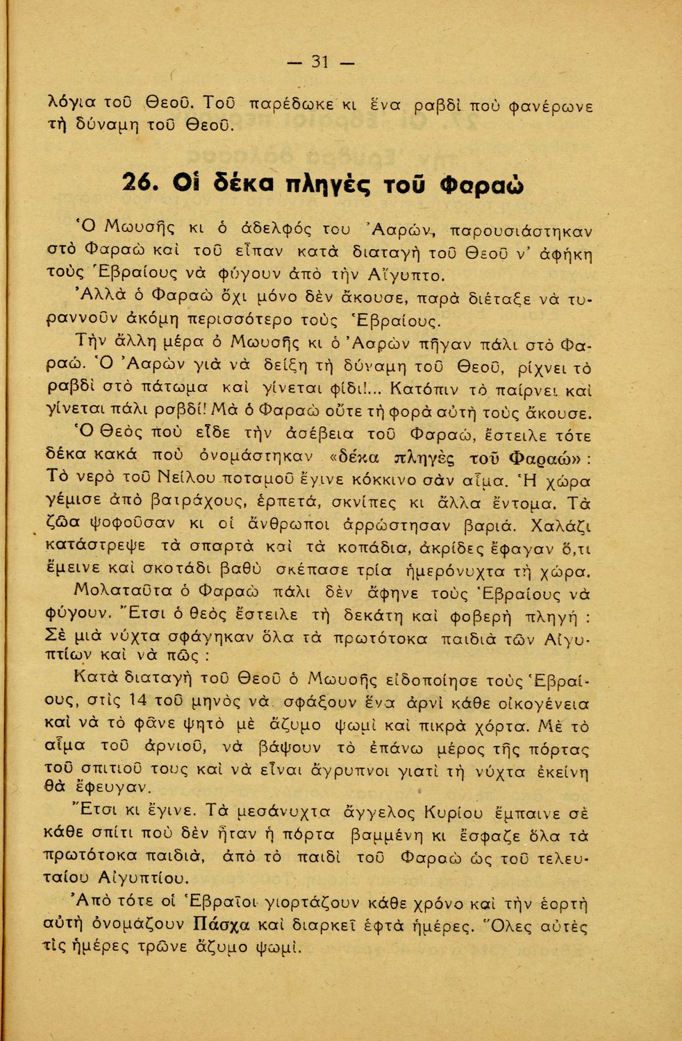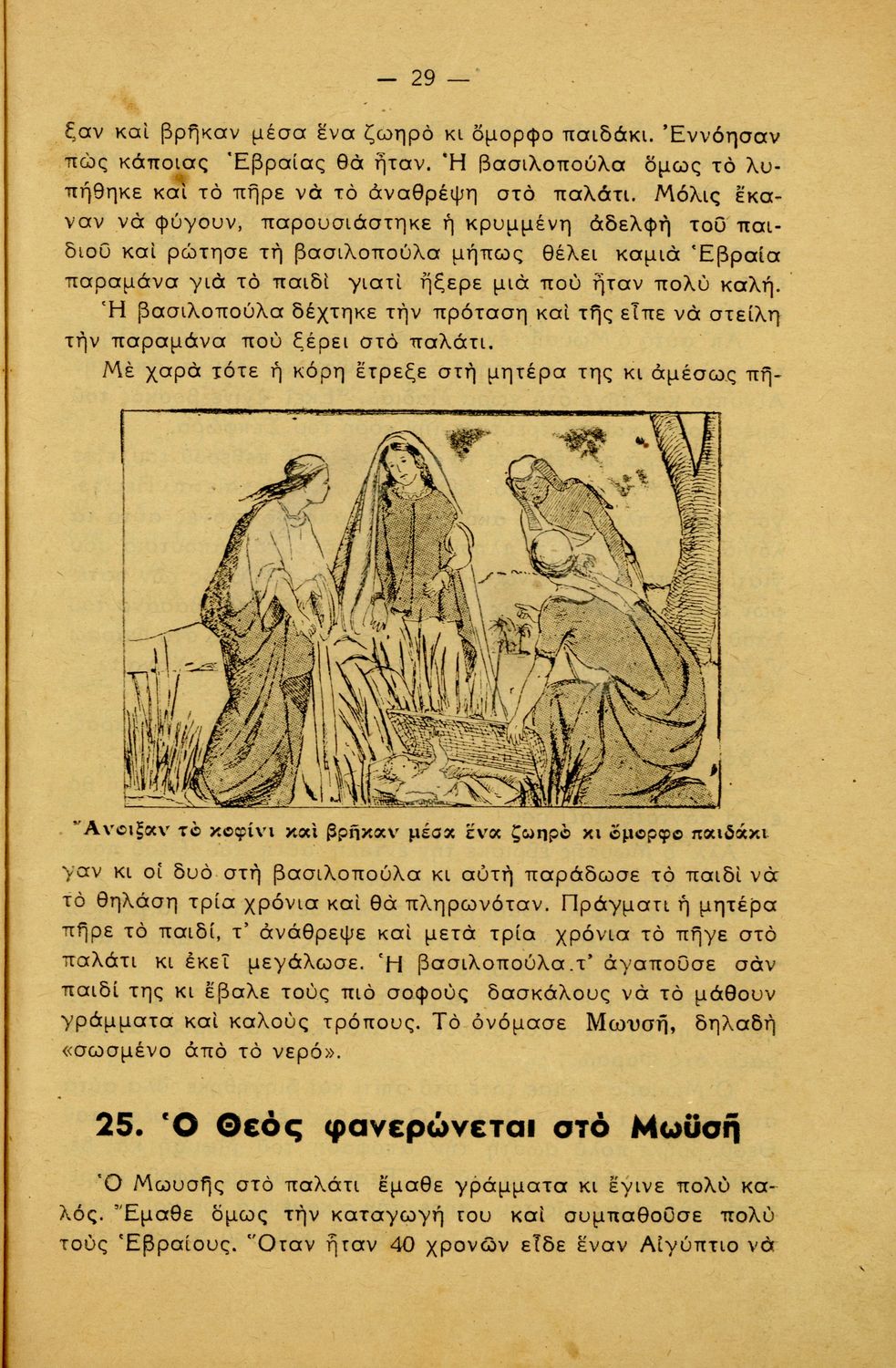 Σχολικό εγχειρίδιο Θρησκευτικών για τους μαθητές της Γ' Δημοτικού. Ενώ το βιβλίο αναφέρεται σε θέματα Παλαιάς Διαθήκης στο τέλος έχει γιορτές αγίων που έχουν σχέση με την ιστορία της Εκκλησίας.