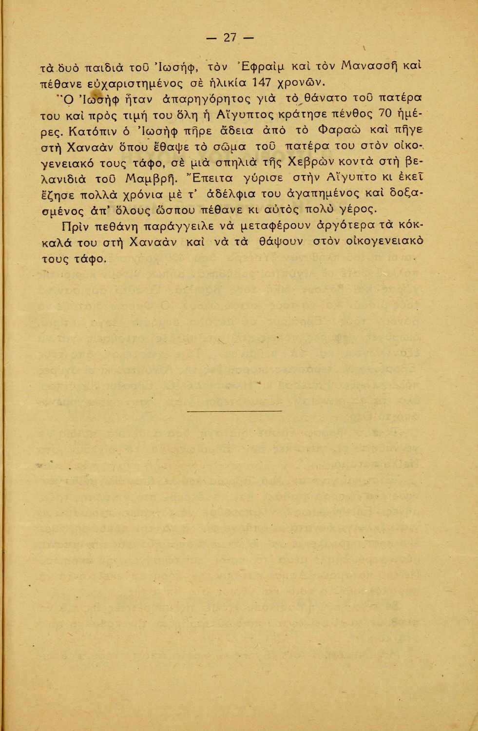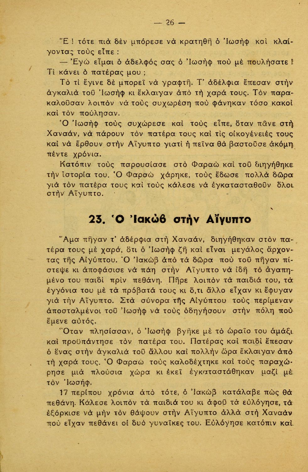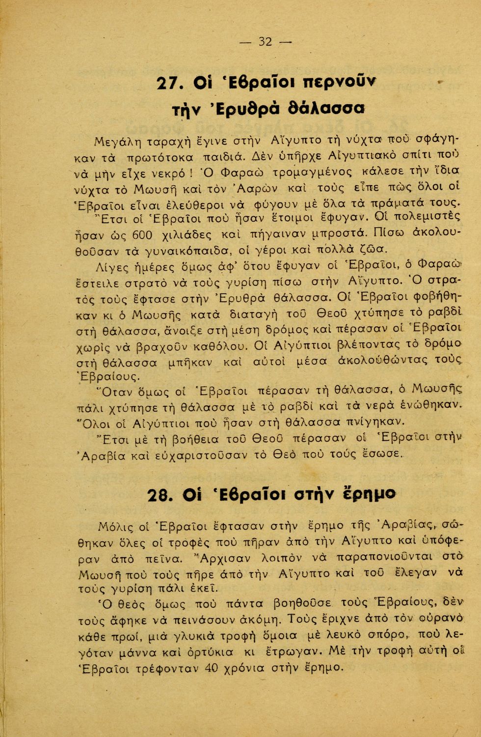 Σχολικό εγχειρίδιο Θρησκευτικών Δημοτικού που συνιστά μία εξιστόρηση της Παλαιάς Διαθήκης από τη δημιουργία του κόσμου ως τους Προφήτες.