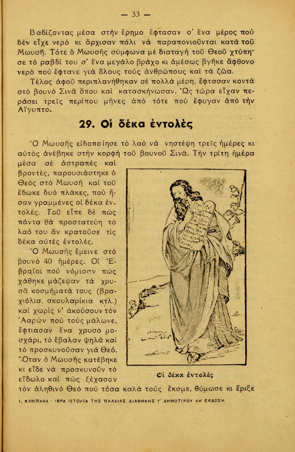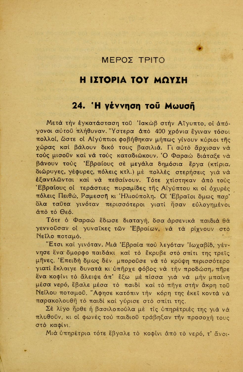 Σχολικό εγχειρίδιο Θρησκευτικών [Γ΄ Δημοτικού] που συνιστά μία εξιστόρηση της Παλαιάς Διαθήκης από τη δημιουργία του κόσμου ως τους Προφήτες.