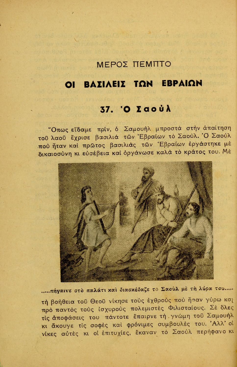 Σχολικό εγχειρίδιο Θρησκευτικών [Γ΄ Δημοτικού] που συνιστά μία εξιστόρηση της Παλαιάς Διαθήκης από τη δημιουργία του κόσμου ως τους Προφήτες.