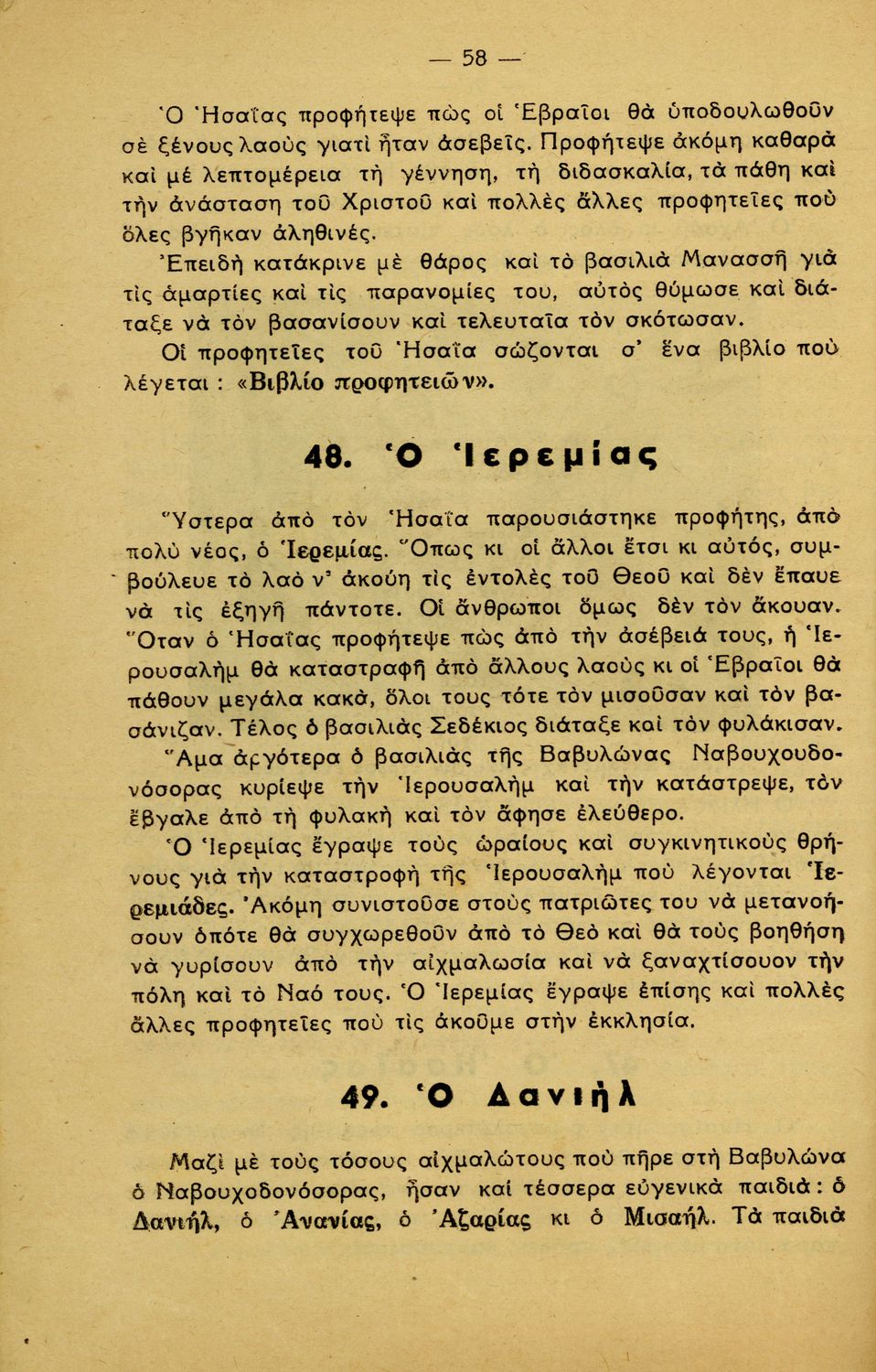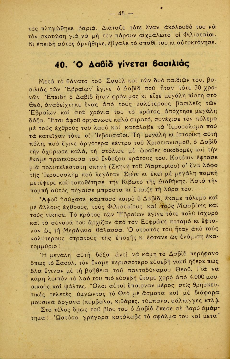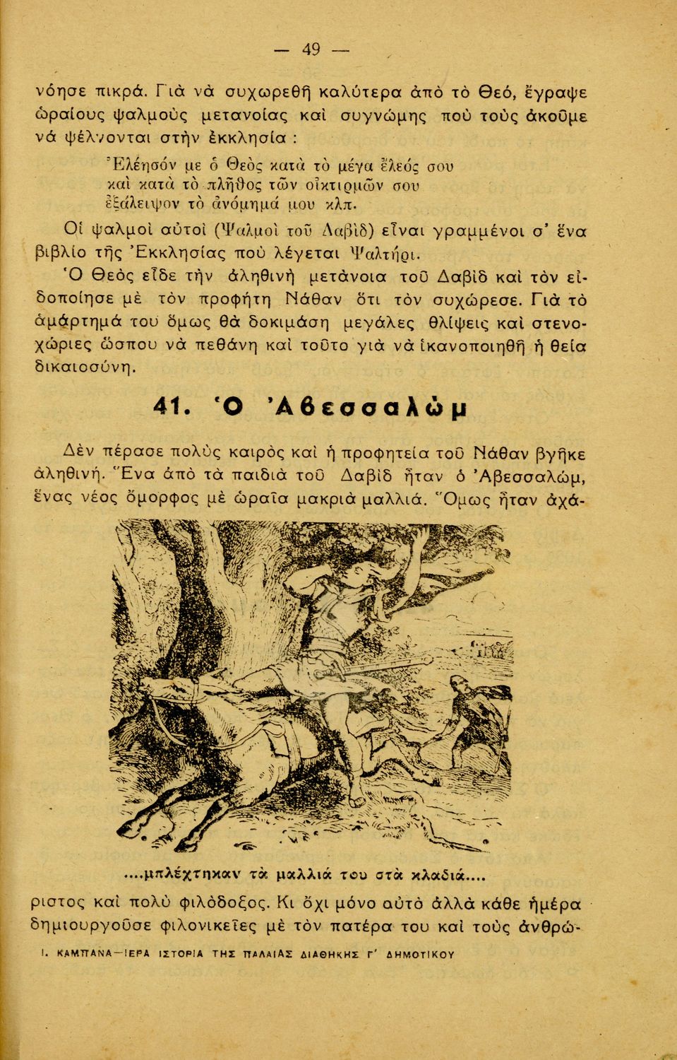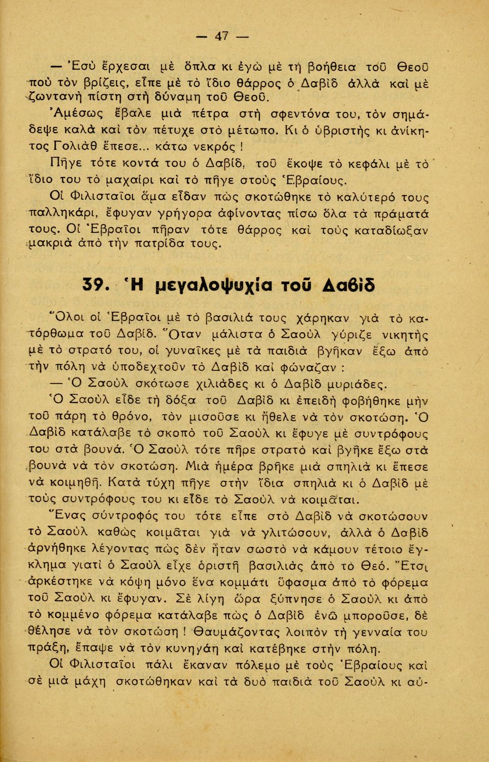 Σχολικό εγχειρίδιο Θρησκευτικών για τους μαθητές της Γ' Δημοτικού. Ενώ το βιβλίο αναφέρεται σε θέματα Παλαιάς Διαθήκης στο τέλος έχει γιορτές αγίων που έχουν σχέση με την ιστορία της Εκκλησίας.