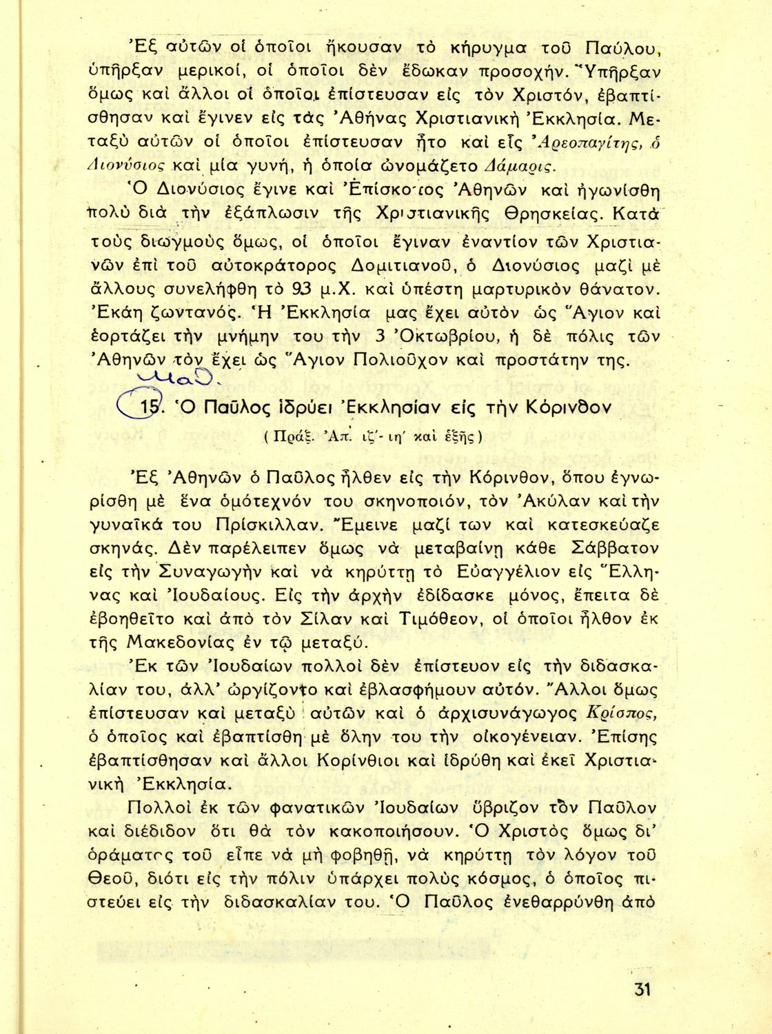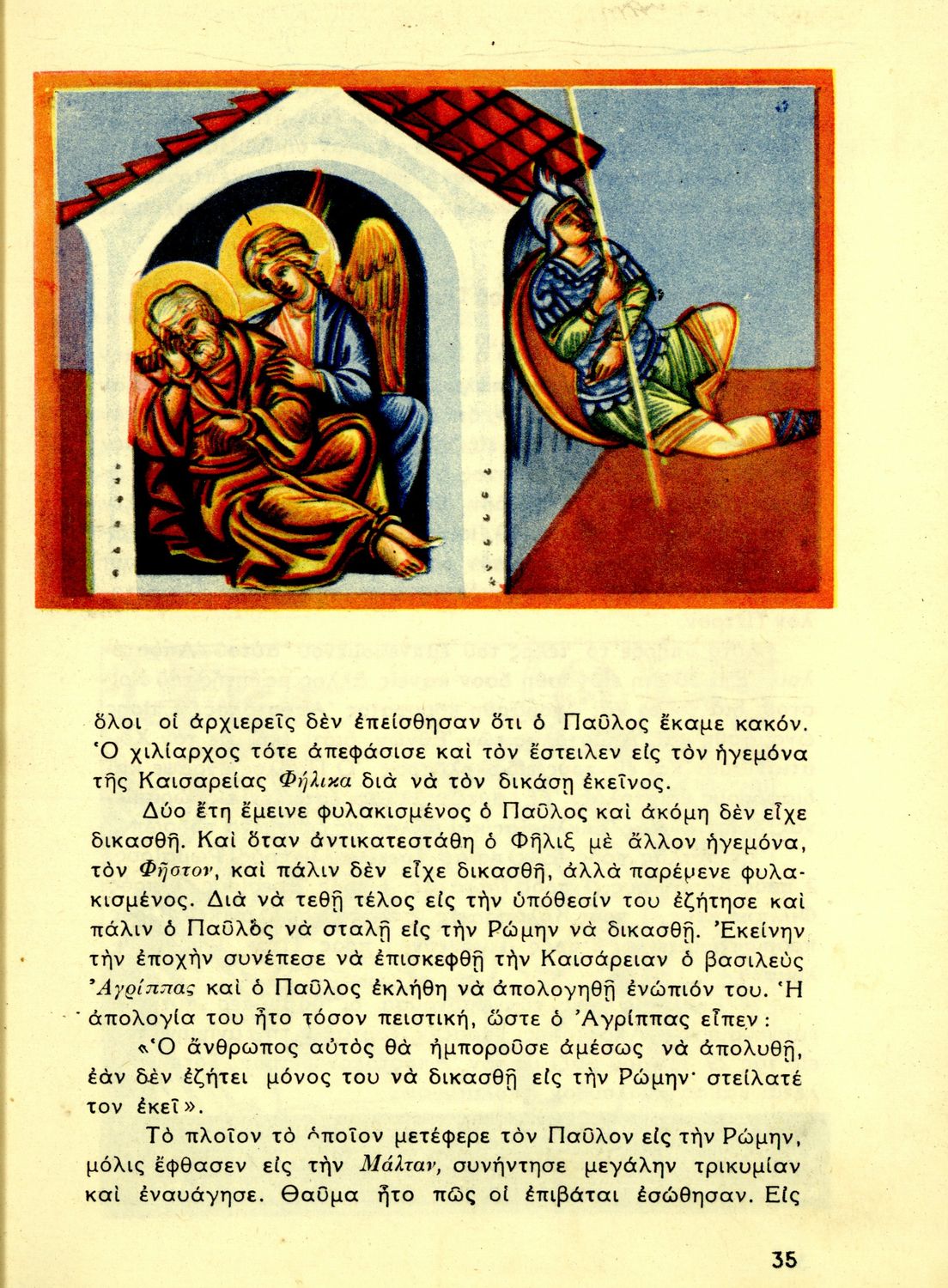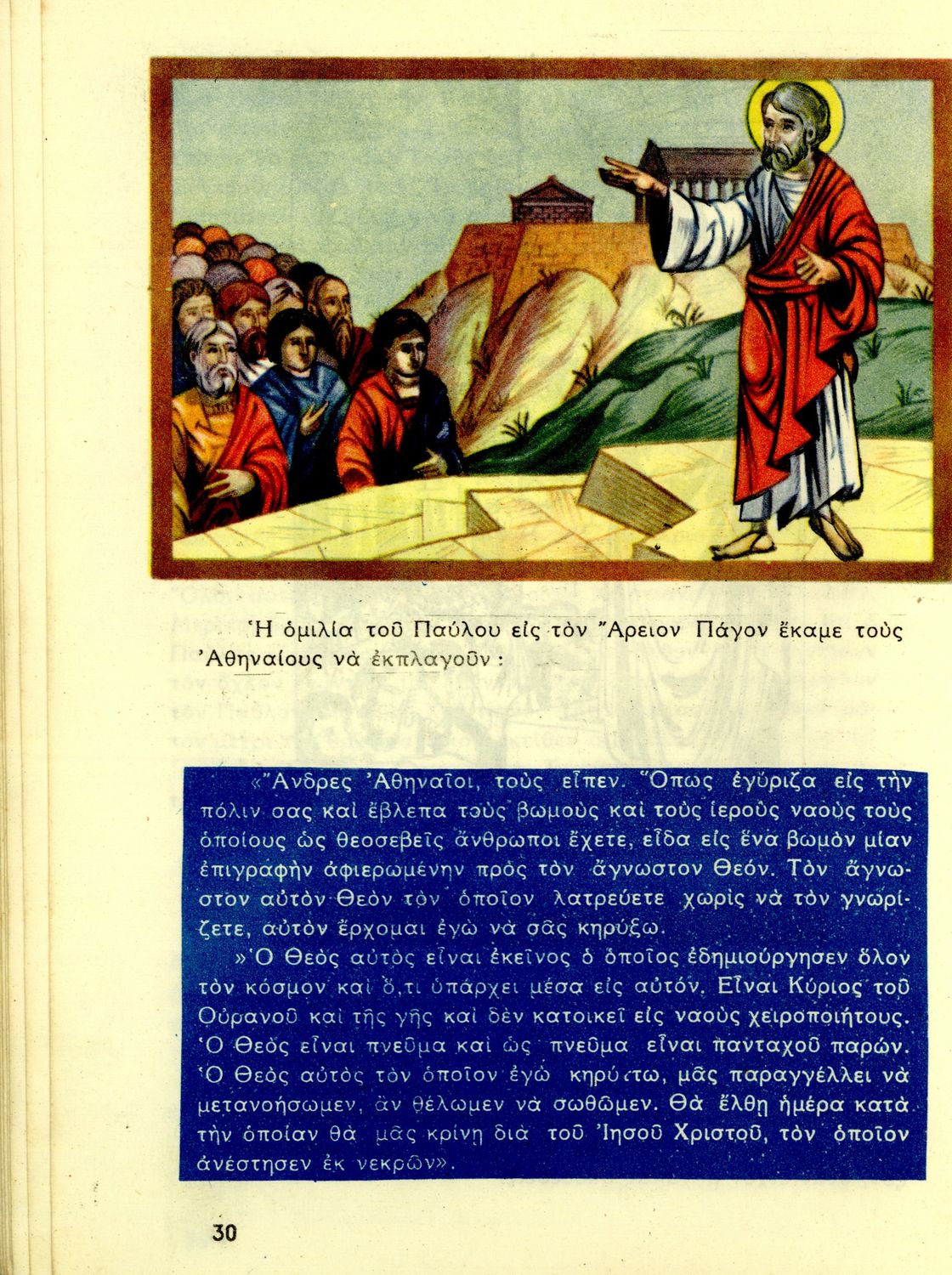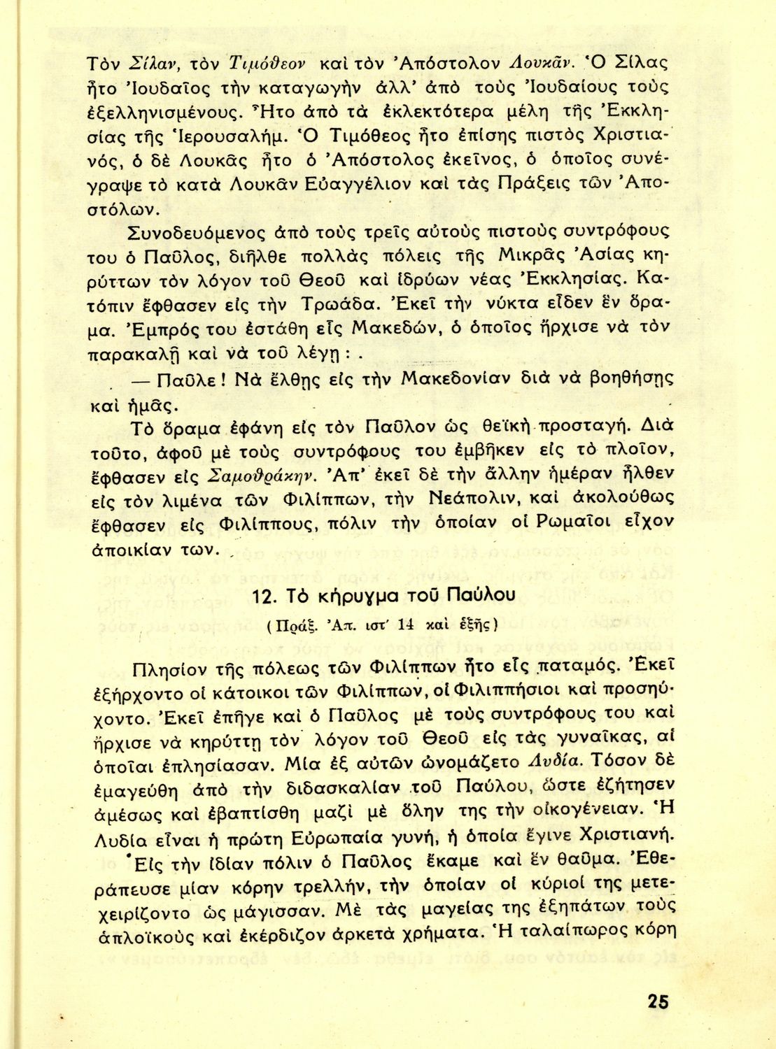 Βαθμίδα εκπαίδευσης: Πρωτοβάθμια Τάξη: Ε' Δημοτικού Μάθημα: Θρησκευτικά Γλώσσα: Απλή καθαρεύουσα Παρουσίαση περιεχομένου: Μαθητικό βοήθημα Θρησκευτικών Ε΄ Δημοτικού που αποτελεί μια ιστορική επισκόπηση της Ορθόδοξης Εκκλησίας από την ομιλία του Πέτρου και την ίδρυση της πρώτης χριστιανικής Εκκλησίας μέχρι την ίδρυση της Εκκλησίας της Ελλάδας. |