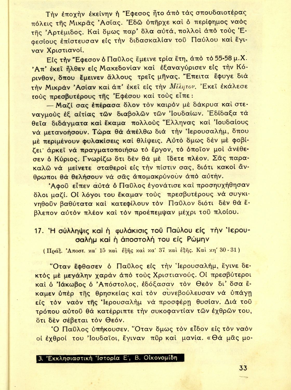 Κωδικός αναγνώρισης: 04-00042 Τίτλος: Εκκλησιαστική ιστορία Τάξις Ε΄ Συγγραφέας: Βασ. Οικονομίδης Μέγεθος και υπόστρωμα: Μαθητικό βοήθημα, 20εκ., μαλακό εξώφυλλο, 128 σελίδες. Σκίτσα (ασπρόμαυρα και έγχυμα), εξώφυλλο (έγχρωμο). |
