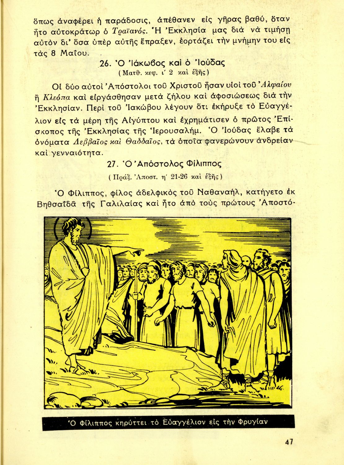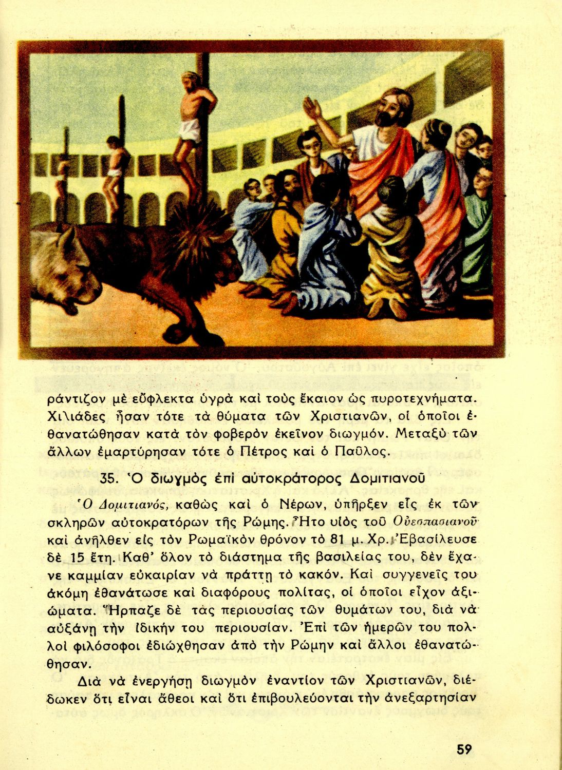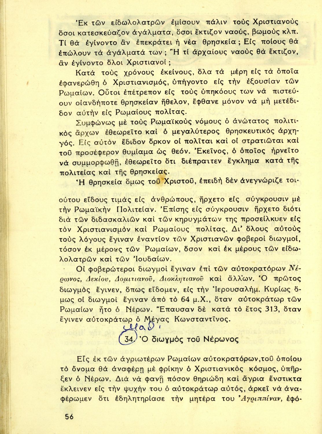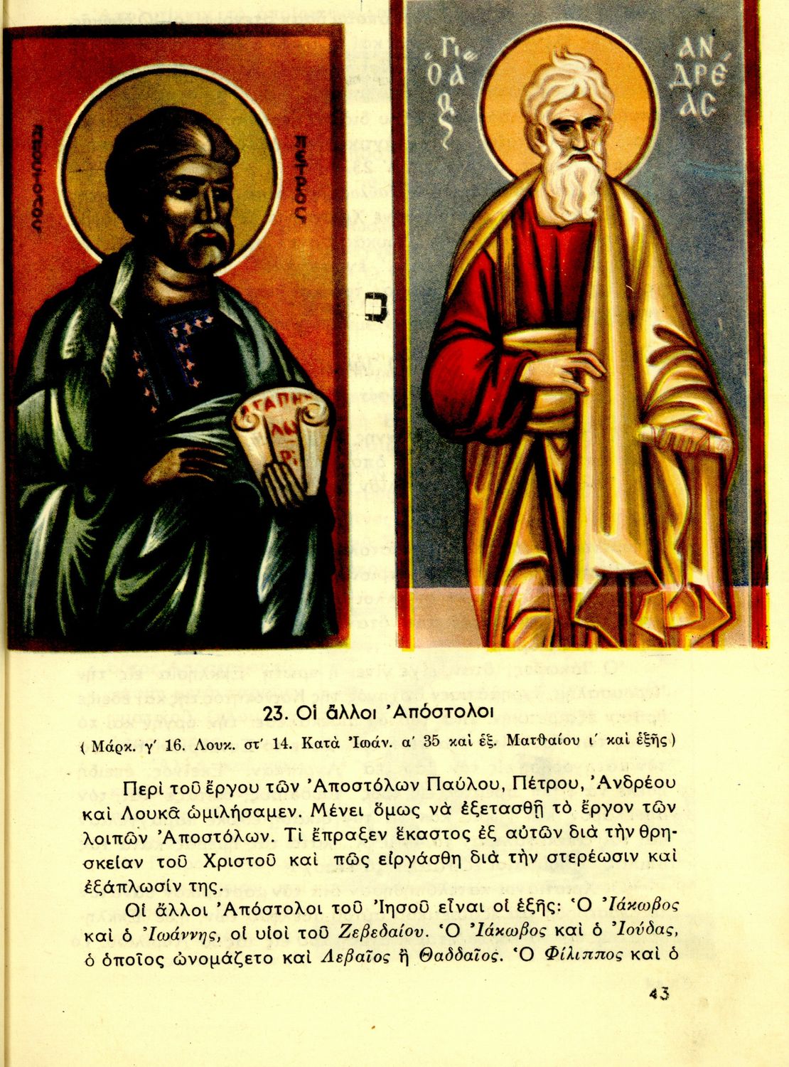 Βαθμίδα εκπαίδευσης: Πρωτοβάθμια Τάξη: Ε' Δημοτικού Μάθημα: Θρησκευτικά Γλώσσα: Απλή καθαρεύουσα Παρουσίαση περιεχομένου: Μαθητικό βοήθημα Θρησκευτικών Ε΄ Δημοτικού που αποτελεί μια ιστορική επισκόπηση της Ορθόδοξης Εκκλησίας από την ομιλία του Πέτρου και την ίδρυση της πρώτης χριστιανικής Εκκλησίας μέχρι την ίδρυση της Εκκλησίας της Ελλάδας. |
