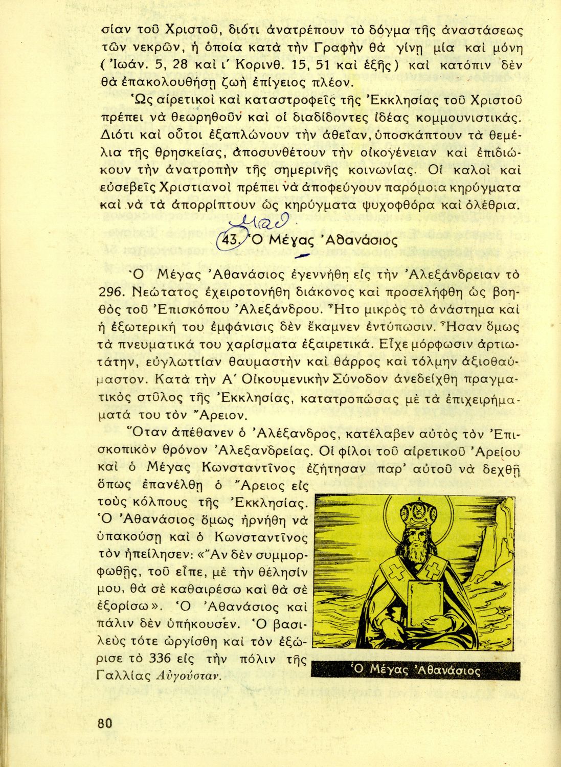 Σχολικό εγχειρίδιο Θρησκευτικών Ε΄ Δημοτικού που περιέχει την ιστορία της Ορθόδοξης Εκκλησίας από την ίδρυσή της μέχρι την δημιουργία της Εκκλησίας της Ελλάδας.