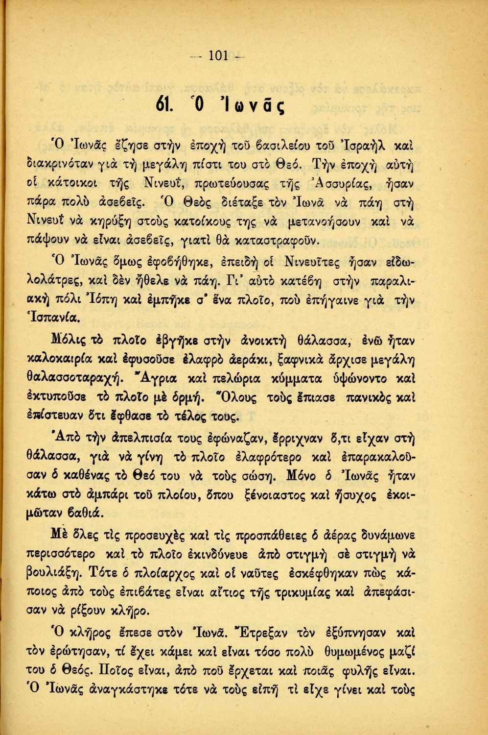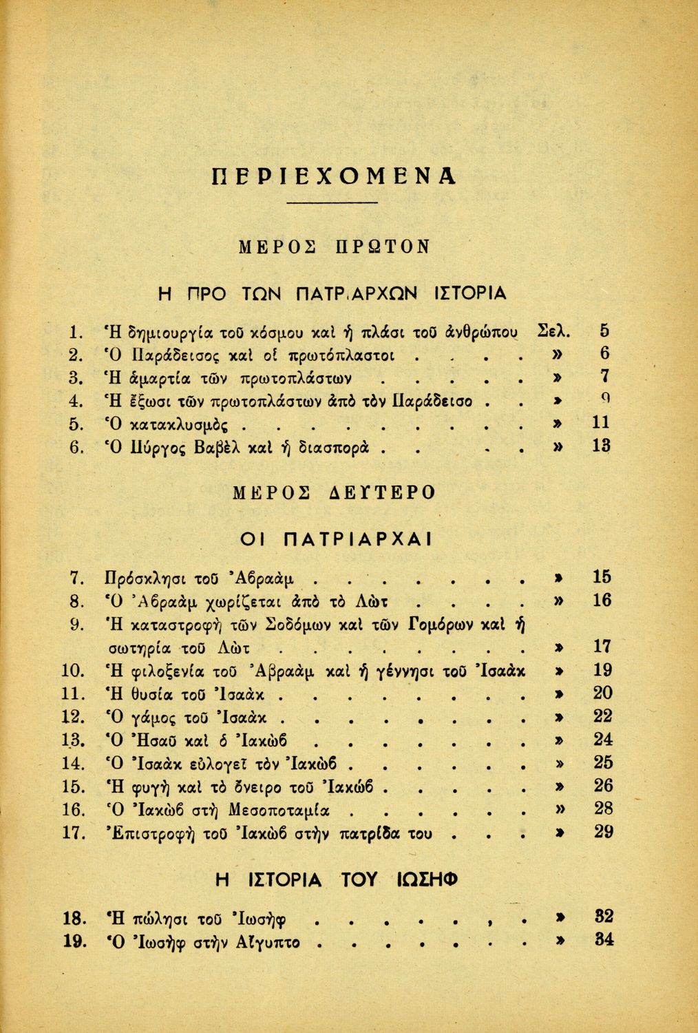 Σχολικό εγχειρίδιο Θρησκευτικών [Γ΄ Δημοτικού] που συνιστά μία εξιστόρηση της Παλαιάς Διαθήκης από τη δημιουργία του κόσμου ως τους Προφήτες.