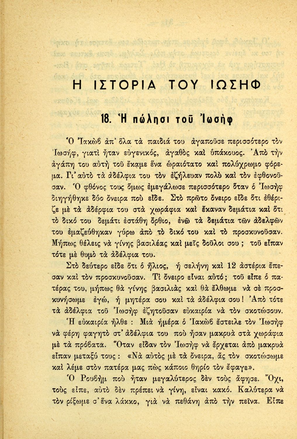 Σχολικό εγχειρίδιο Θρησκευτικών [Γ΄ Δημοτικού] που συνιστά μία εξιστόρηση της Παλαιάς Διαθήκης από τη δημιουργία του κόσμου ως τους Προφήτες.