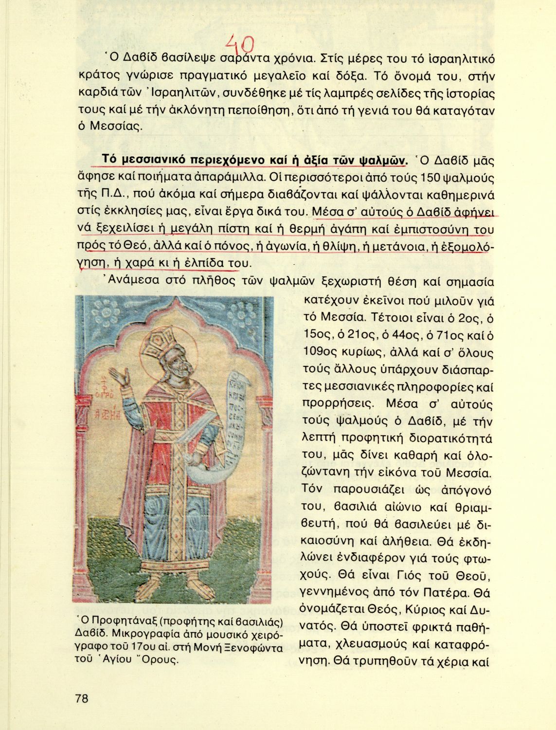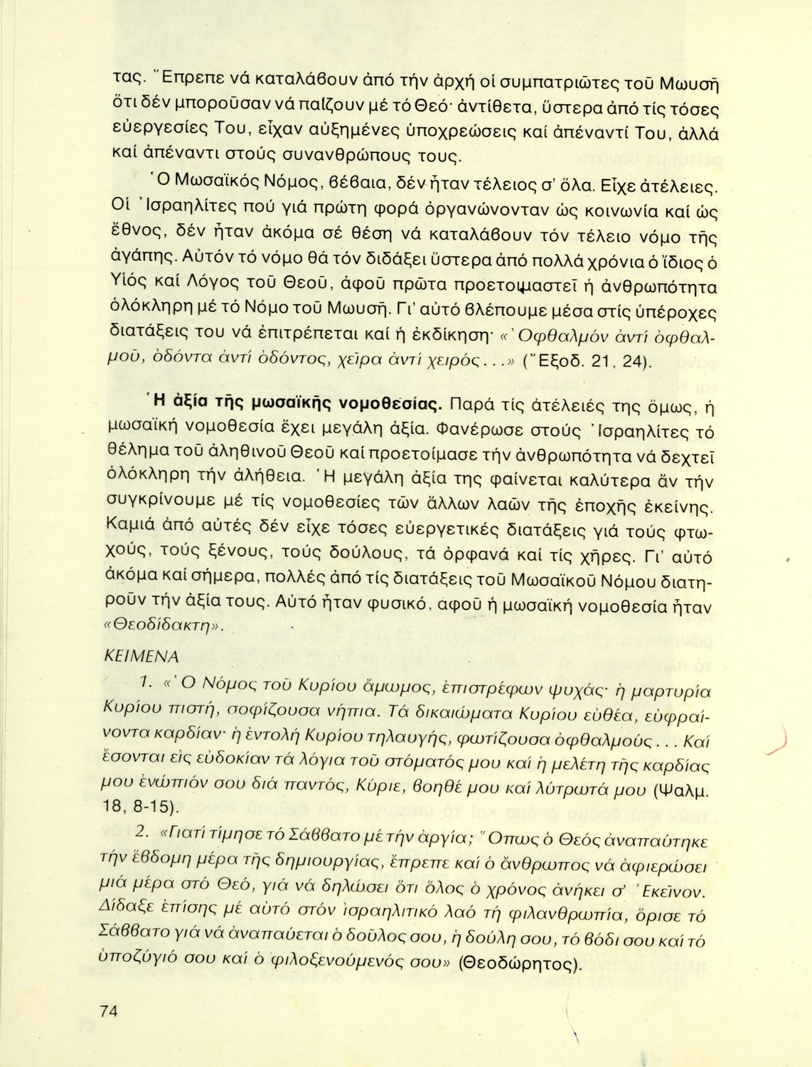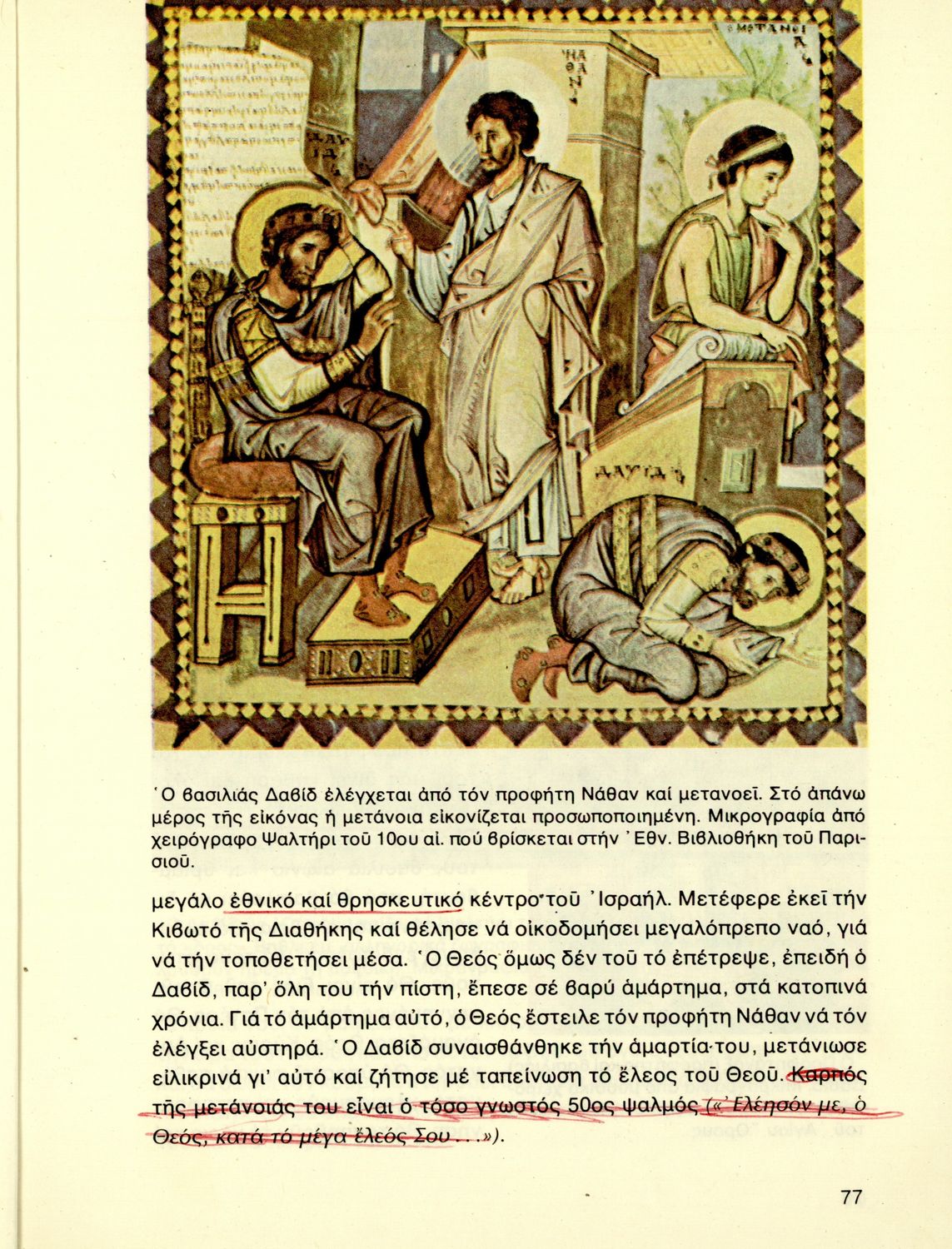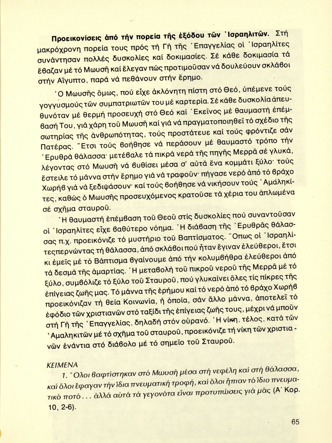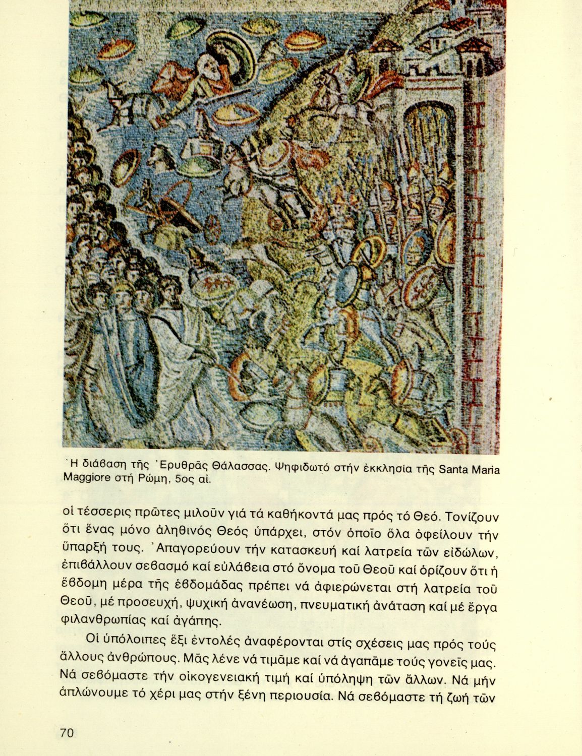 Σχολικό εγχειρίδιο Θρησκευτικών Α΄ Γυμνασίου που μεταφέρει το Λόγο του Θεού όπως εκφέρεται στα Ευαγγέλια και άλλα ιερά κείμενα της ορθόδοξης χριστιανικής παράδοσης.