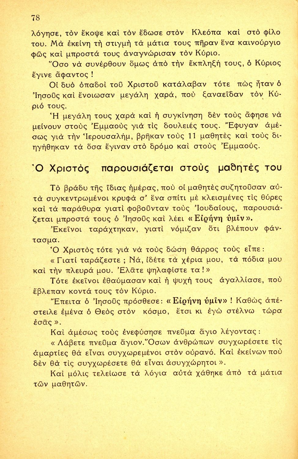 Μαθητικό βοήθημα Θρησκευτικών Δ΄ Δημοτικού που αποτελεί μια εξιστόρηση της Καινής Διαθήκης από τη γέννηση της Θεοτόκου μέχρι την ανάληψη του Χριστού. Περιέχει και στοιχεία γεωγραφίας της Παλαιστίνης