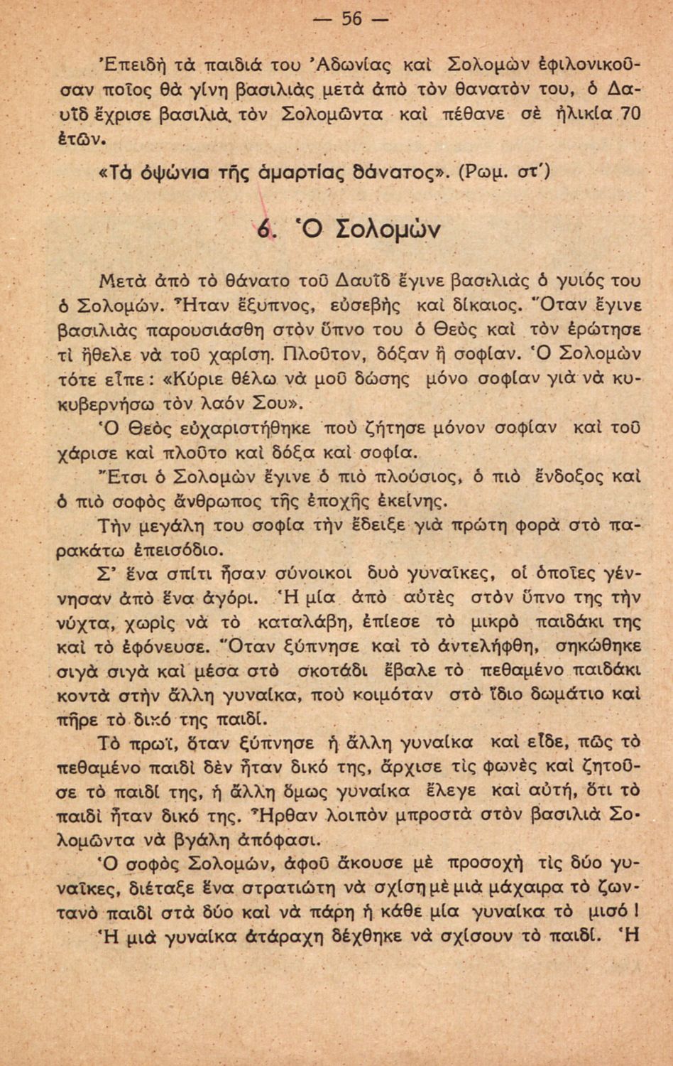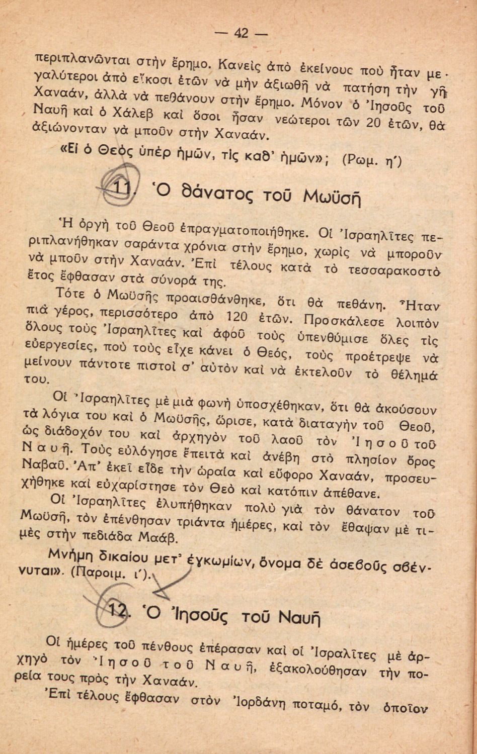 Σχολικό εγχειρίδιο για την Γ΄ Τάξη πιθανόν της Εκκλησιαστικής Γεωργικής Σχολής. Αναφέρεται στα γεγονότα της Παλαιάς Διαθήκης. Περιέχει τη δράση του Ιακώβ, του Μωυσή, μέχρι και τους προφήτες.