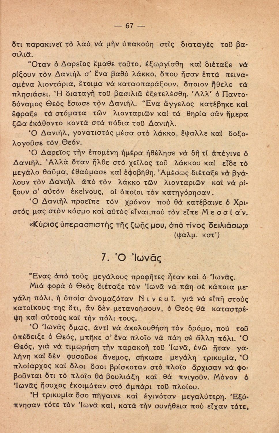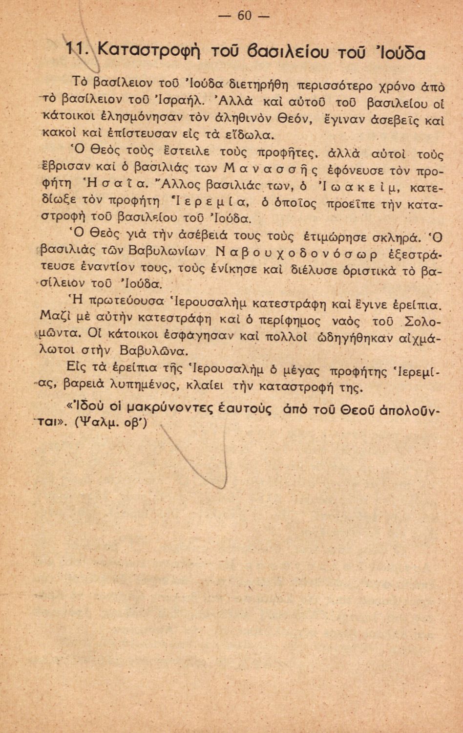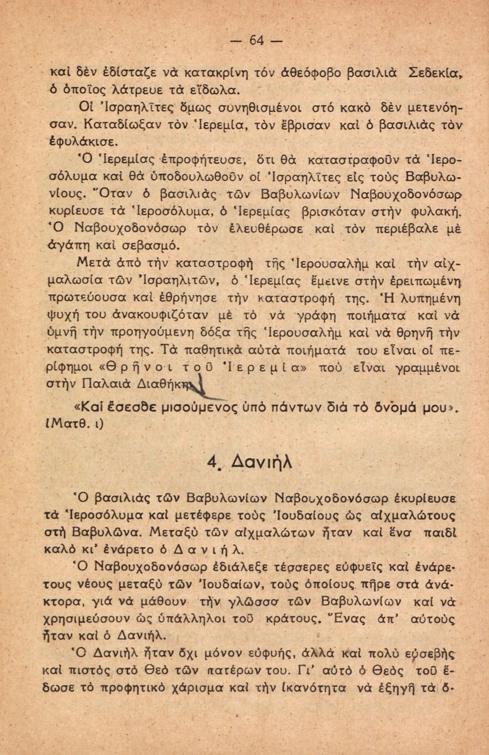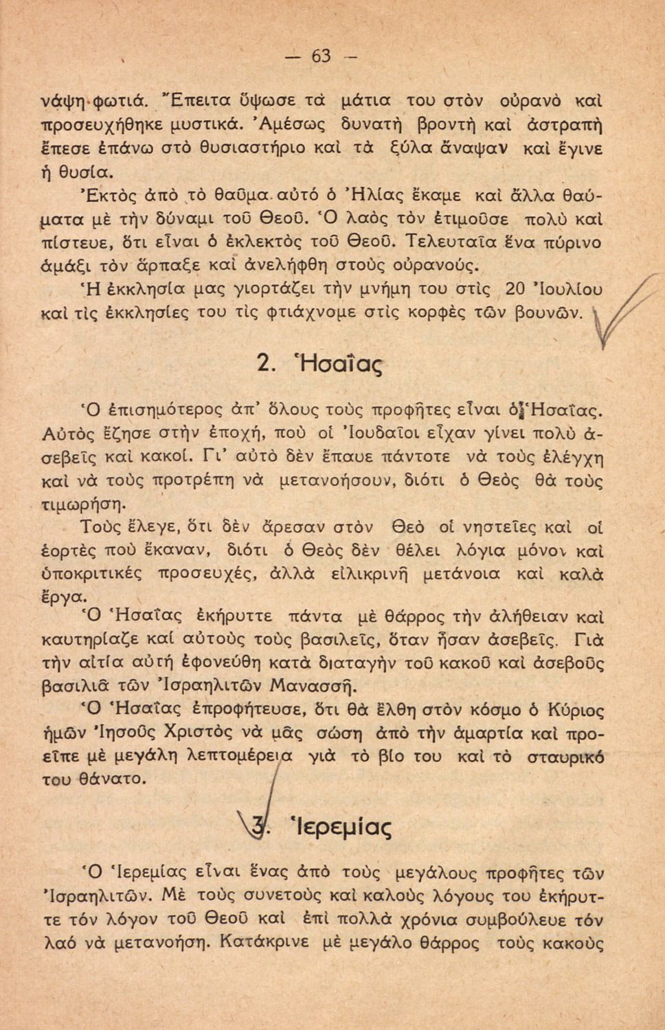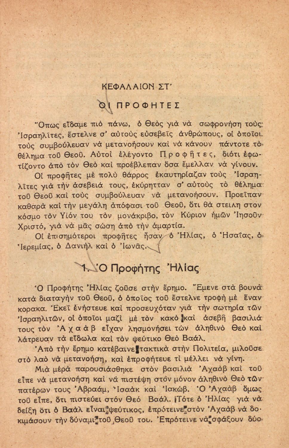 Σχολικό εγχειρίδιο για την Γ΄ Τάξη πιθανόν της Εκκλησιαστικής Γεωργικής Σχολής. Αναφέρεται στα γεγονότα της Παλαιάς Διαθήκης. Περιέχει τη δράση του Ιακώβ, του Μωυσή, μέχρι και τους προφήτες.