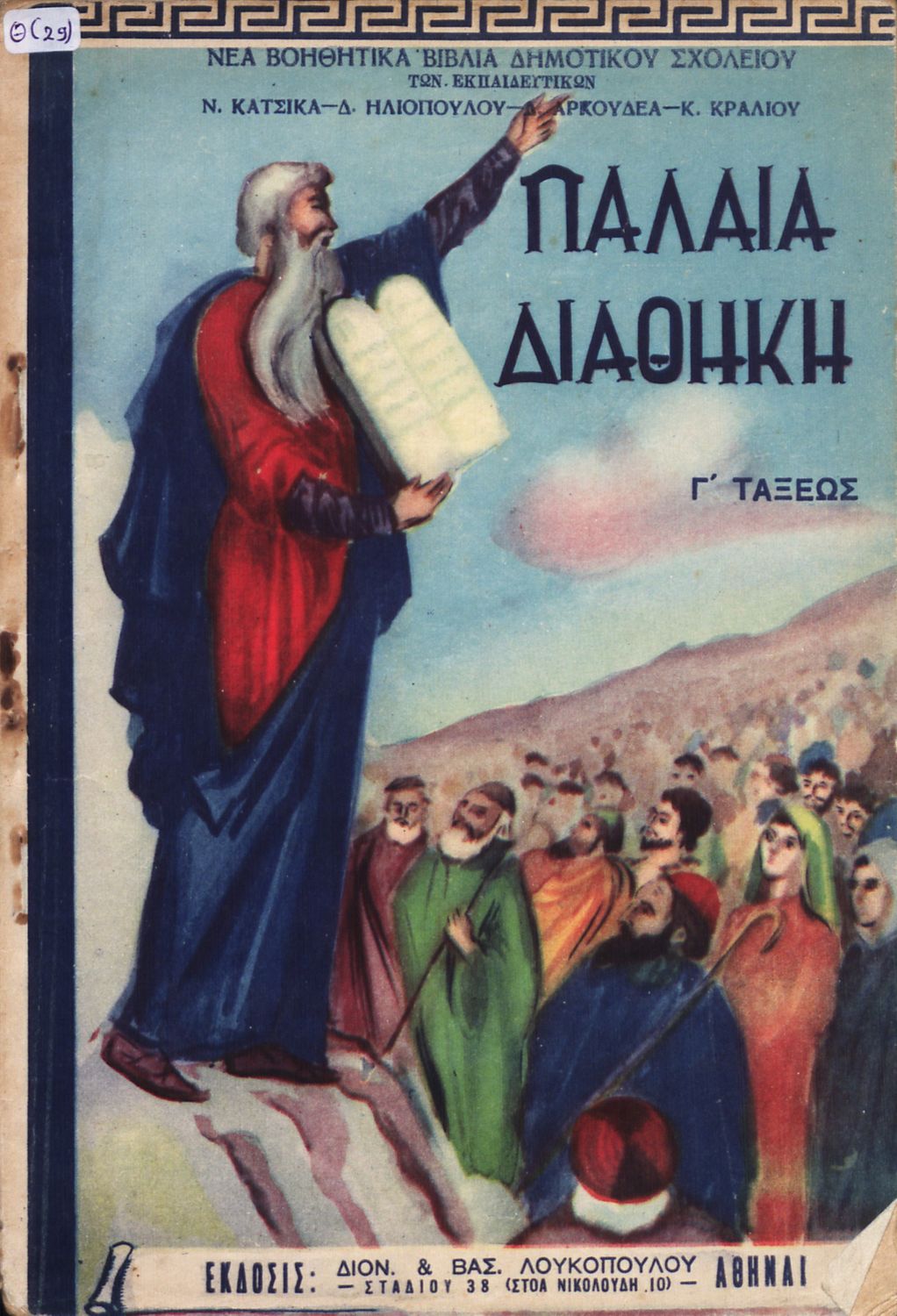 Κωδικός αναγνώρισης: 04-00055 Τίτλος: Παλαιά Διαθήκη διά την Γ΄ τάξιν του Δημοτικού Σχολείου Συγγραφέας: Ν. Κατσίκας, Κ. Κράλιος Μέγεθος και υπόστρωμα: Μαθητικό βοήθημα, 20εκ., μαλακό εξώφυλλο, 72 σελίδες. Εξώφυλλο (έγχρωμο), σκίτσα (ασπρόμαυρα). |