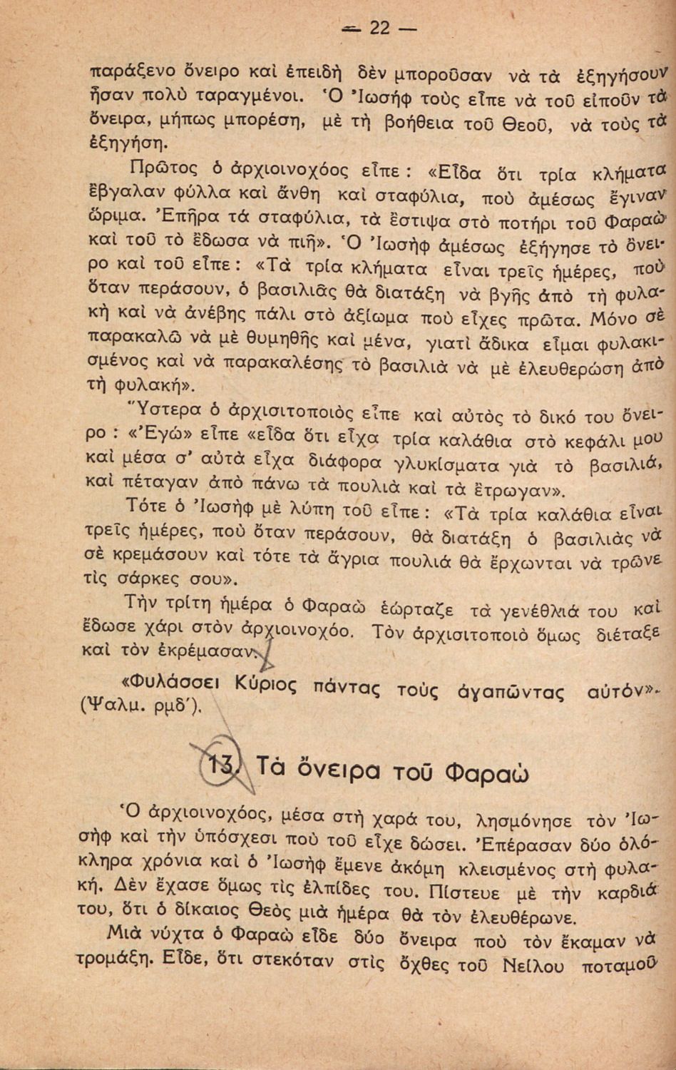 Μαθητικό βοήθημα Θρησκευτικών Γ΄ Δημοτικού που αποτελεί μια εξιστόρηση της Παλαιάς Διαθήκης από τη δημιουργία του κόσμου ως τους Προφήτες.