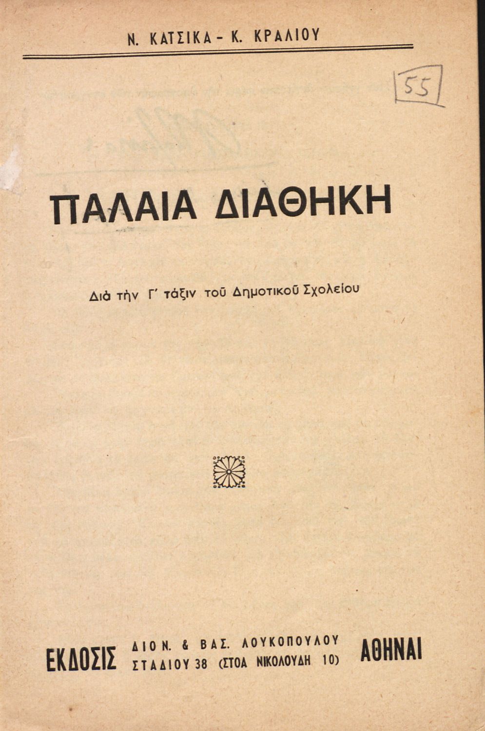 Εντοπισμός πρωτοτύπου: Εθνικό Κέντρο Έρευνας και Διάσωσης Σχολικού Υλικού Κωδικός βιβλιοθήκης: 55 |