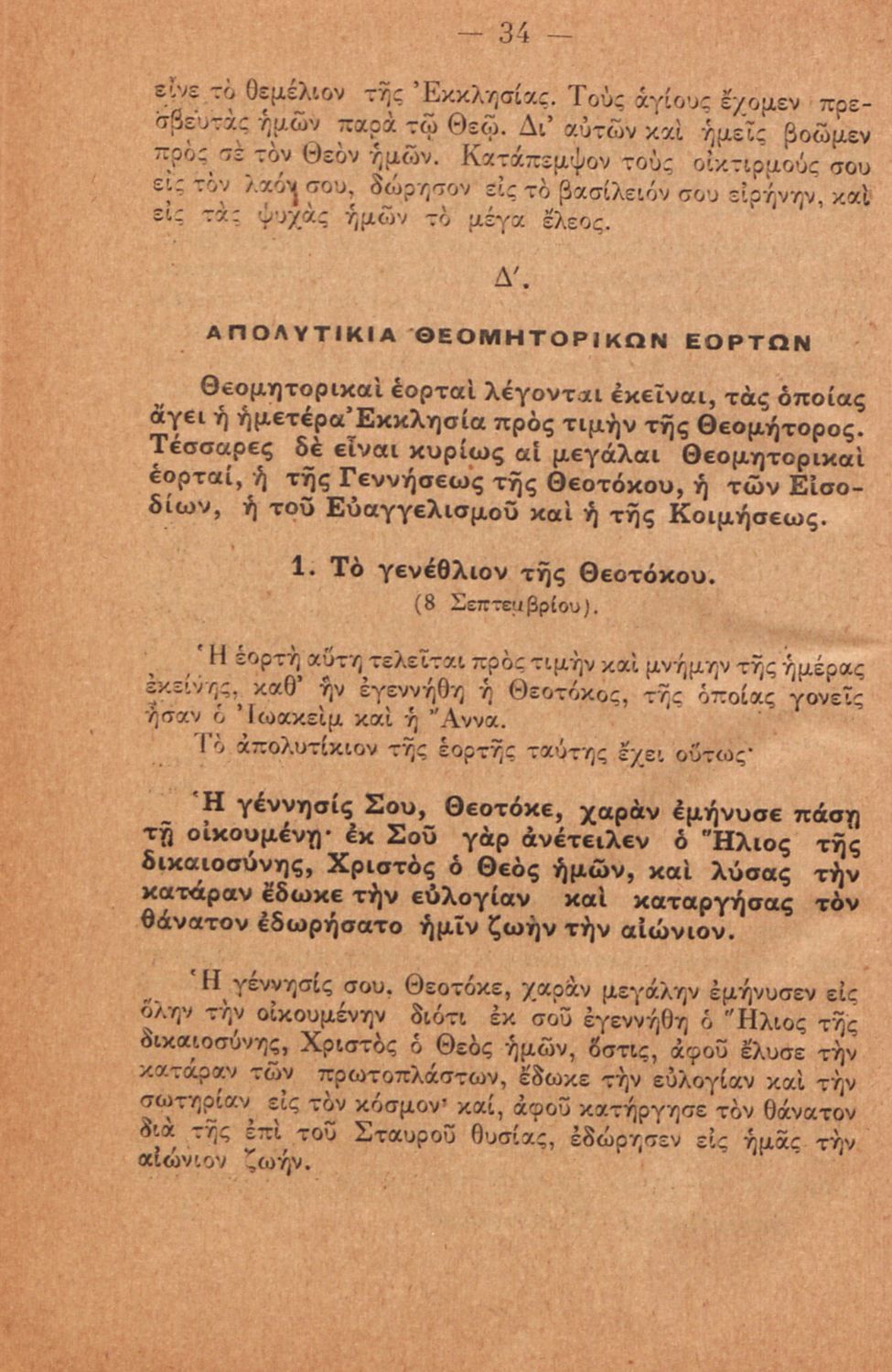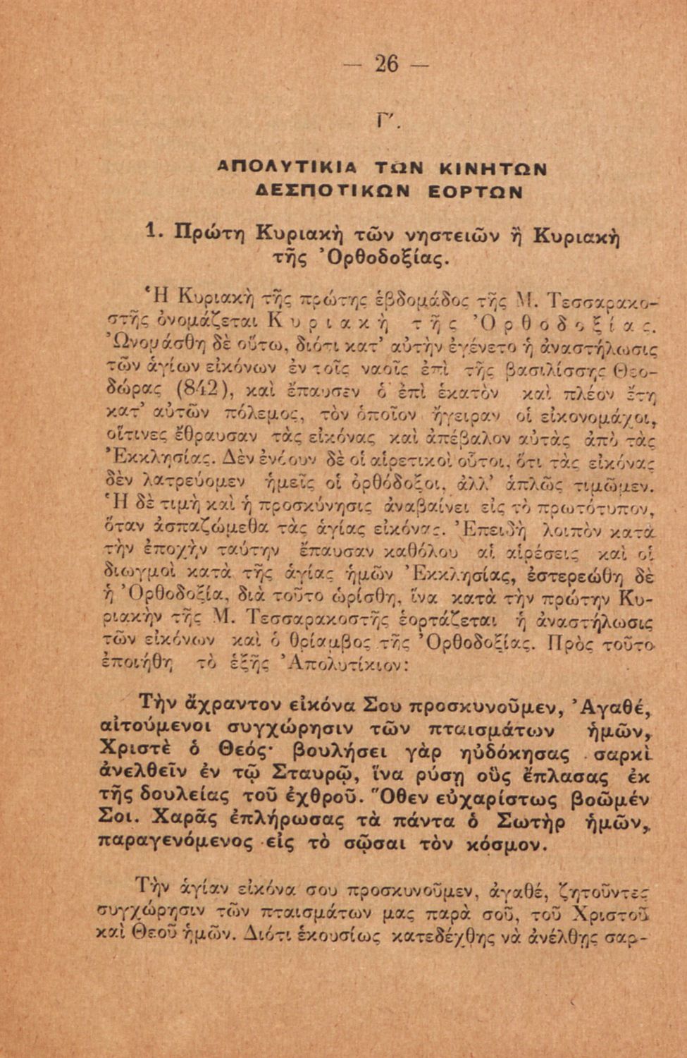 Κείμενον και ερμηνεία απολυτίκιων προς χρήσιν των Σχολείων και Παρθεναγωγείων