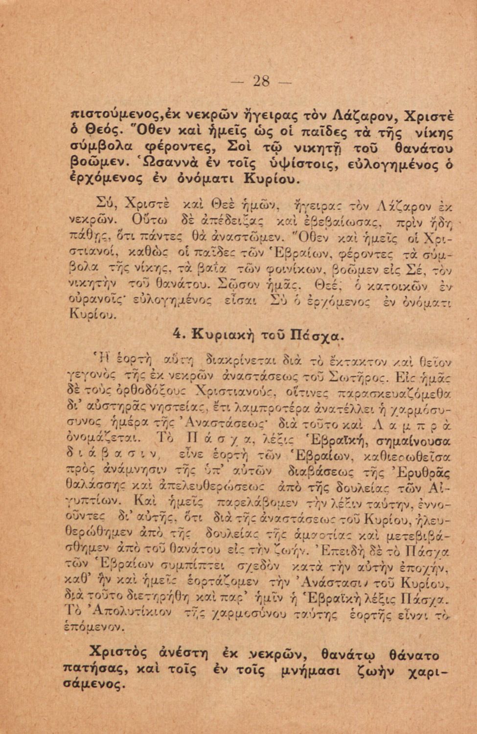 Παρουσίαση περιεχομένου: Σχολικό εγχειρίδιο Θρησκευτικών για τα Ελληνικά Σχολεία και Παρθεναγωγεία που αποτελεί μια ερμηνευτική ανάλυση των απολυτικίων των Αγίων και των τροπαρίων της Μεγάλης Εβδομάδας.