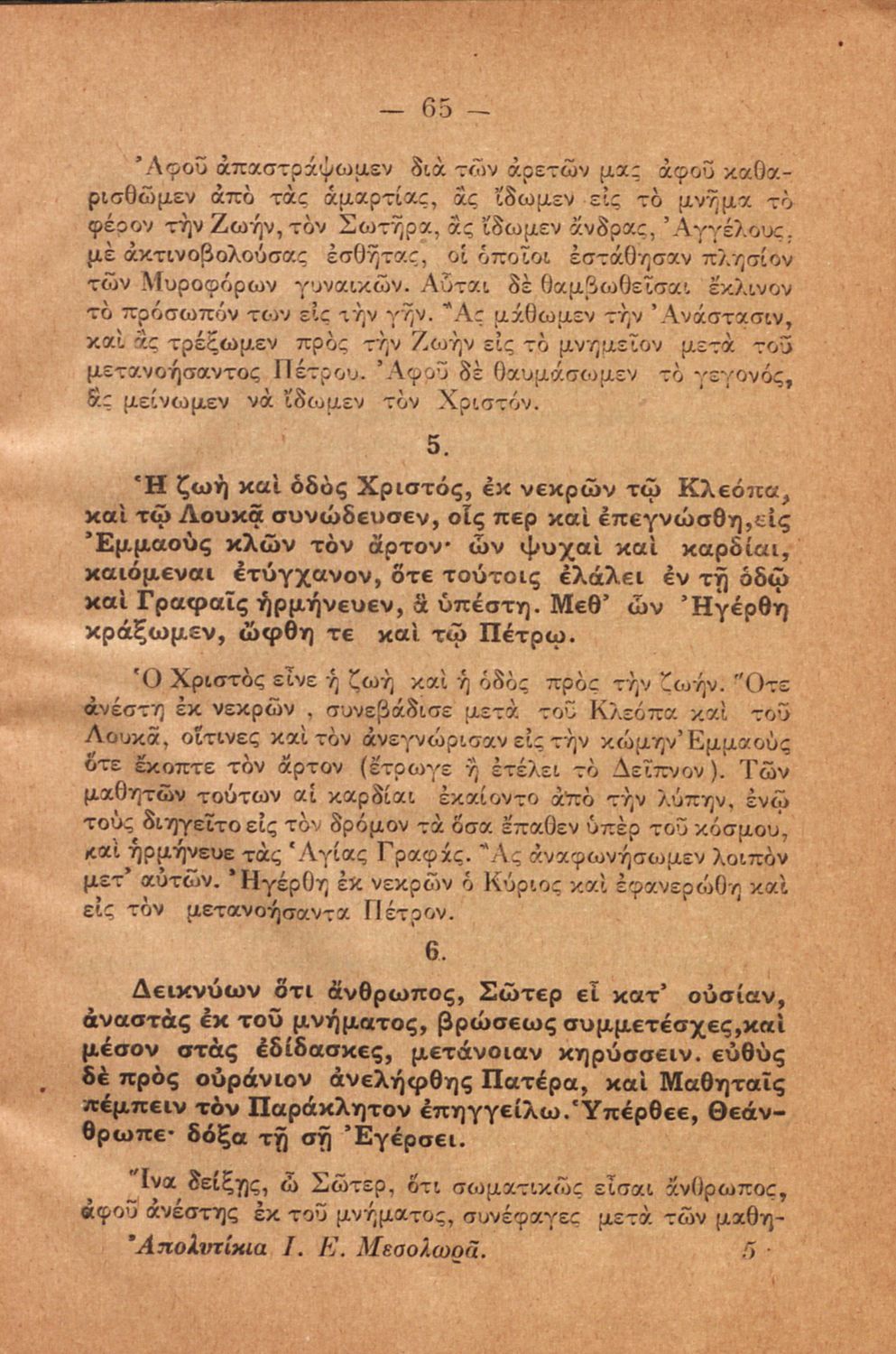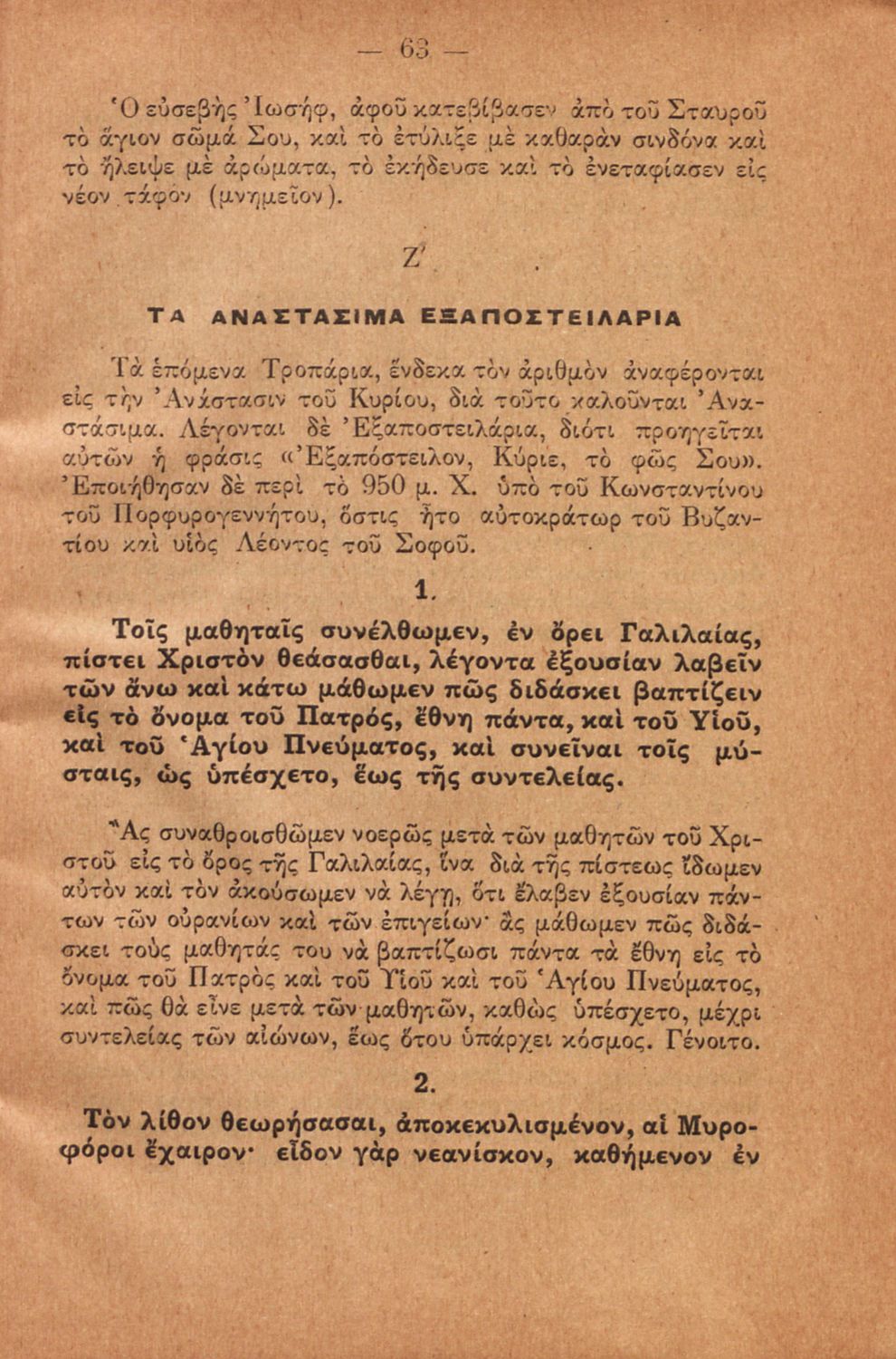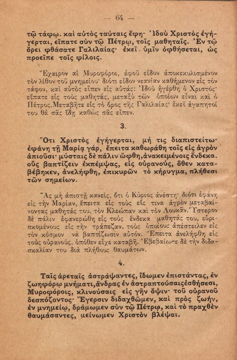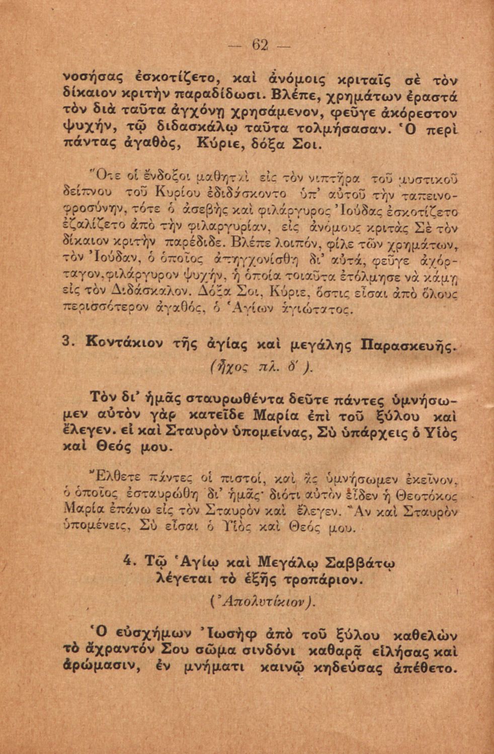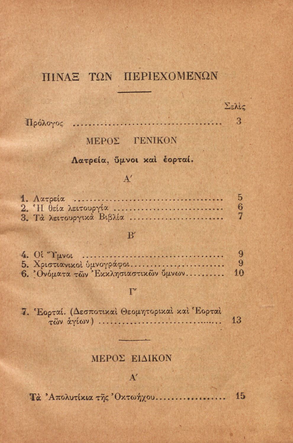 Σχολικό εγχειρίδιο Θρησκευτικών για τα Ελληνικά Σχολεία και Παρθεναγωγεία που αποτελεί μια ερμηνευτική ανάλυση των απολυτικίων των Αγίων και των τροπαρίων της Μεγάλης Εβδομάδας.