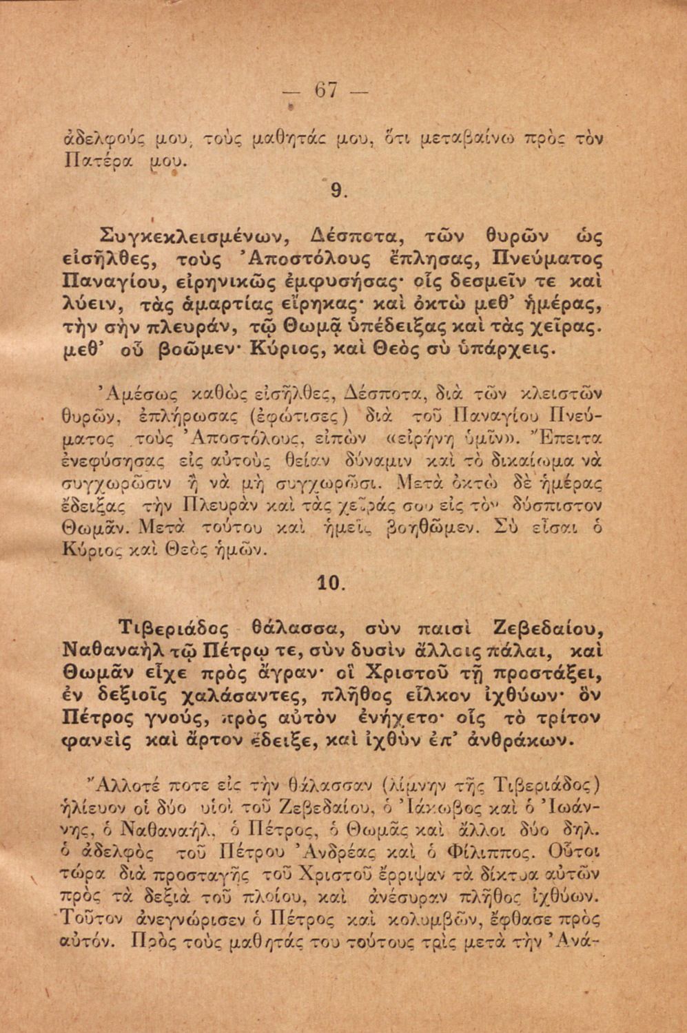 Σχολικό εγχειρίδιο Θρησκευτικών για τα Γυμνάσια, τα Διδασκαλεία και τα Παρθεναγωγεία που περιλαμβάνει αποσπάσματα από τις πράξεις των Αποστόλων, περικοπές ύμνων και ψαλμωδιών και επιστολές του Αποστόλου Παύλου.