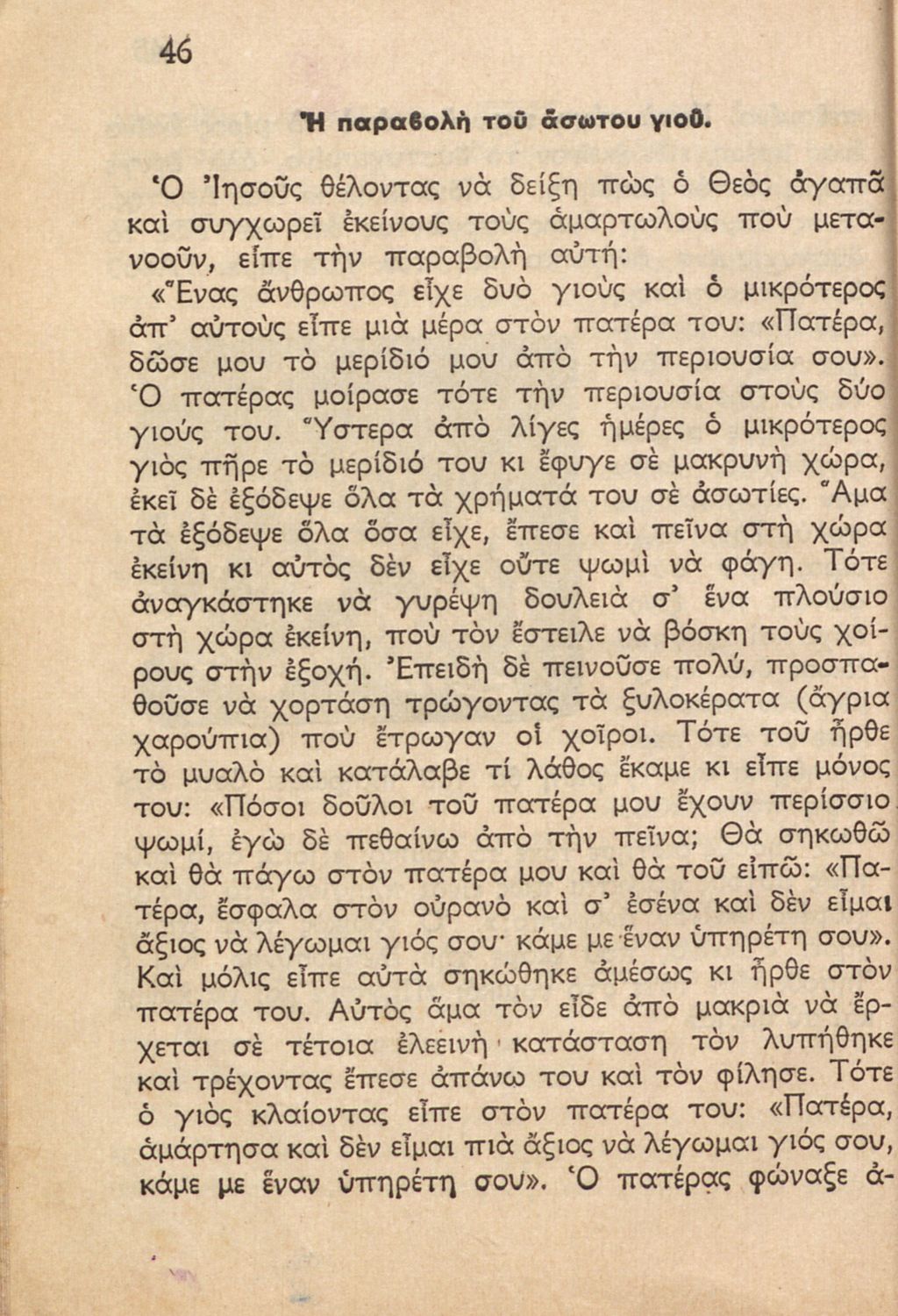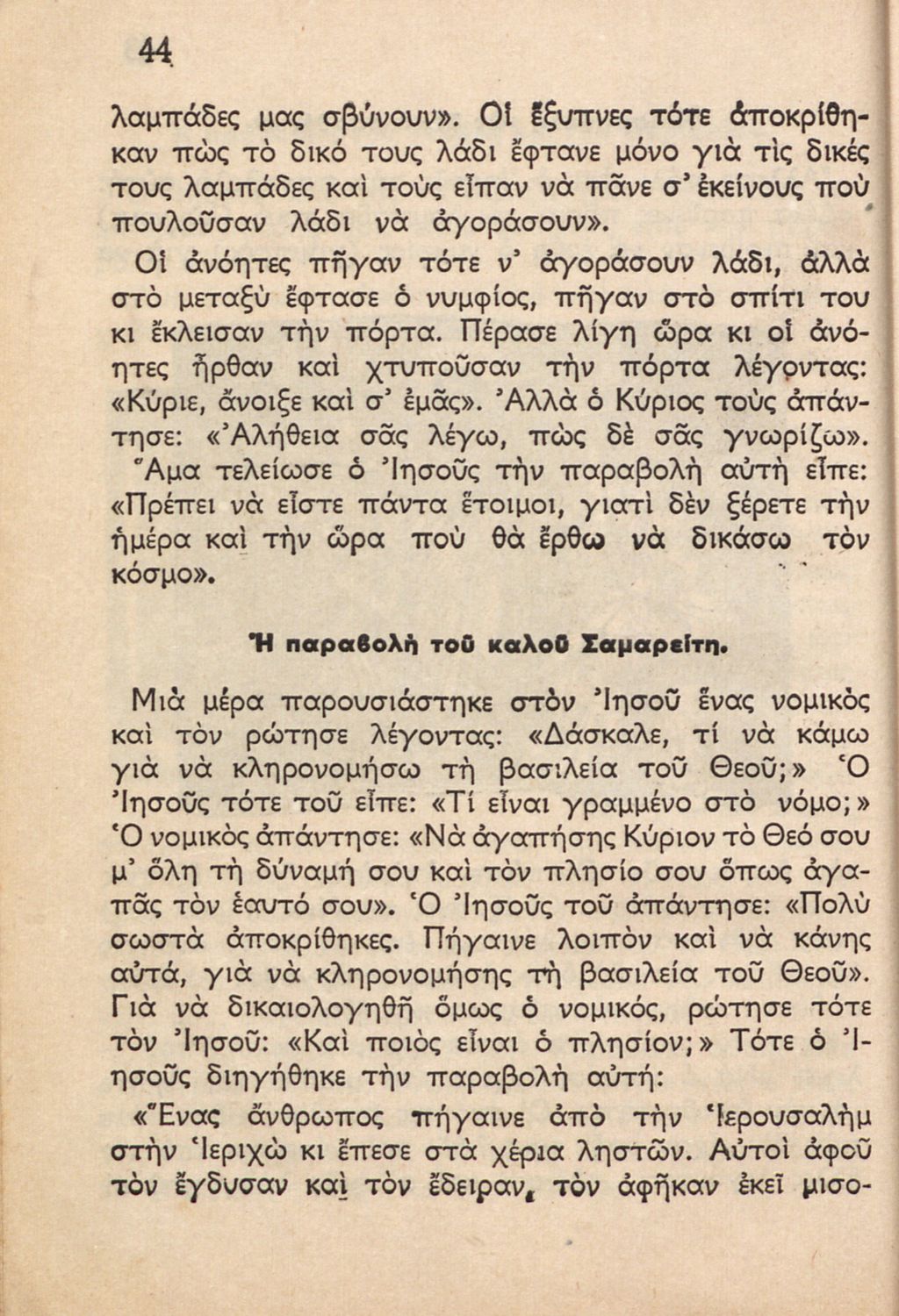 Κωδικός αναγνώρισης: 04-00057 Τίτλος: Καινή Διαθήκη για την Δ΄ τάξη των Δημοτικών Σχολείων Συγγραφέας: Φωκ. Φωτόπουλος Μέγεθος και υπόστρωμα: Μαθητικό βοήθημα, 17εκ., σκληρό εξώφυλλο, 78 σελίδες. Εξώφυλλο (έγχρωμο), σκίτσα (ασπρόμαυρα). |