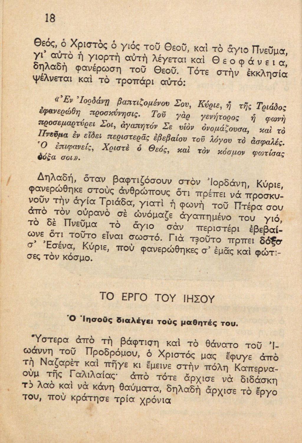 Βαθμίδα εκπαίδευσης: Πρωτοβάθμια Τάξη: Δ' Δημοτικού Μάθημα: Θρησκευτικά Γλώσσα: Δημοτική Παρουσίαση περιεχομένου: Μαθητικό βοήθημα Θρησκευτικών Δ΄ Δημοτικού που αποτελεί μια εξιστόρηση της Καινής Διαθήκης από τη γέννηση της Θεοτόκου μέχρι την ανάληψη του Χριστού. Περιέχει και στοιχεία γεωγραφίας της Παλαιστίνης |