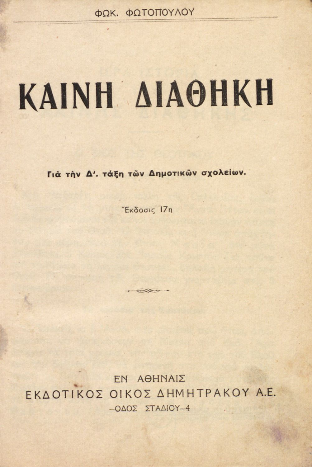 Εκδότης: Π. Δημητράκος Έτος έκδοσης: 1933 Τόπος έκδοσης: Αθήνα Έκδοση: 17η |