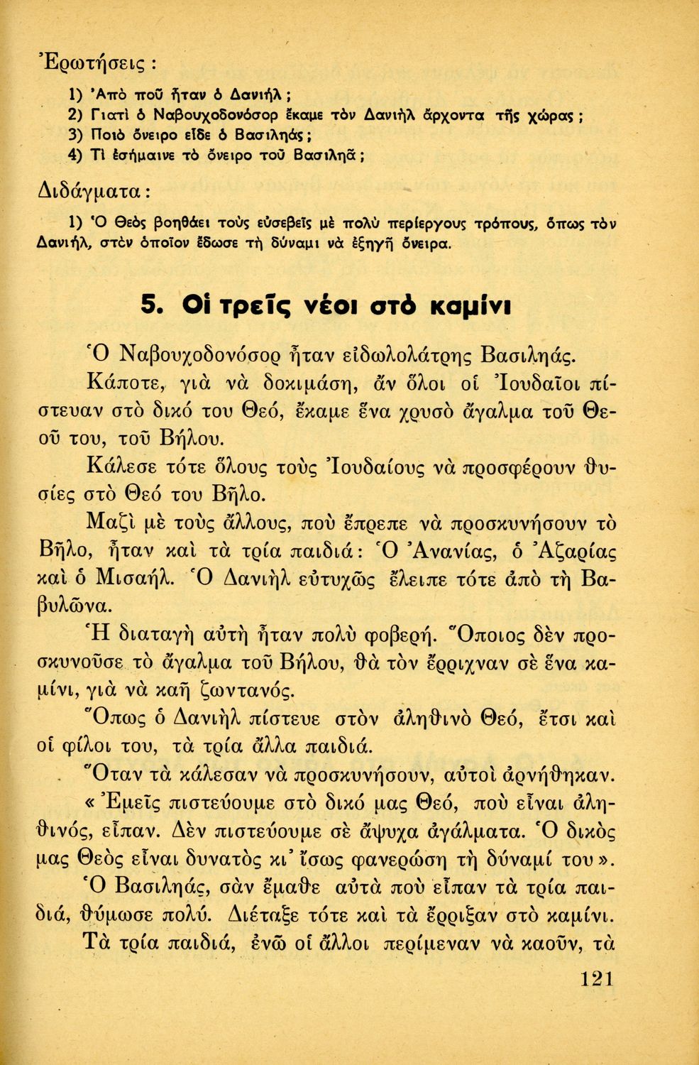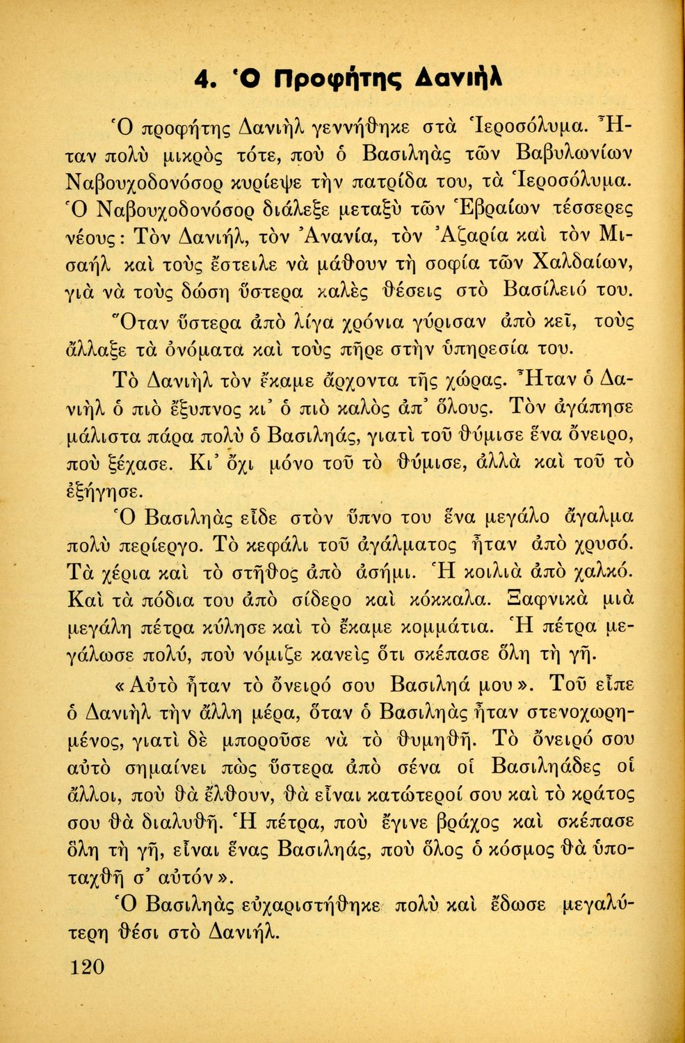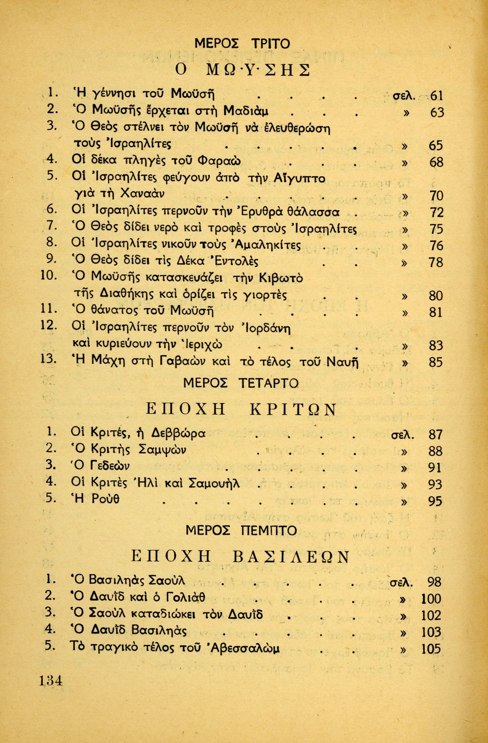 Σχολικό εγχειρίδιο Θρησκευτικών Α΄ Ελληνικού Σχολείου που συνιστά μία εξιστόρηση της Παλαιάς Διαθήκης από τη δημιουργία του κόσμου ως τους Μακκαβαίους.