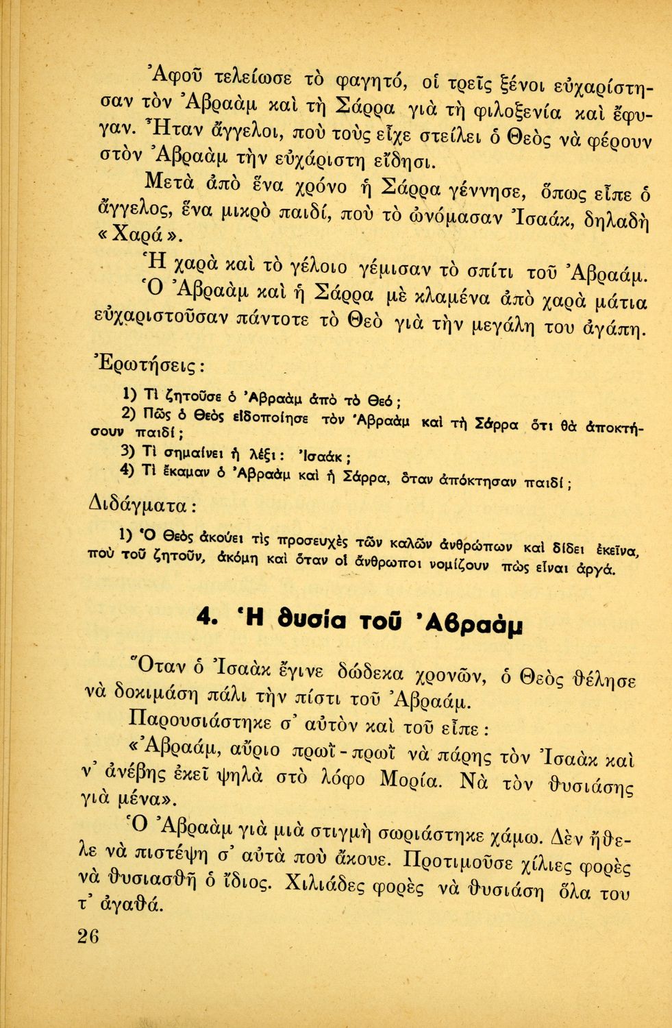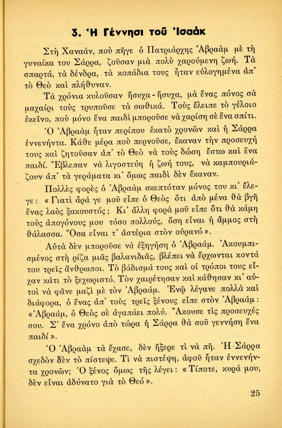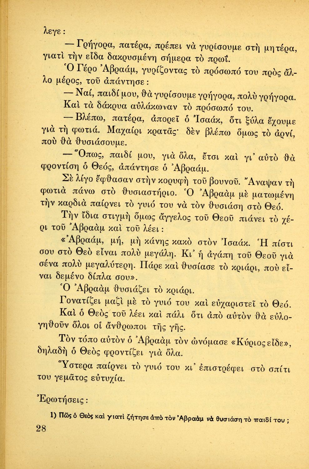 Σχολικό εγχειρίδιο Θρησκευτικών Α΄ Ελληνικού Σχολείου που συνιστά μία εξιστόρηση της Παλαιάς Διαθήκης από τη δημιουργία του κόσμου ως τους Μακκαβαίους.