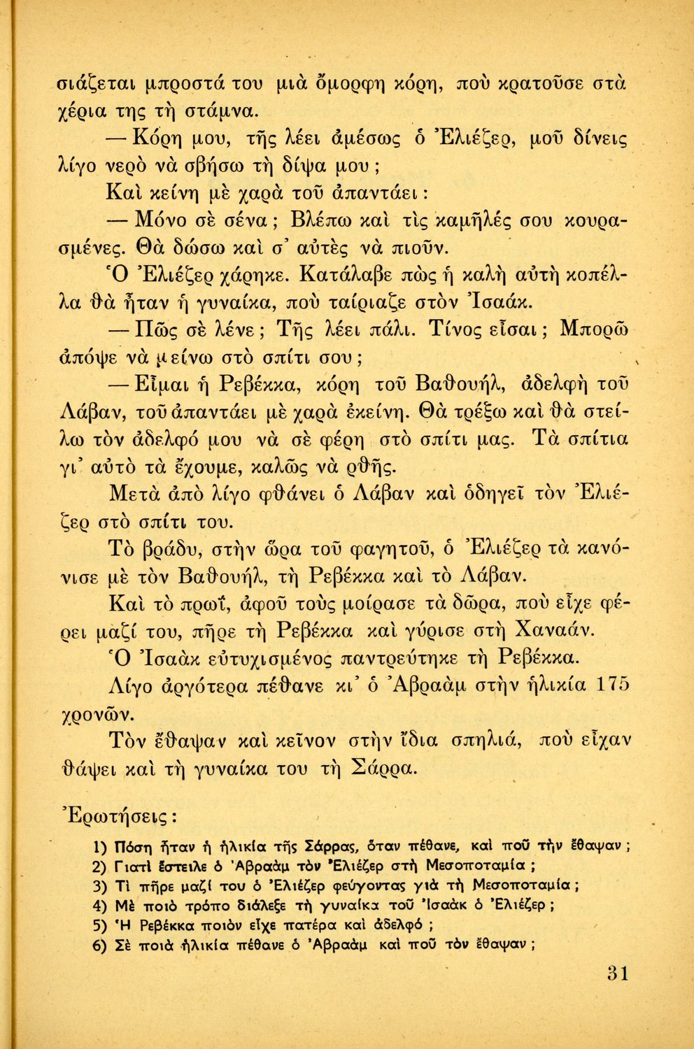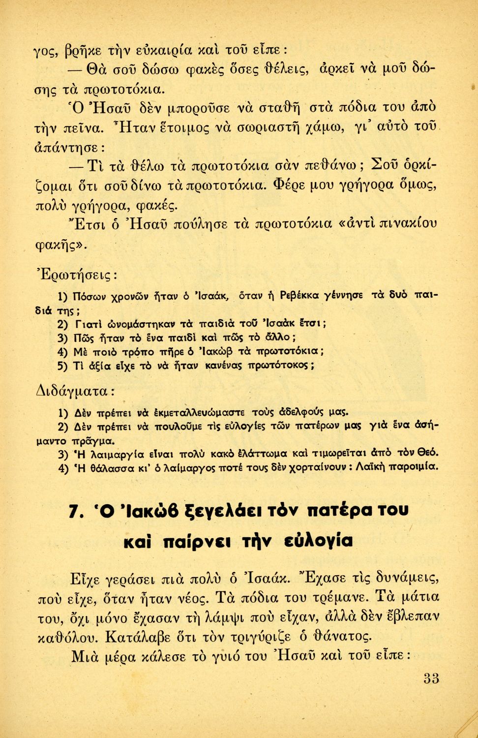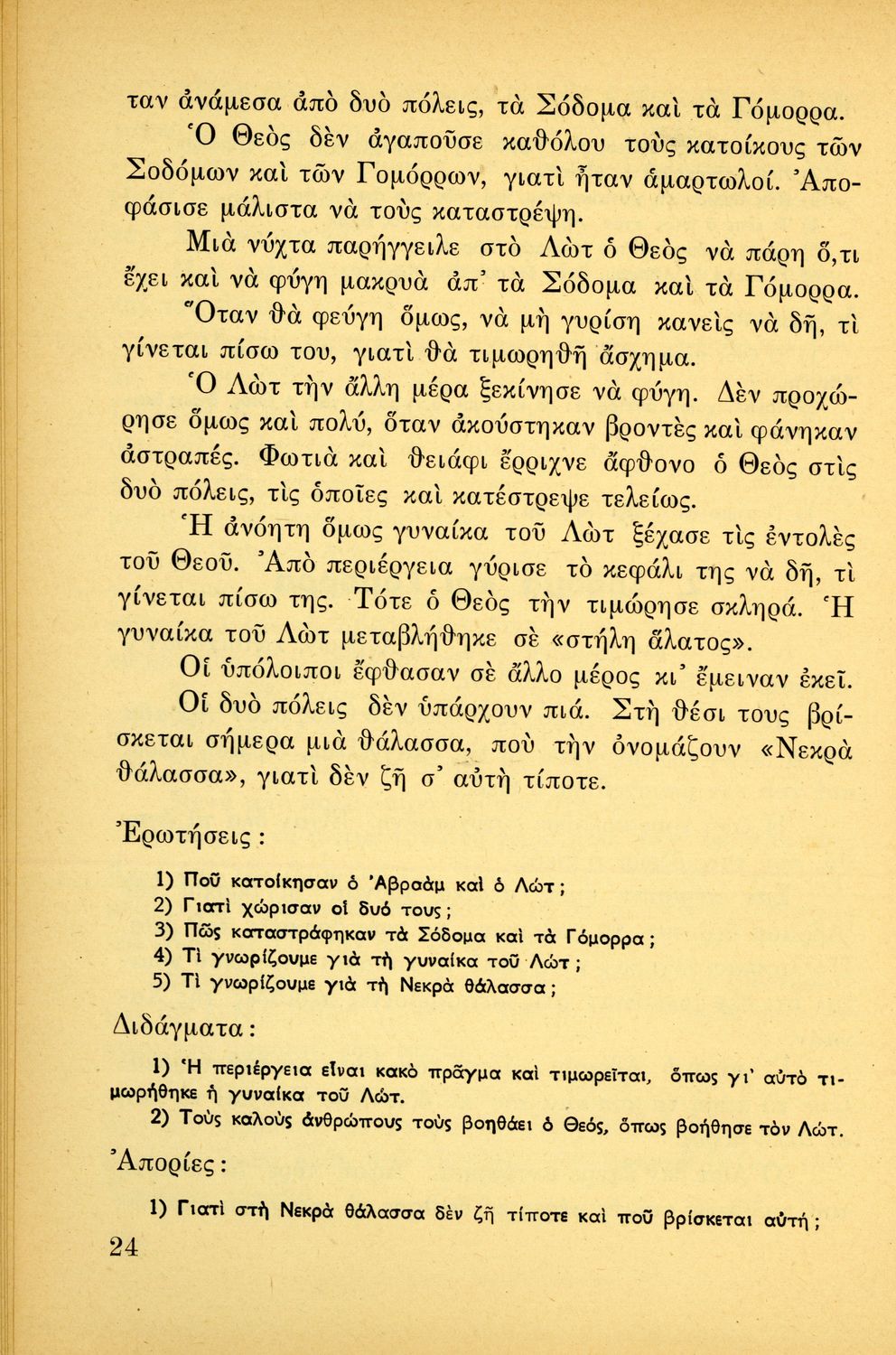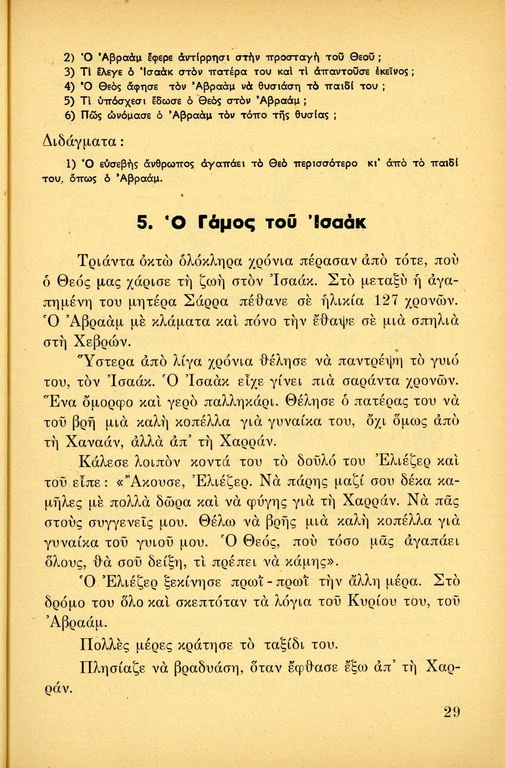 Σχολικό εγχειρίδιο Θρησκευτικών Α΄ Ελληνικού Σχολείου που συνιστά μία εξιστόρηση της Παλαιάς Διαθήκης από τη δημιουργία του κόσμου ως τους Μακκαβαίους.