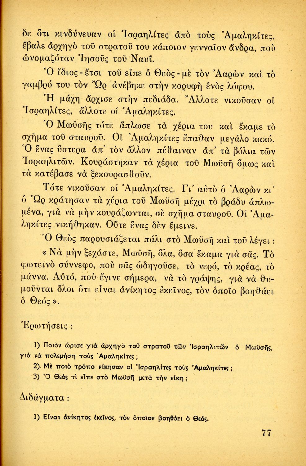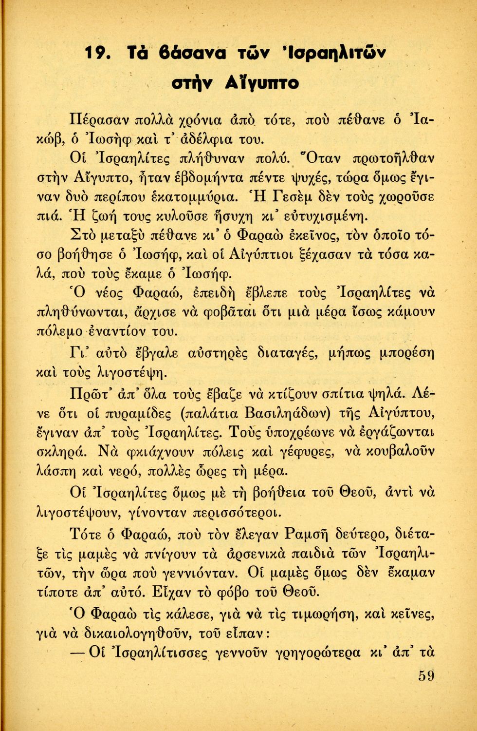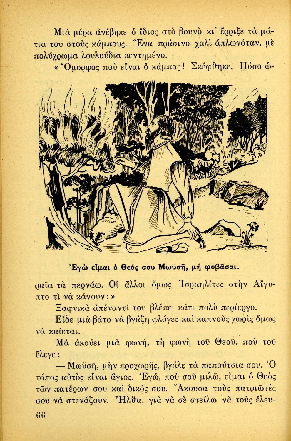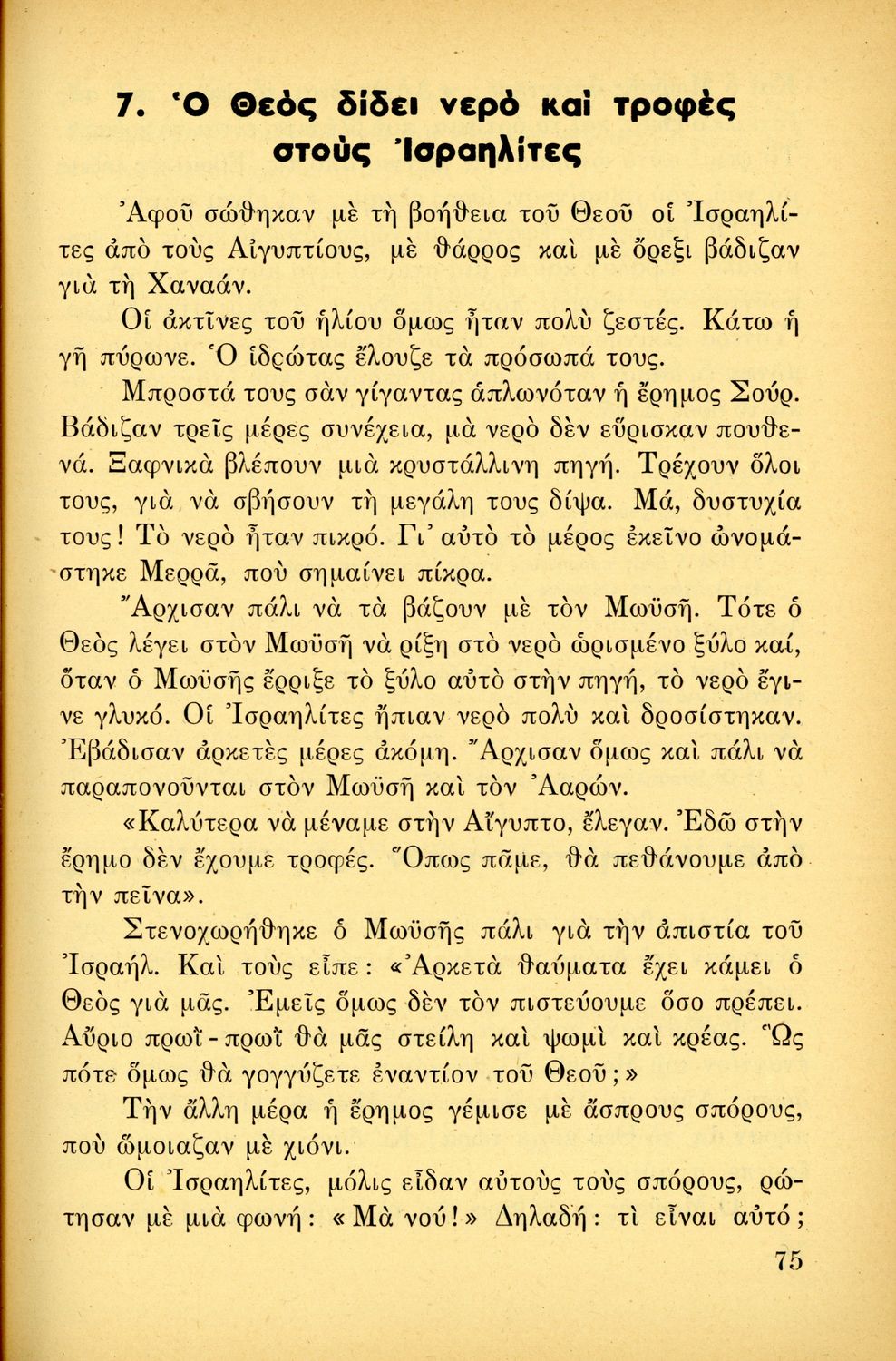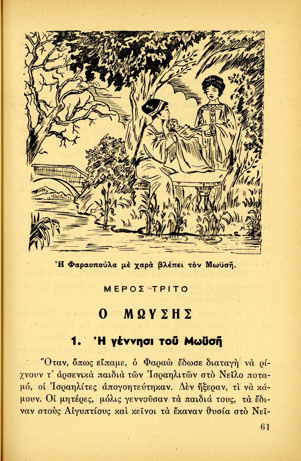 Σχολικό εγχειρίδιο Θρησκευτικών Α΄ Ελληνικού Σχολείου που συνιστά μία εξιστόρηση της Παλαιάς Διαθήκης από τη δημιουργία του κόσμου ως τους Μακκαβαίους.
